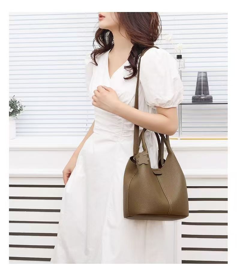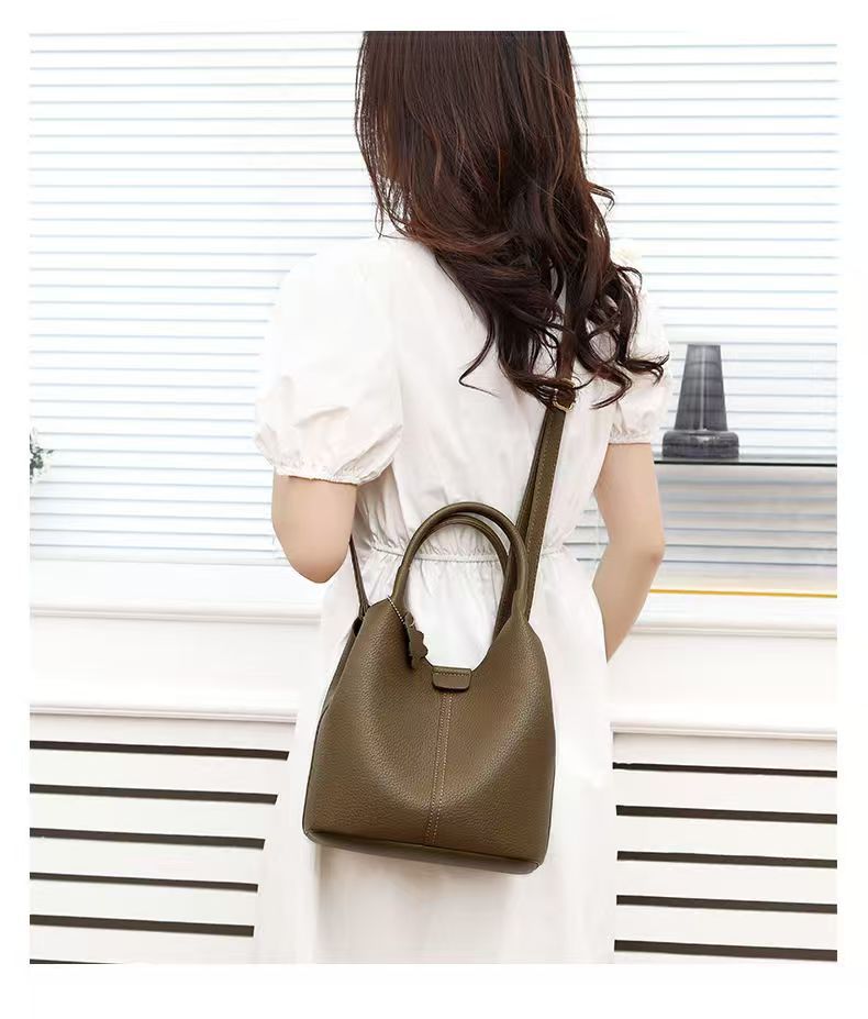 Bolso de cubo de mano casual de color sólido de comercio exterior 2025 nuevo bolso de hombro simple de todo fósforo bolso de mensajero de cuero suave de alta calidad