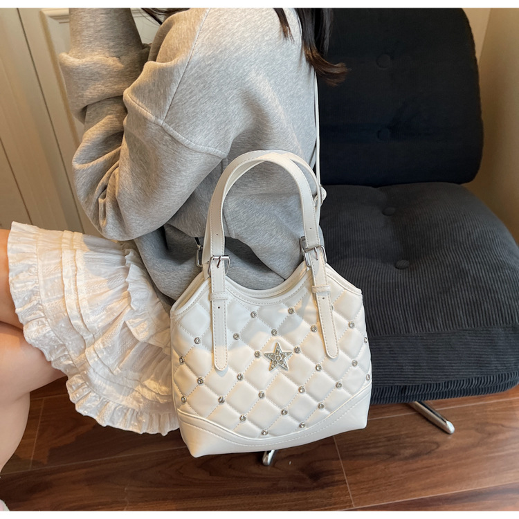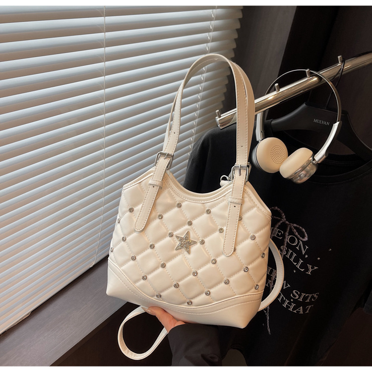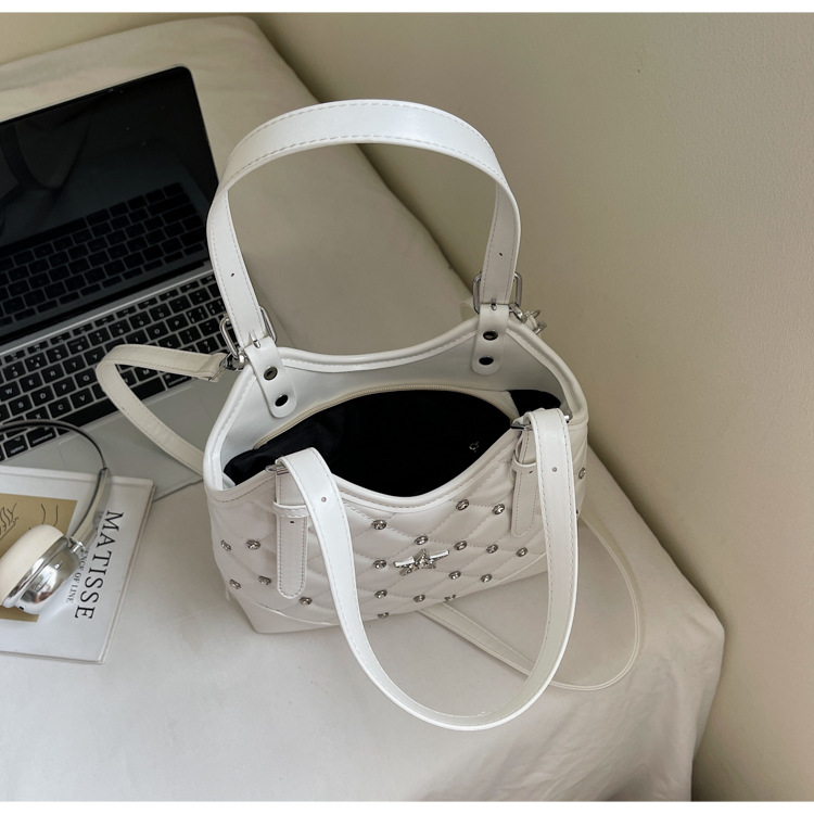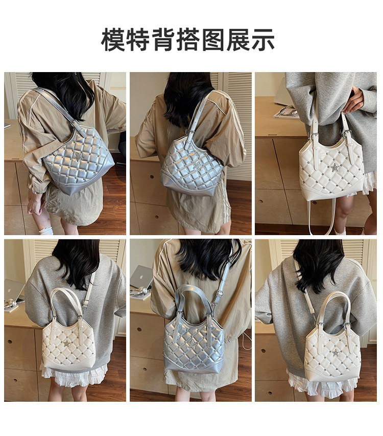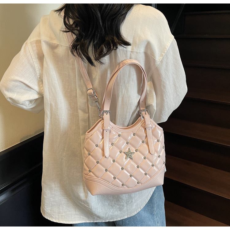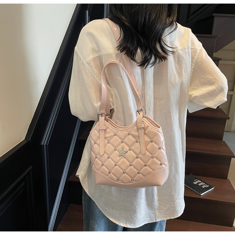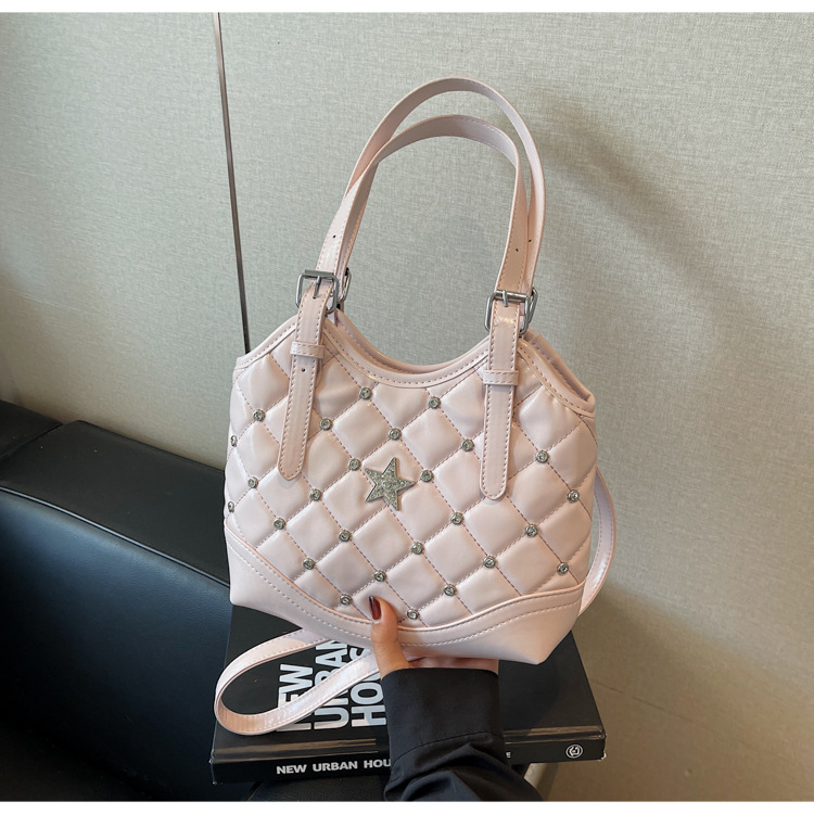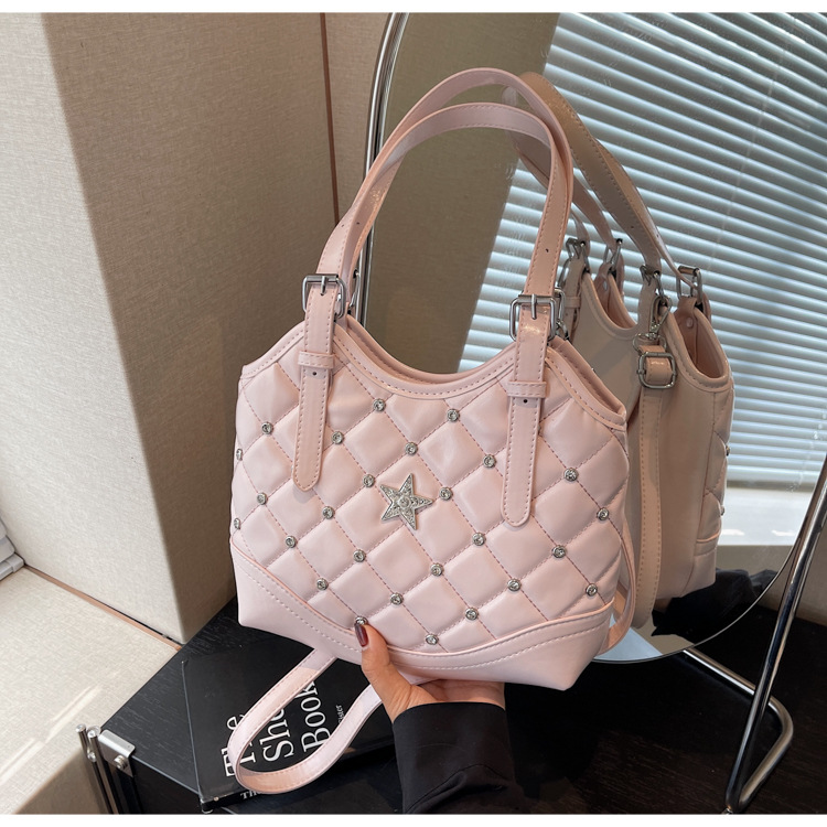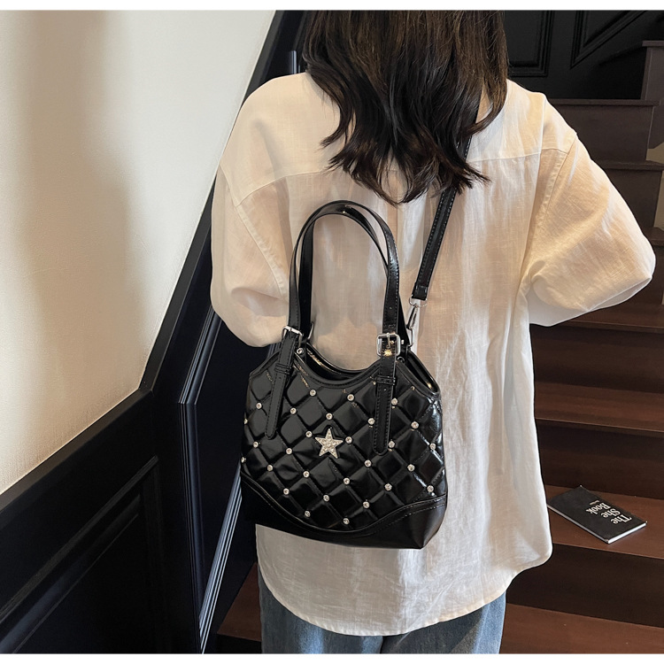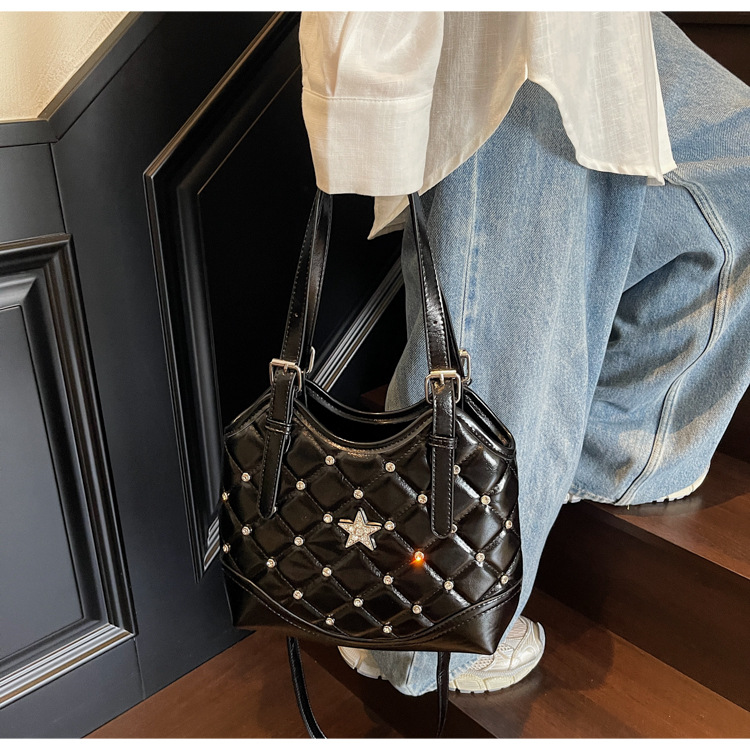 Bolso de remaches de moda de estilo extranjero para mujeres 2025 verano nuevo diamante versátil bolso de mochila súper caliente bolso de cubo