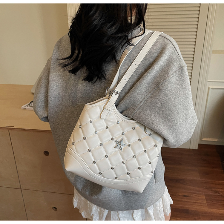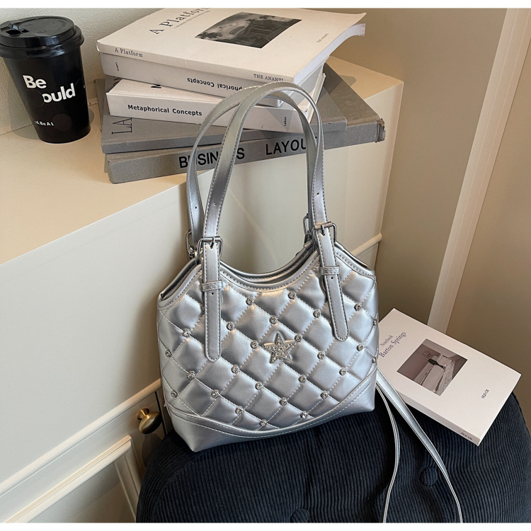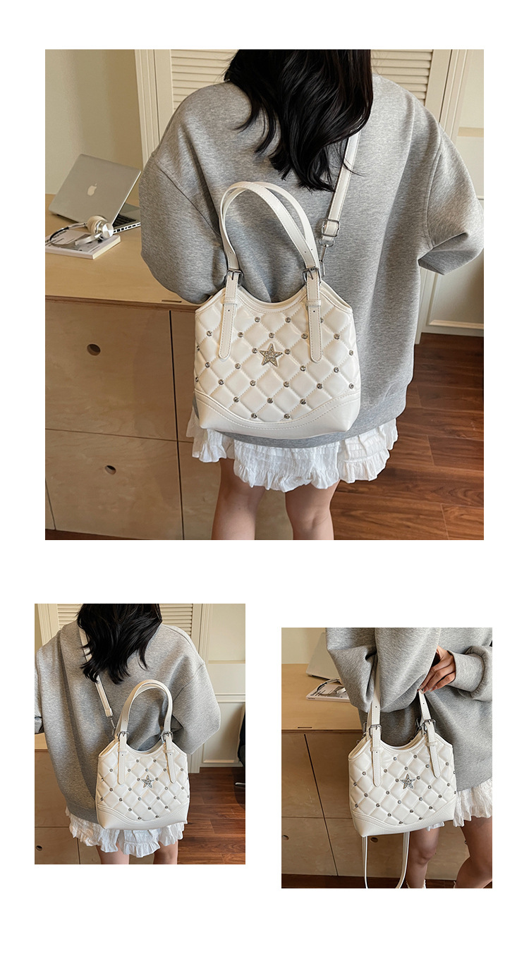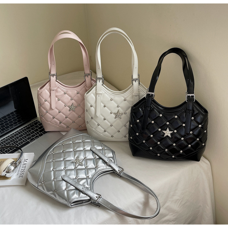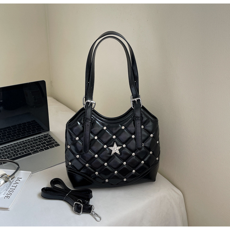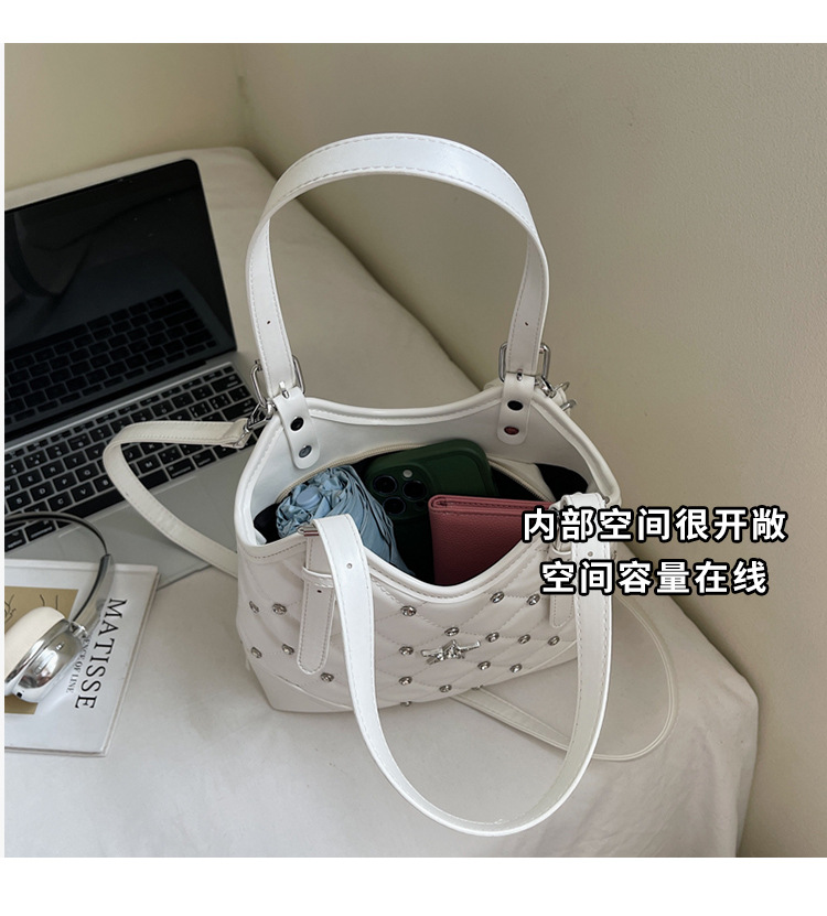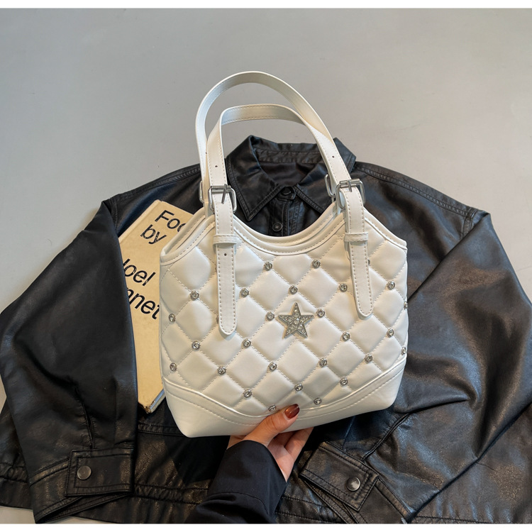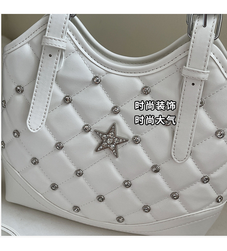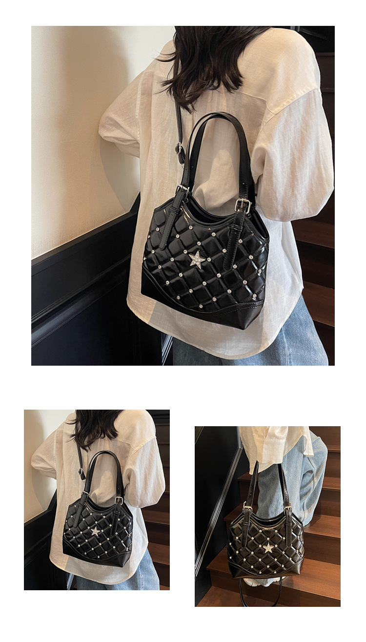 Bolso de remaches de moda de estilo extranjero para mujeres 2025 verano nuevo diamante versátil bolso de mochila súper caliente bolso de cubo