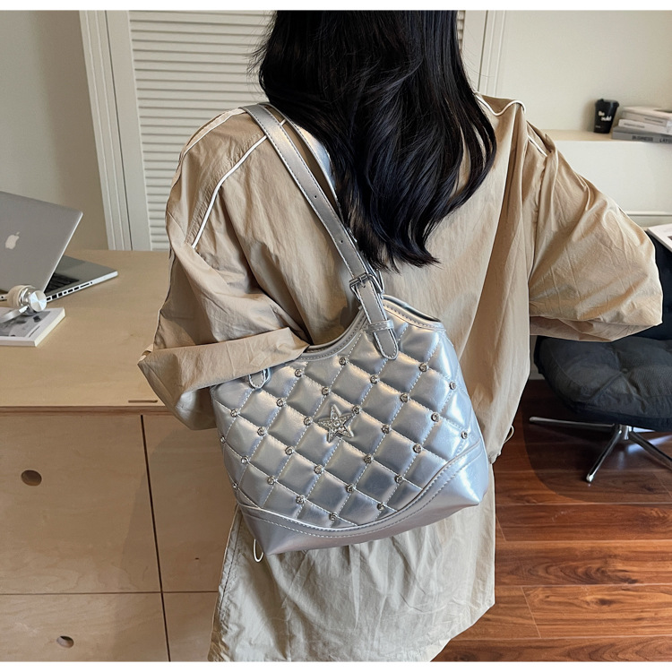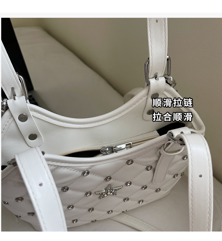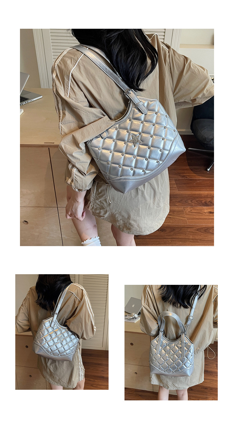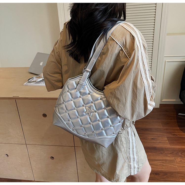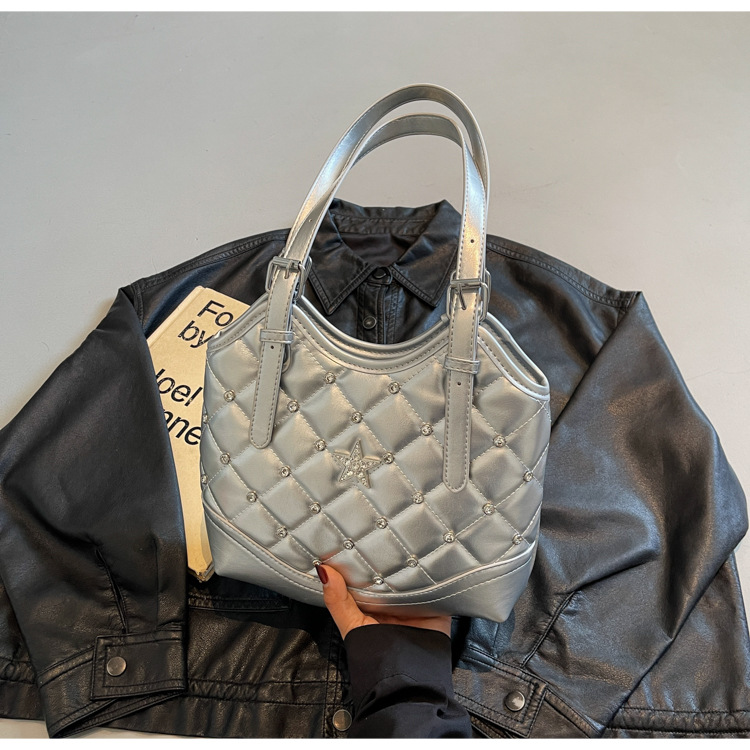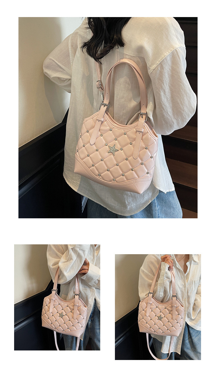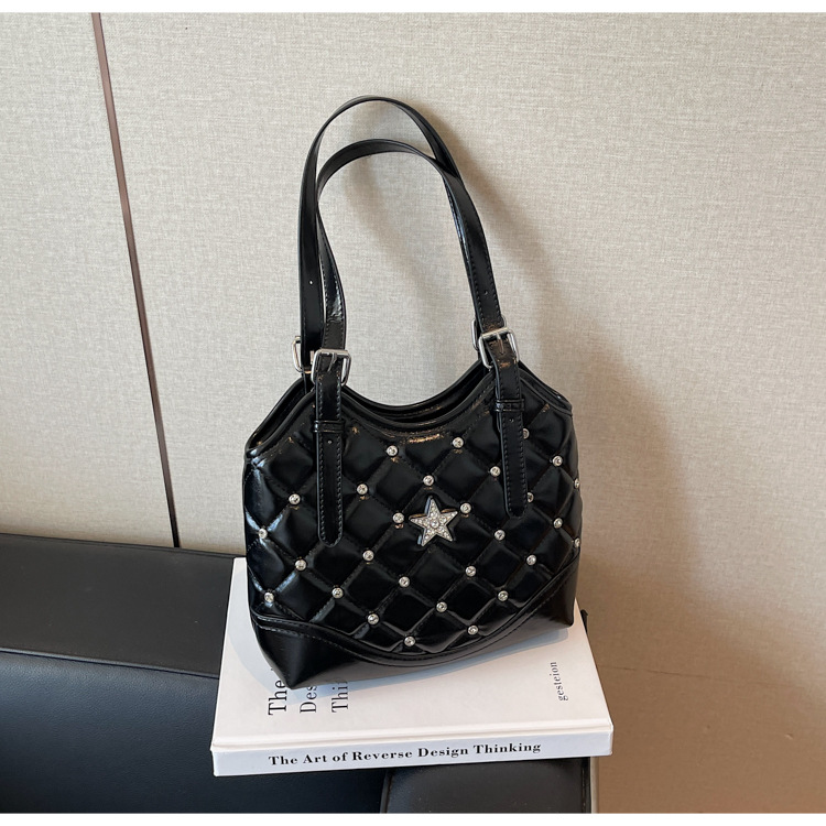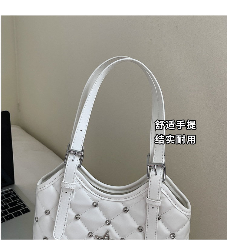 Bolso de remaches de moda de estilo extranjero para mujeres 2025 verano nuevo diamante versátil bolso de mochila súper caliente bolso de cubo