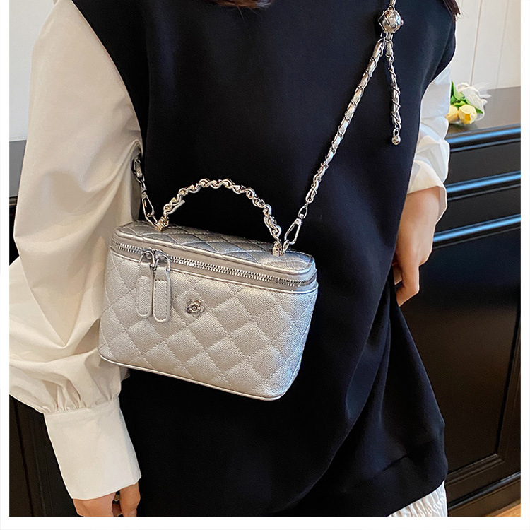 Caviar pequeña fragancia cadena de rombos bolsa cuadrada pequeña mujer 2025 nuevo bolso bandolera popular de alta gama de todos los partidos