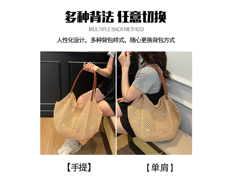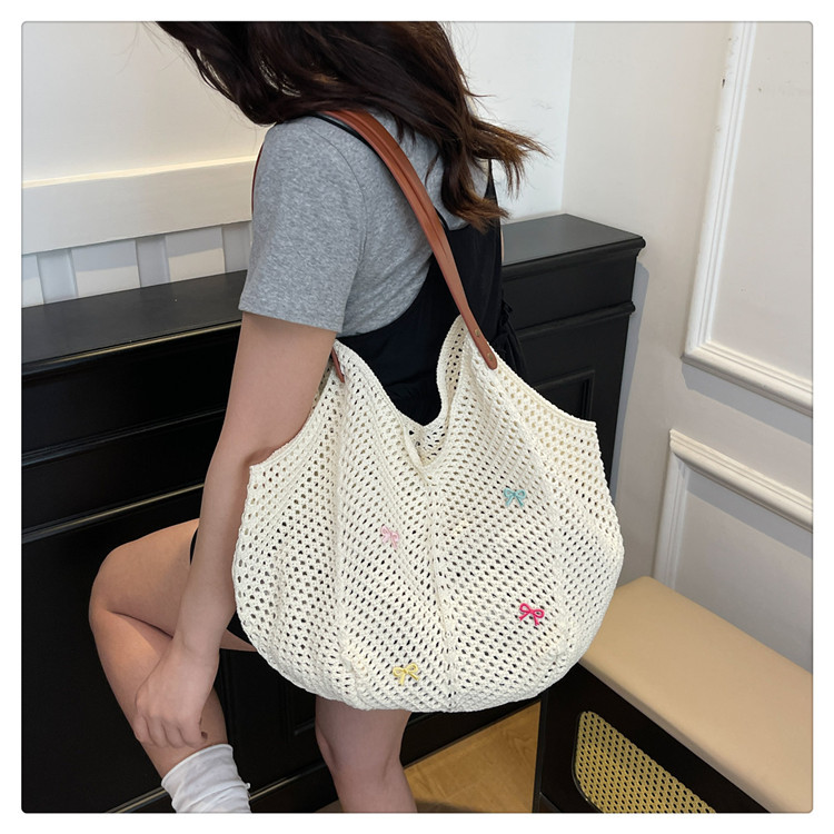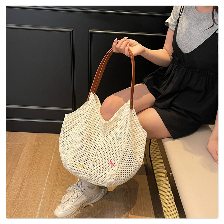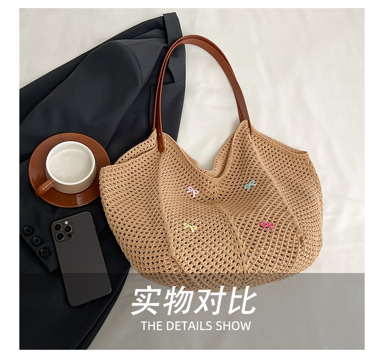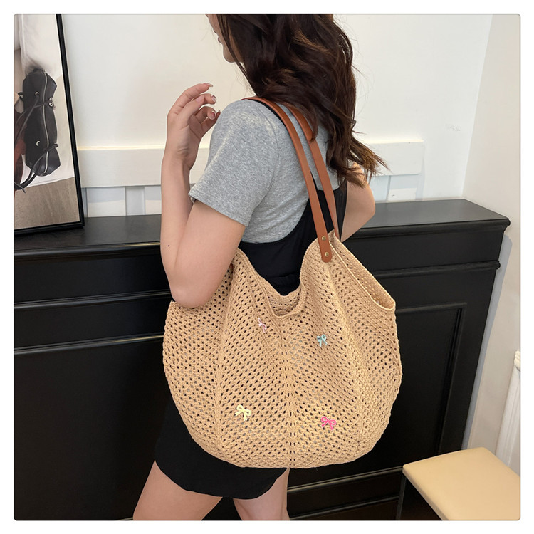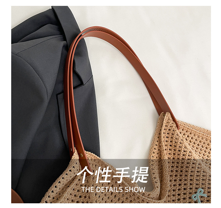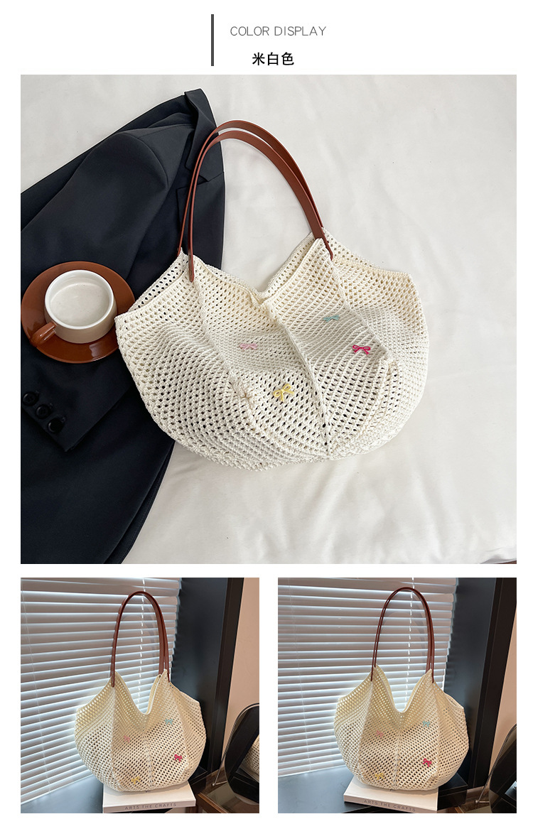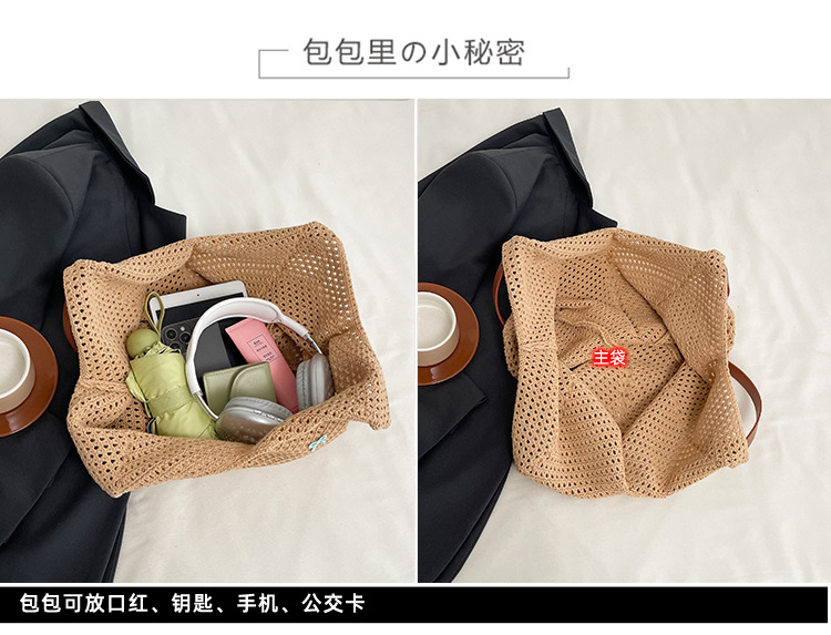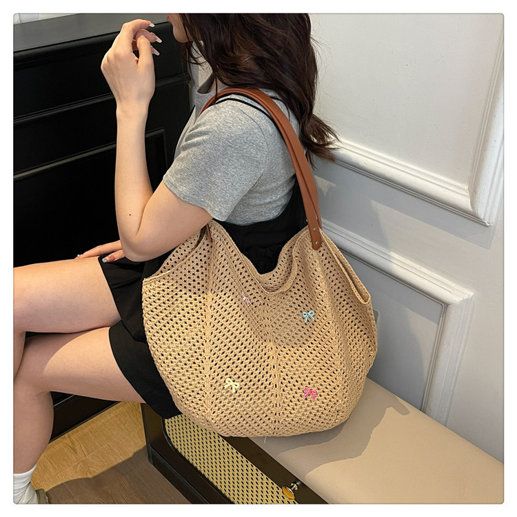 Viaje junto al mar estilo vacaciones bolso de playa tejido hueco mujer 2025 verano nuevo bolso tejido de paja bolso de alta capacidad