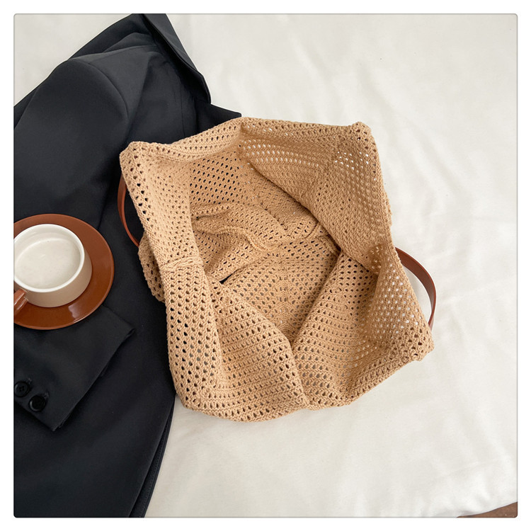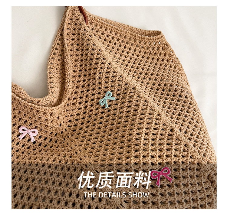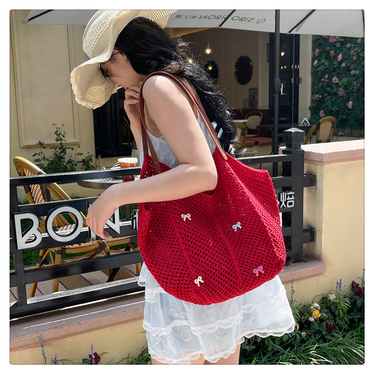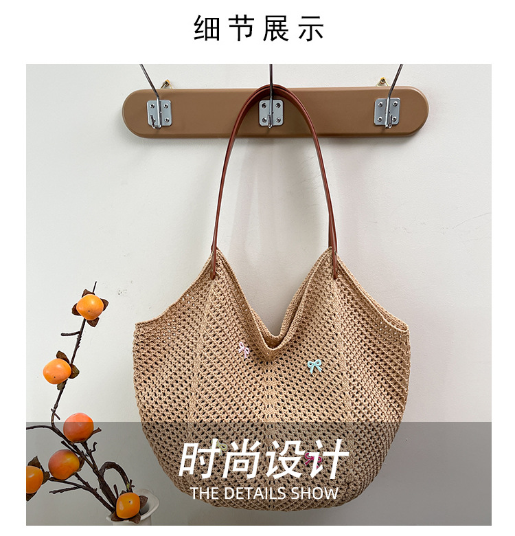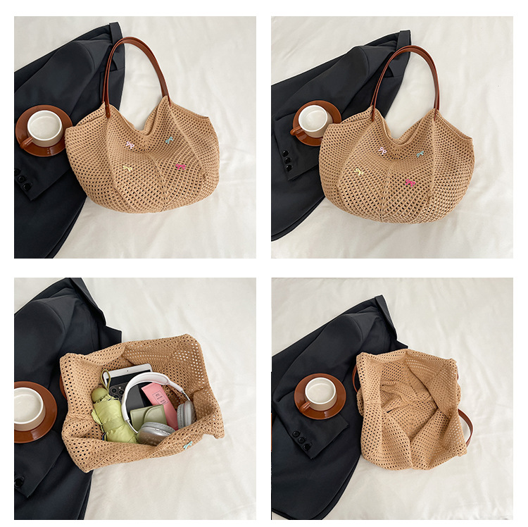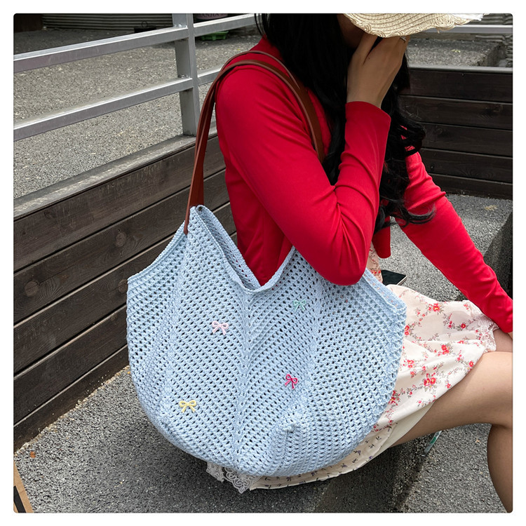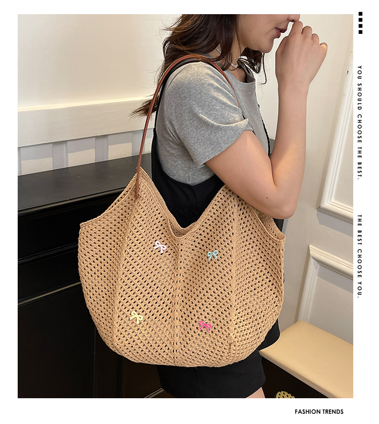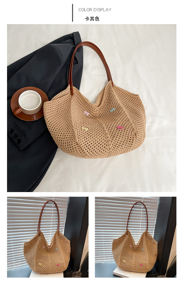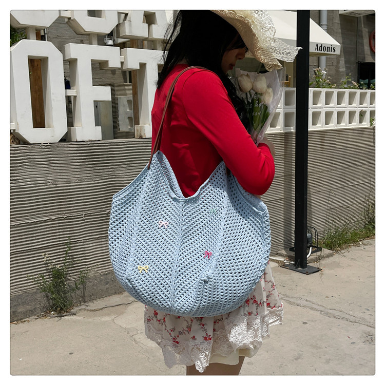 Viaje junto al mar estilo vacaciones bolso de playa tejido hueco mujer 2025 verano nuevo bolso tejido de paja bolso de alta capacidad