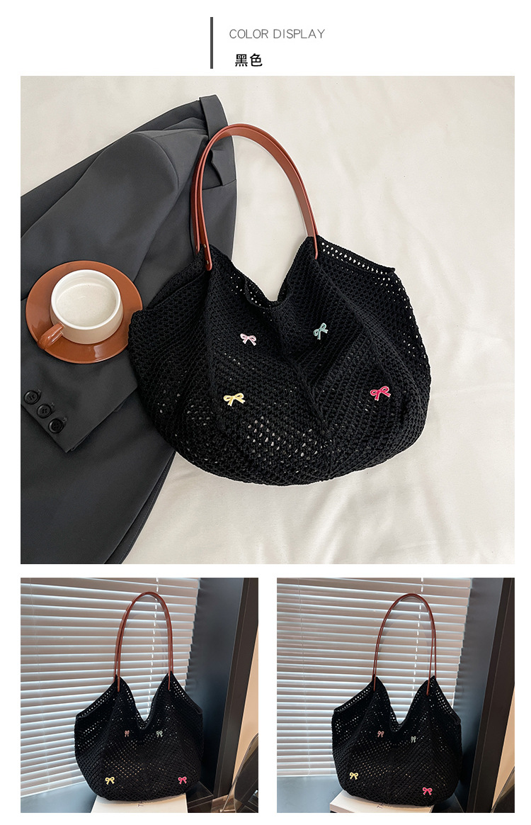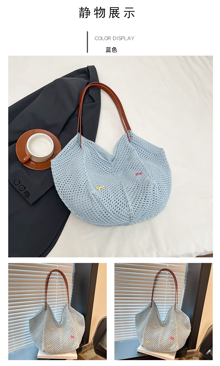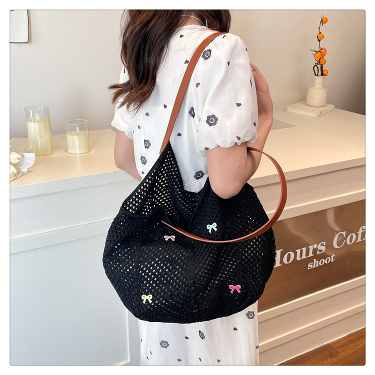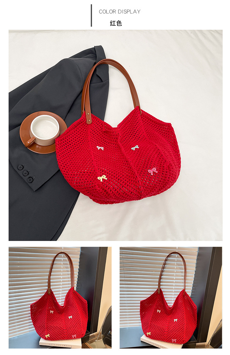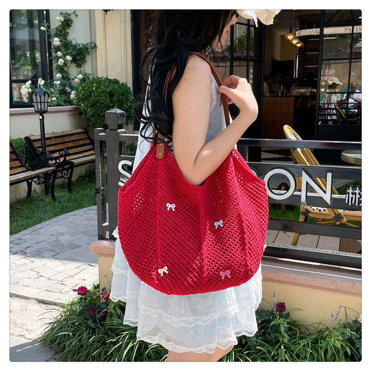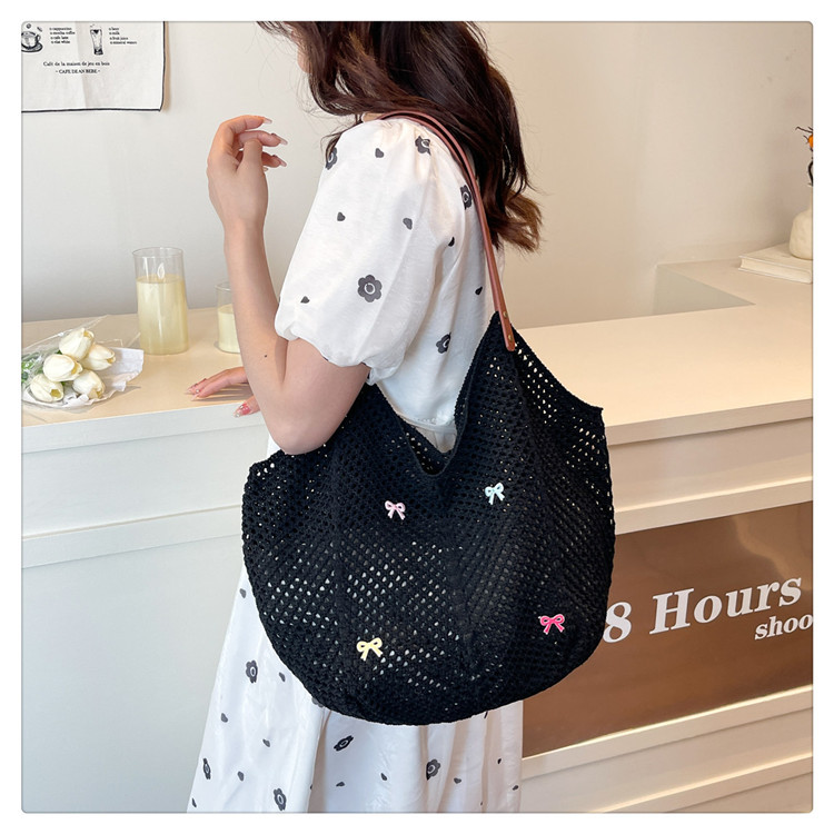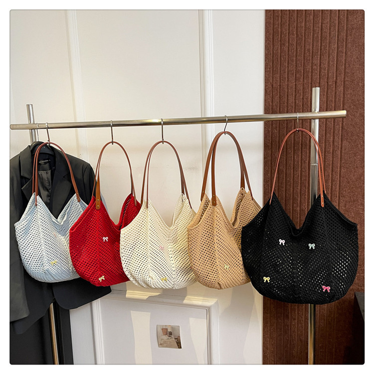 Viaje junto al mar estilo vacaciones bolso de playa tejido hueco mujer 2025 verano nuevo bolso tejido de paja bolso de alta capacidad