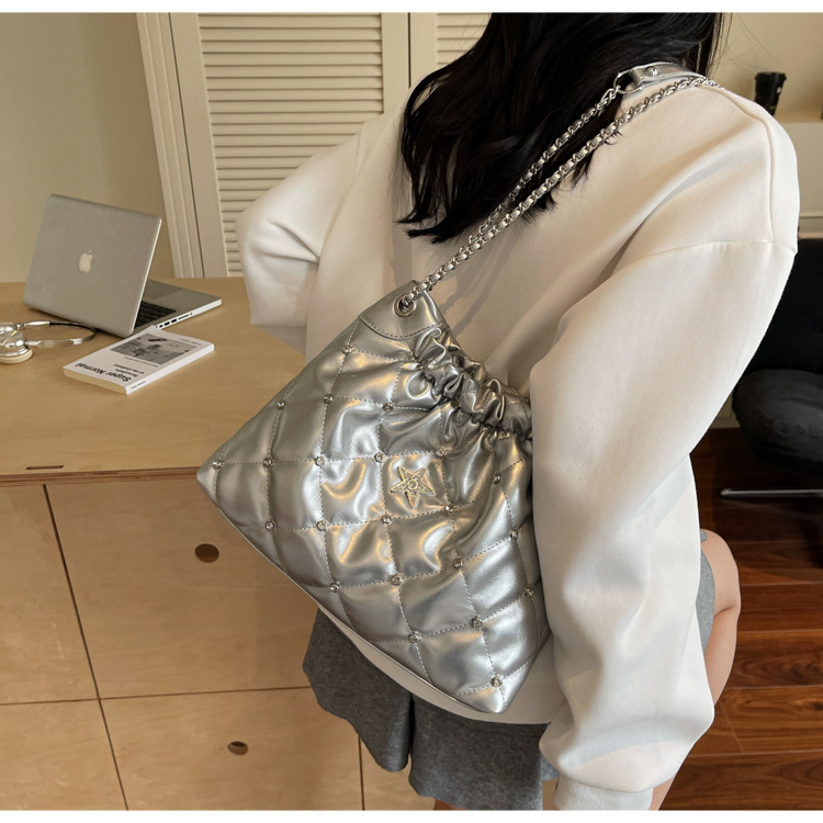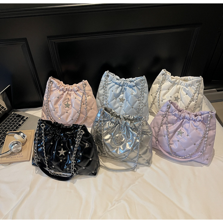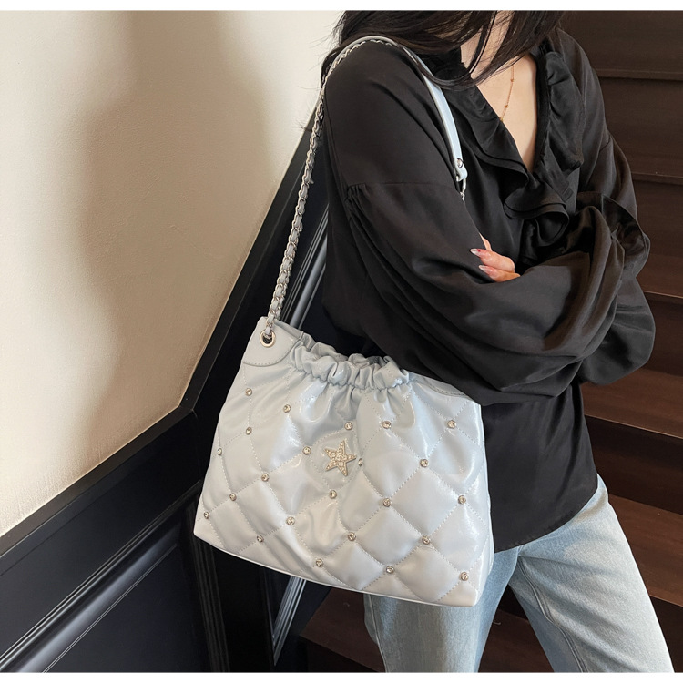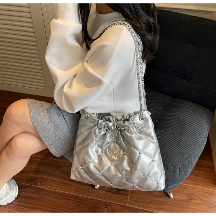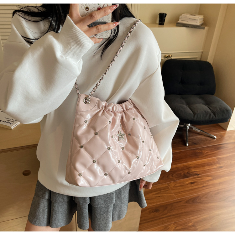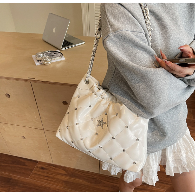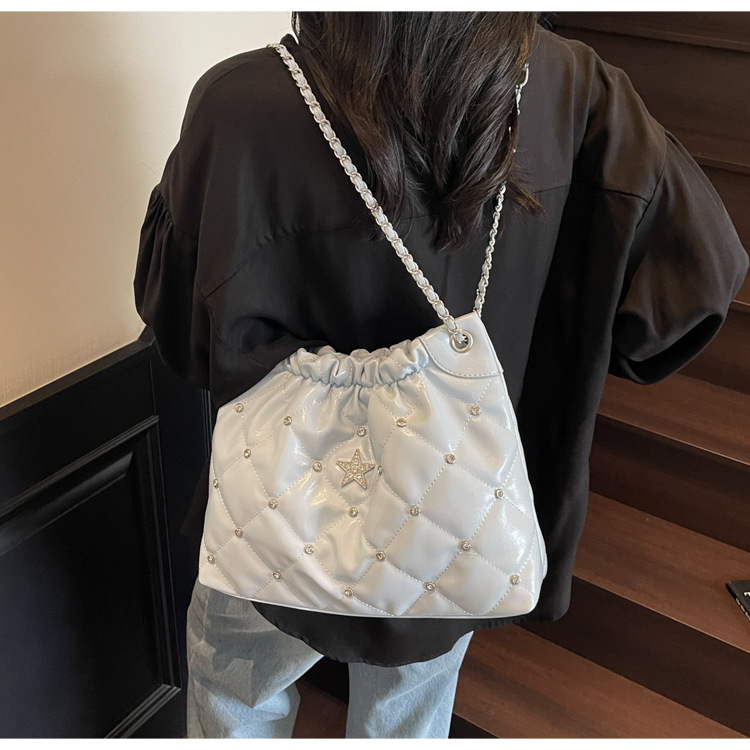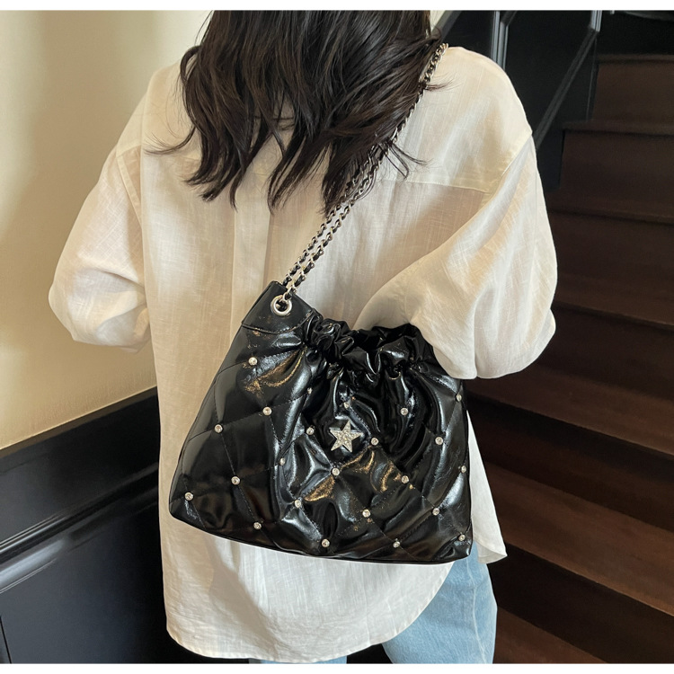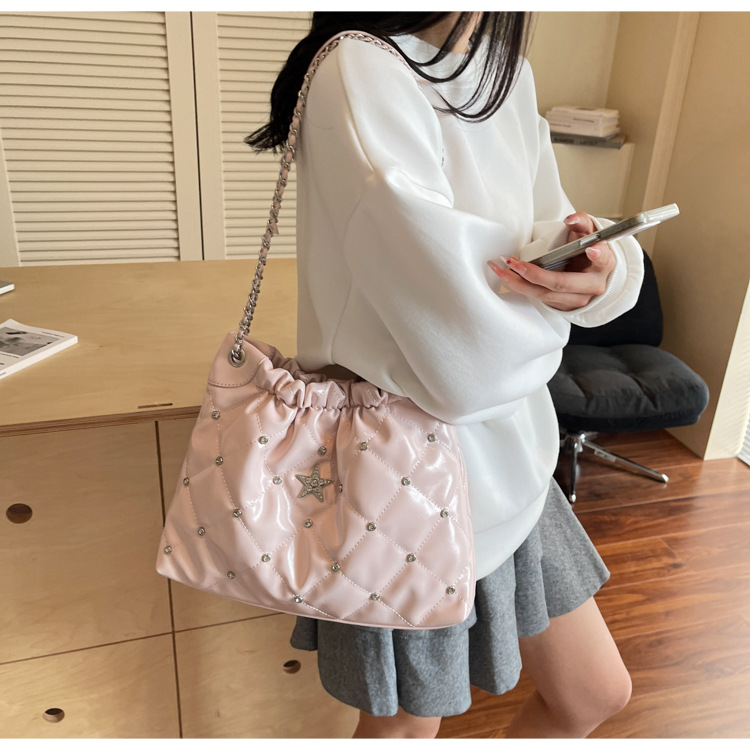 Venta caliente transfronteriza bolso de cubo de cadena de diamantes para mujer 2025 nuevo bolso de hombro casual de todo fósforo bolso de alta capacidad