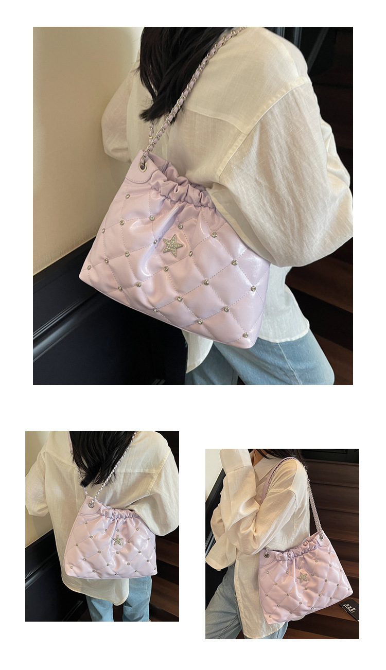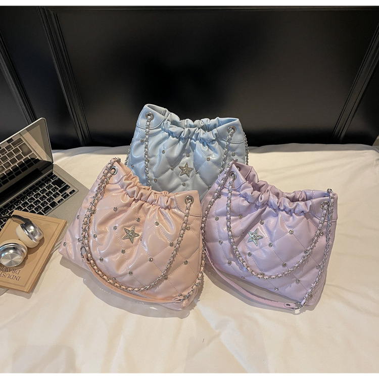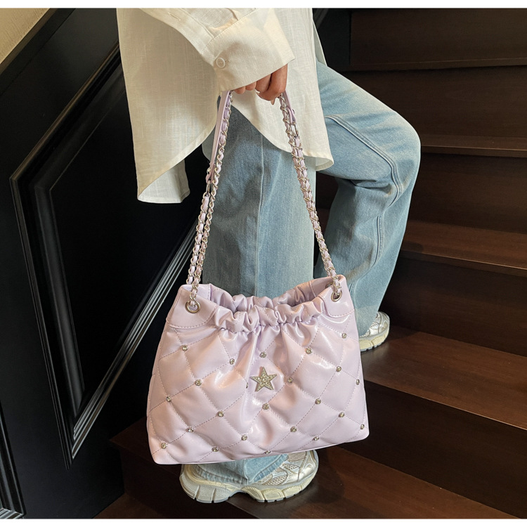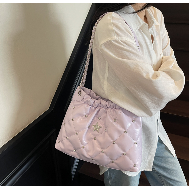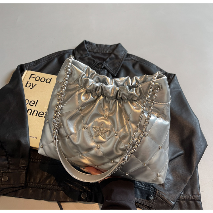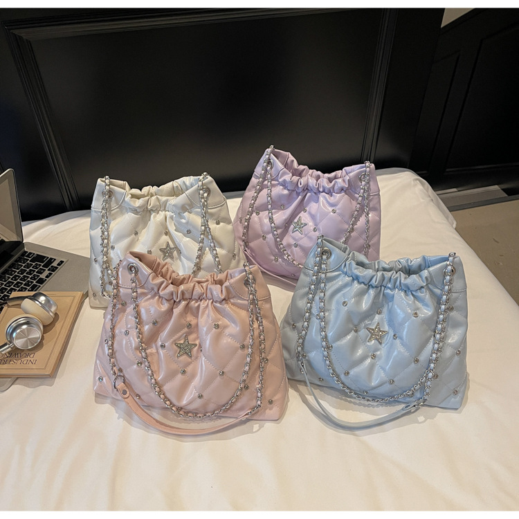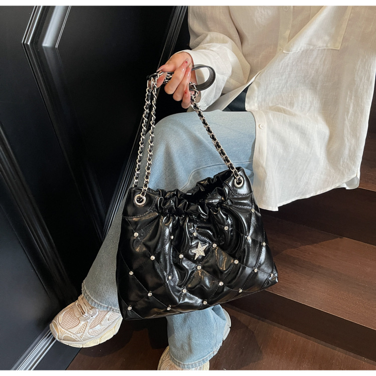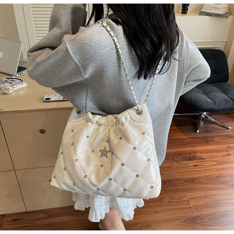Venta caliente transfronteriza bolso de cubo de cadena de diamantes para mujer 2025 nuevo bolso de hombro casual de todo fósforo bolso de alta capacidad