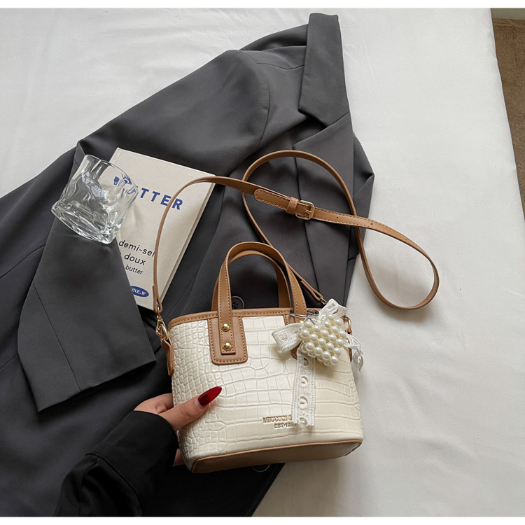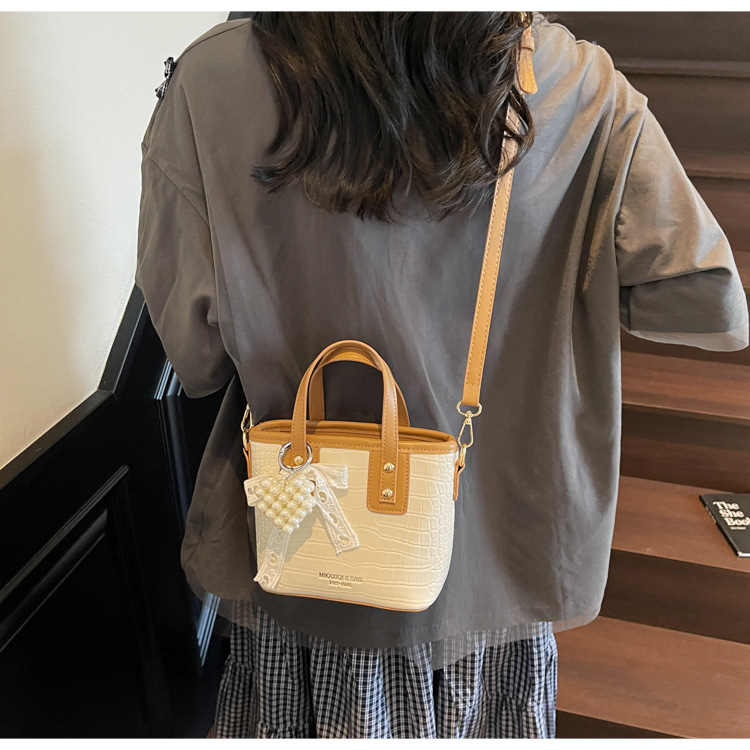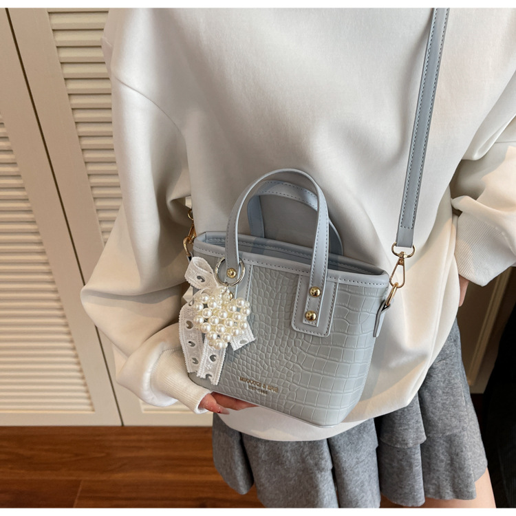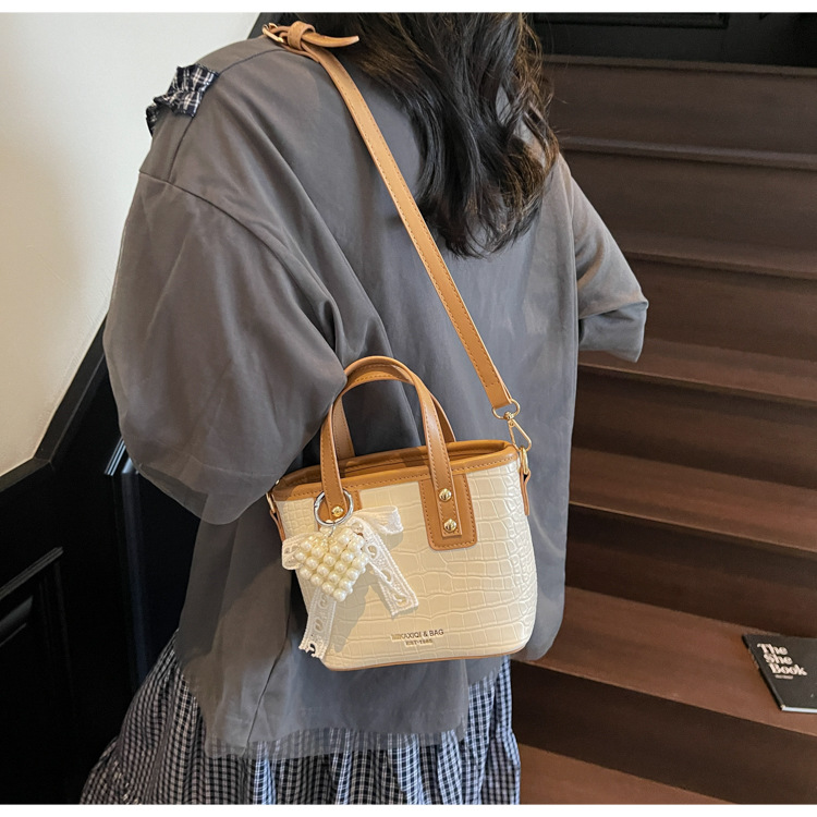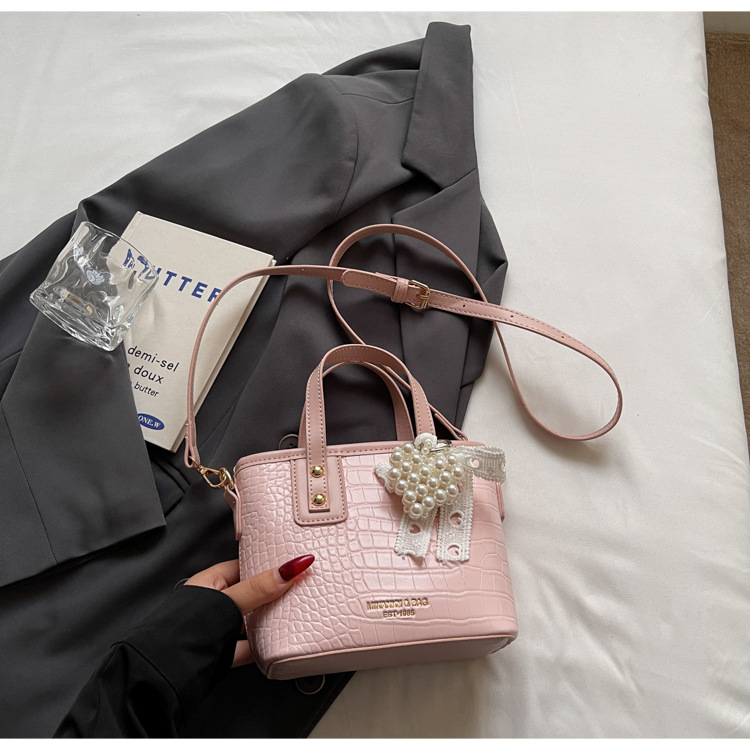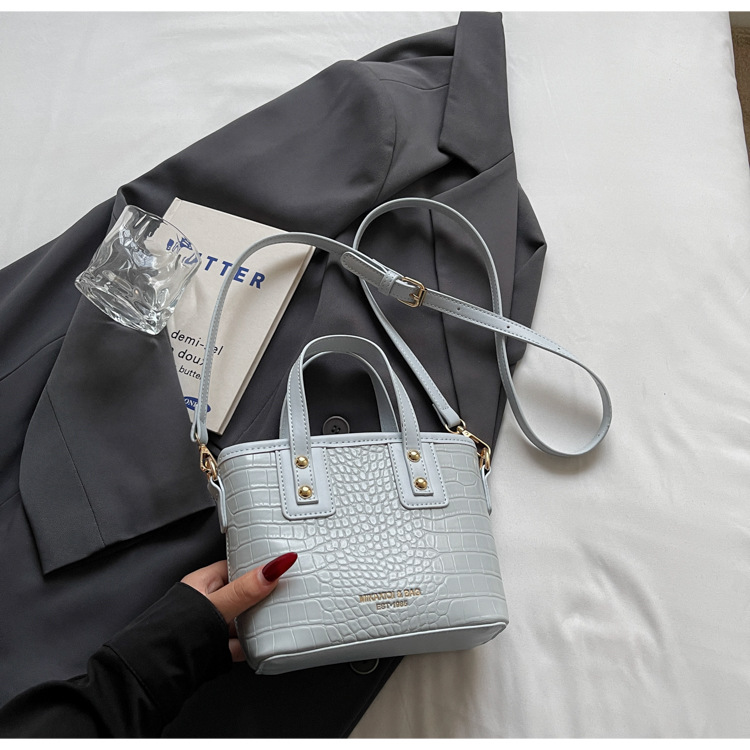 Bolso de cubo de mano súper fuego transfronterizo para mujer 2025 nuevo bolso de hombro con patrón de cocodrilo casual salvaje bolso de mensajero de moda