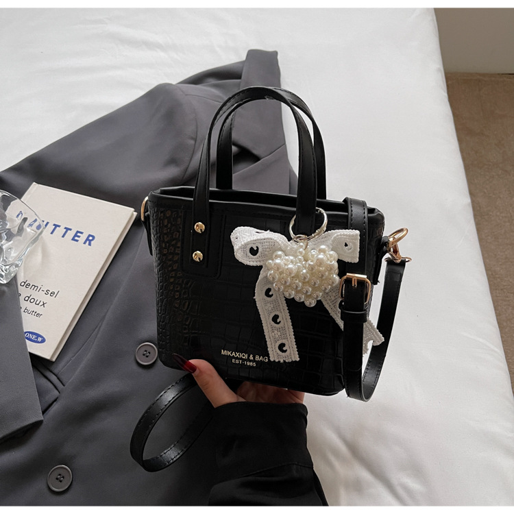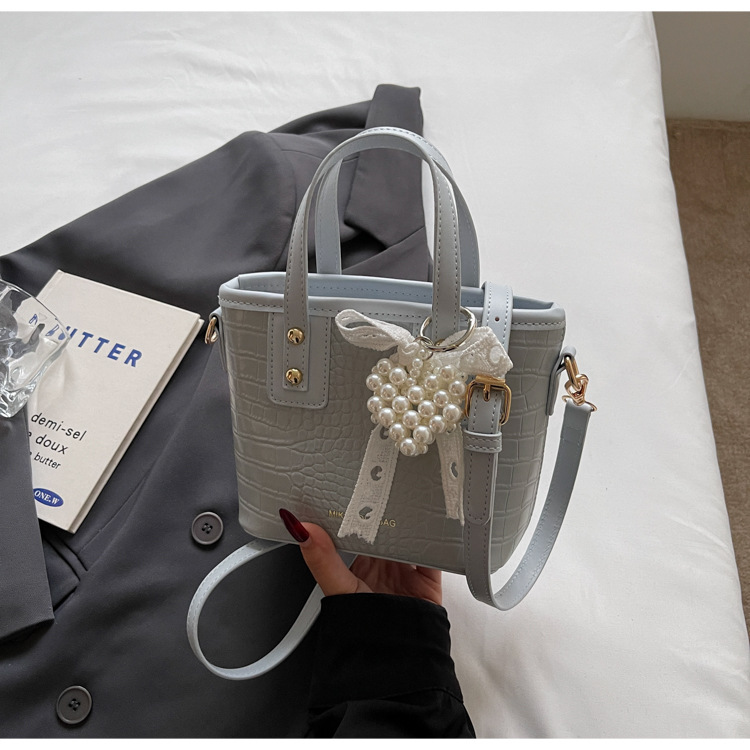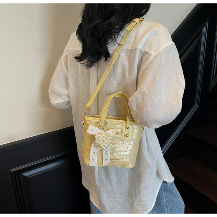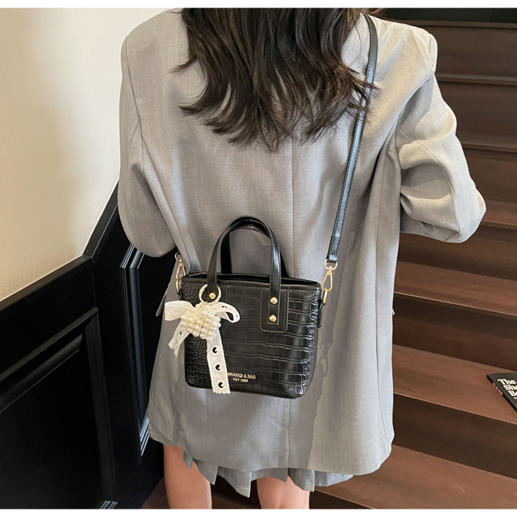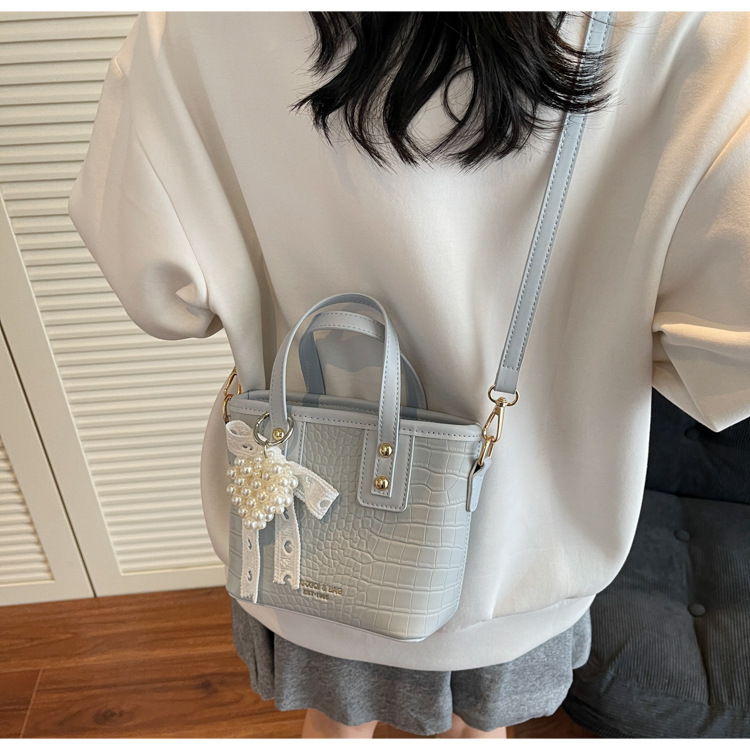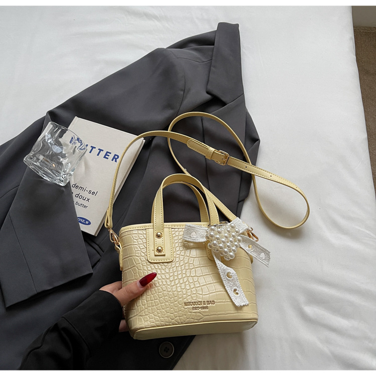 Bolso de cubo de mano súper fuego transfronterizo para mujer 2025 nuevo bolso de hombro con patrón de cocodrilo casual salvaje bolso de mensajero de moda