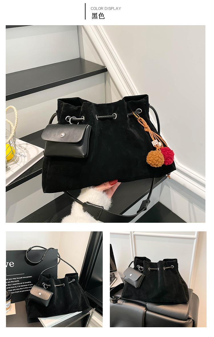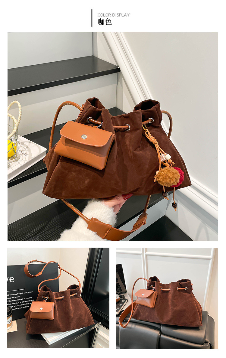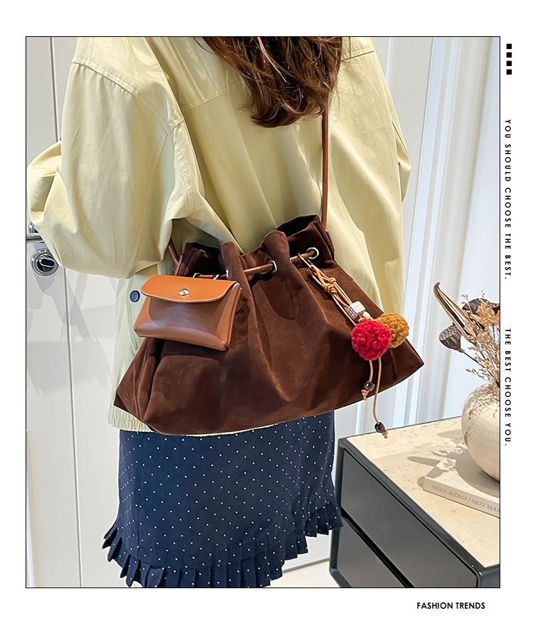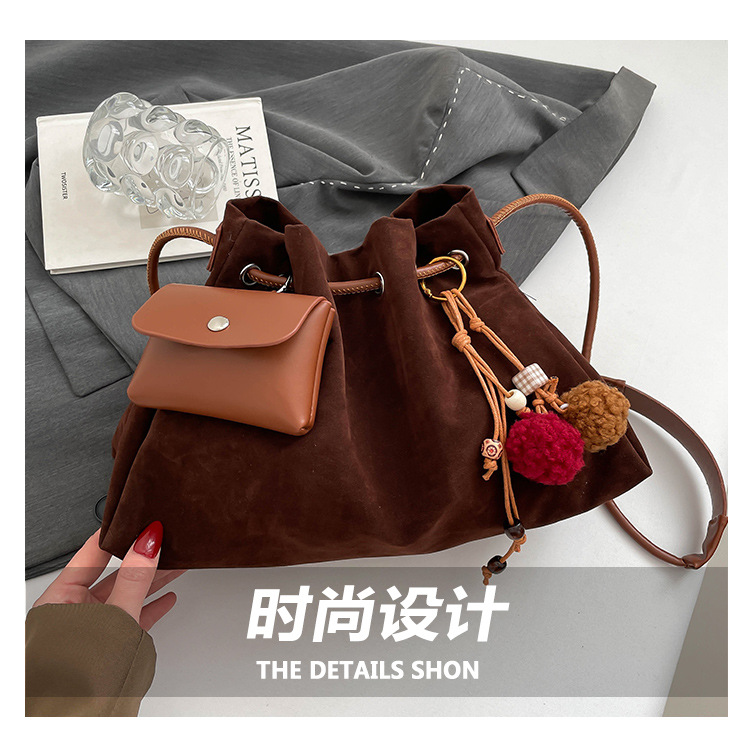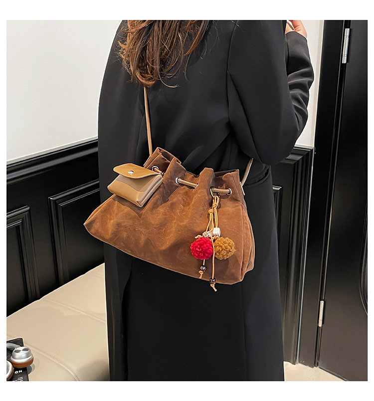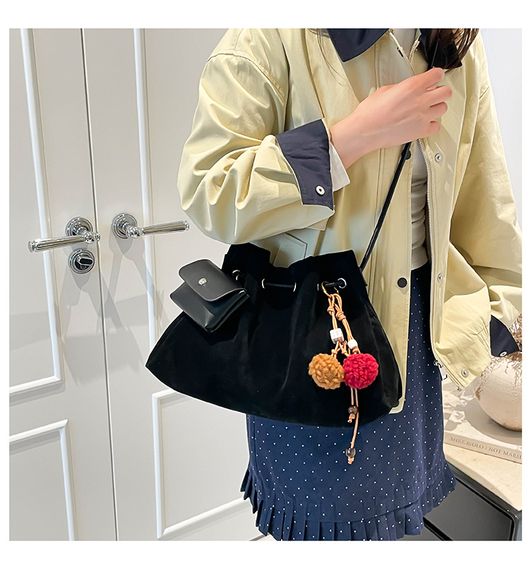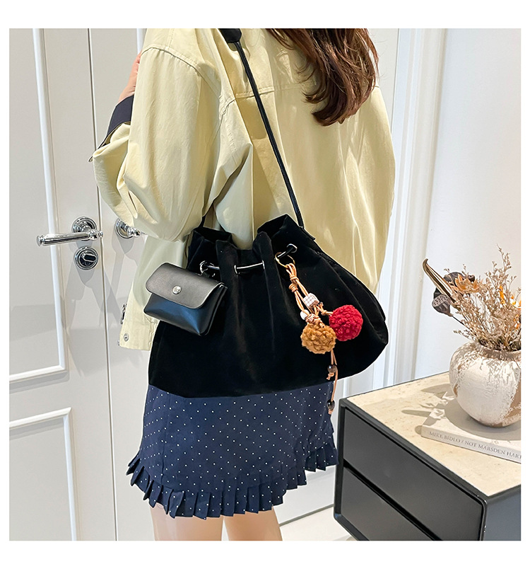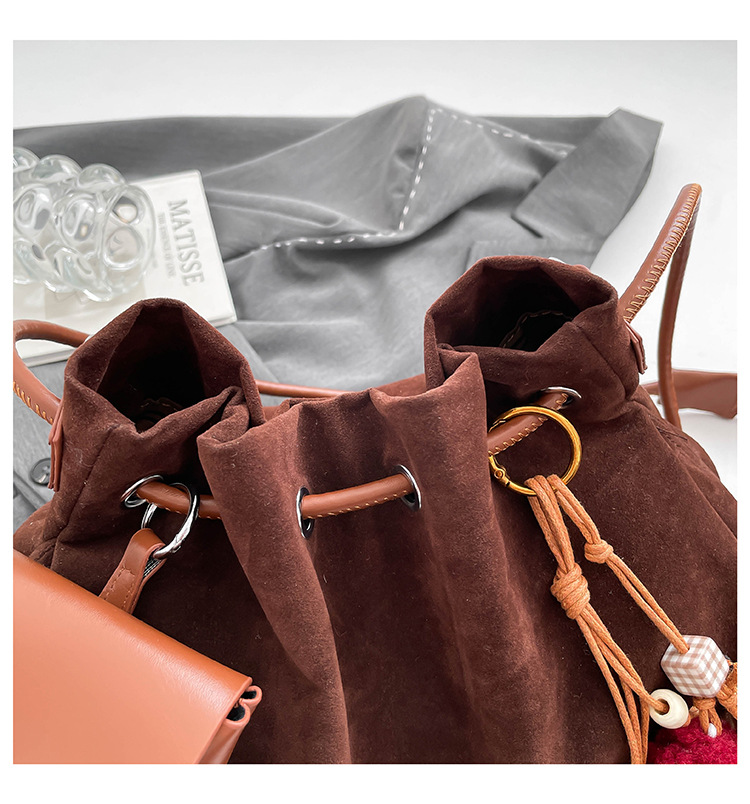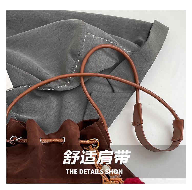 Bolsa de invierno de mujer 2025 nuevo estilo de moda de alta calidad sensación ligera de lujo bolso de cubo de cuerda de dibujo bolso de hombro