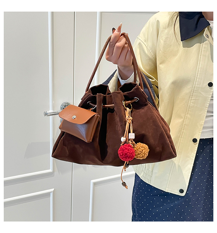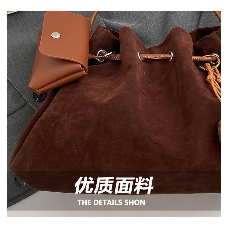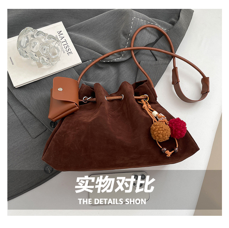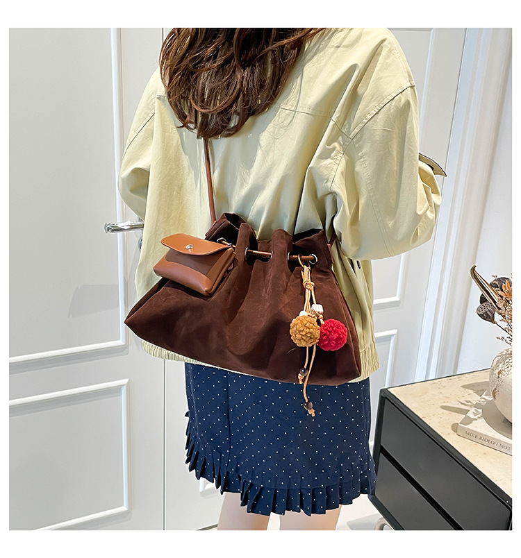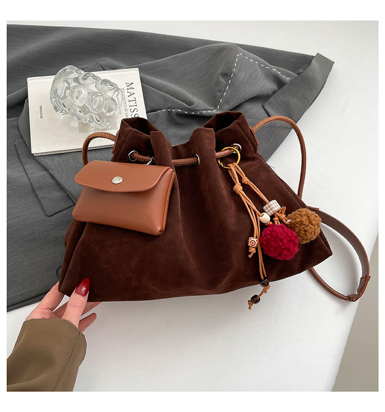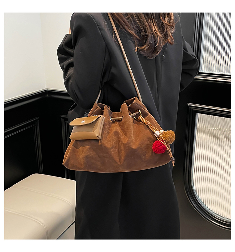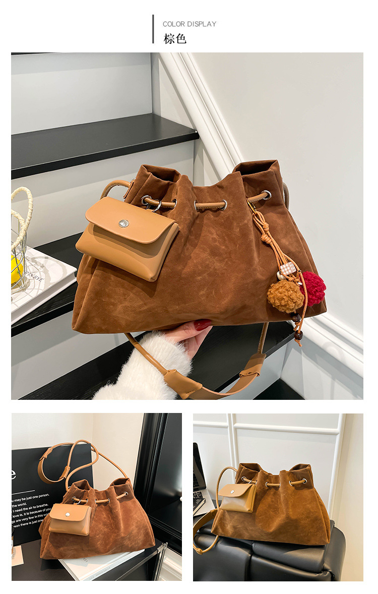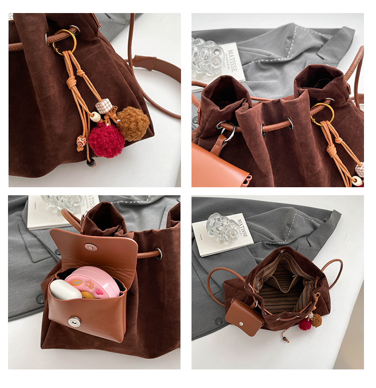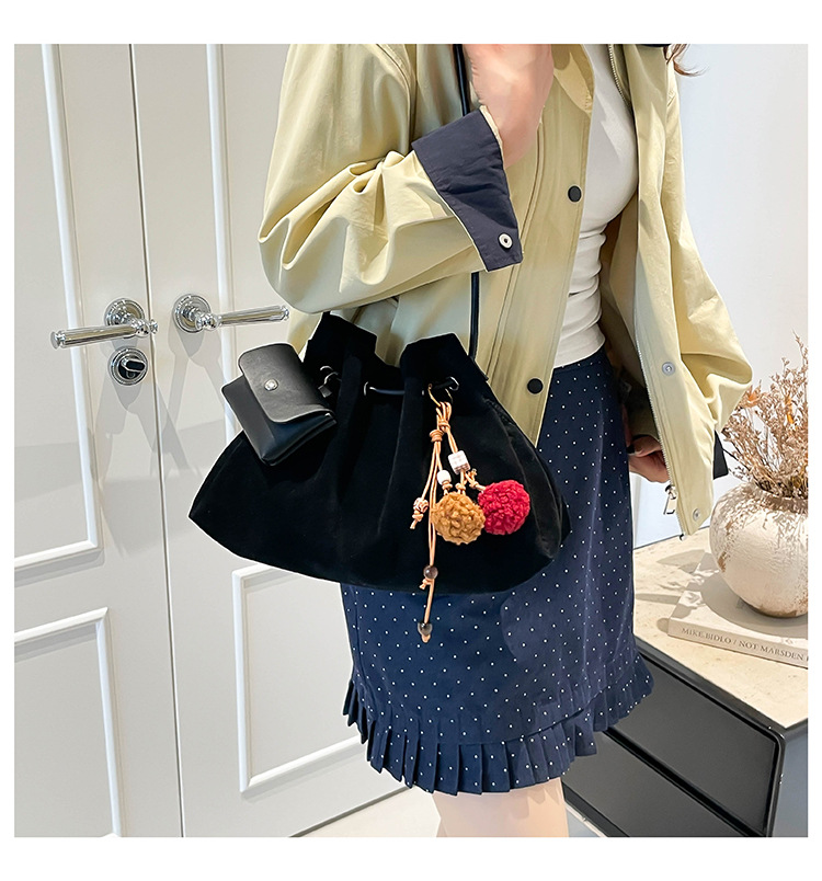 Bolsa de invierno de mujer 2025 nuevo estilo de moda de alta calidad sensación ligera de lujo bolso de cubo de cuerda de dibujo bolso de hombro