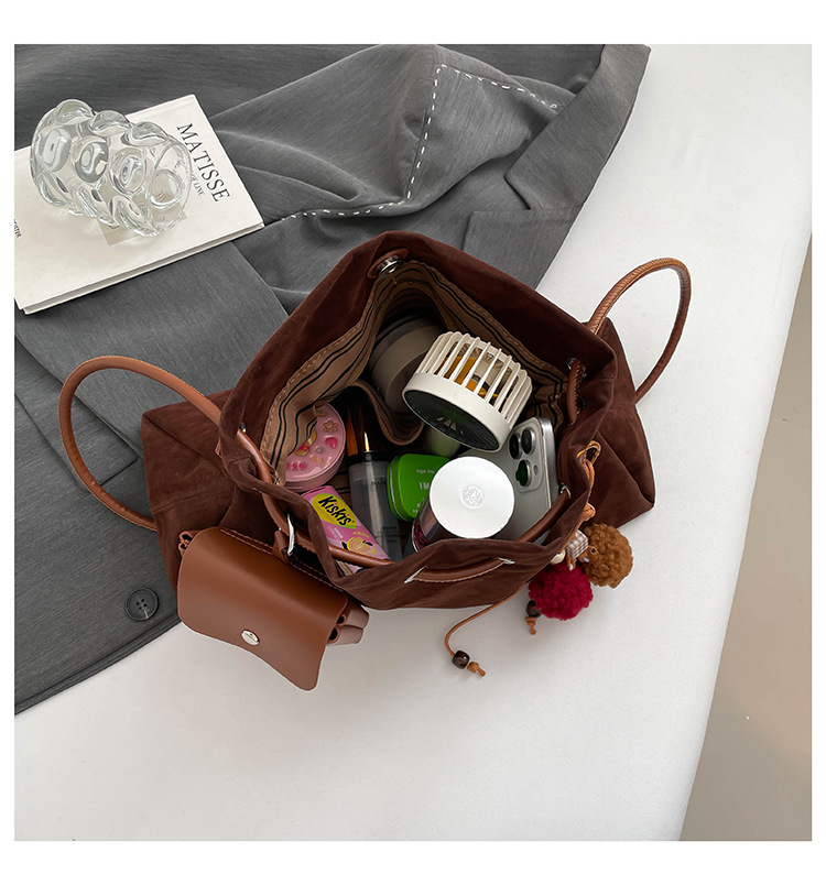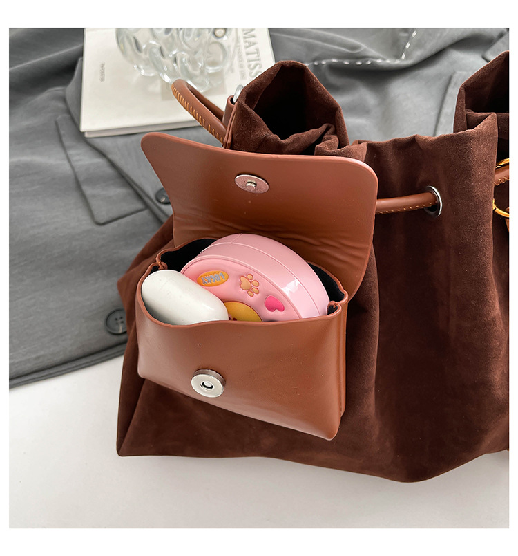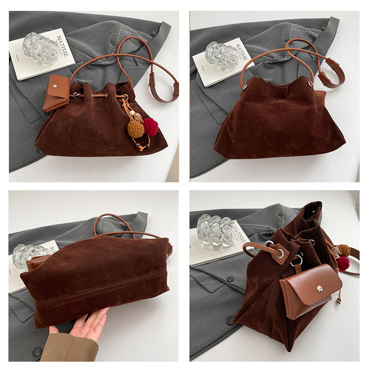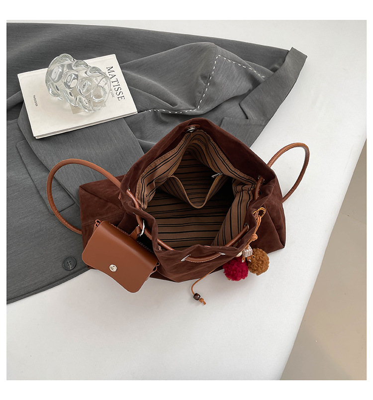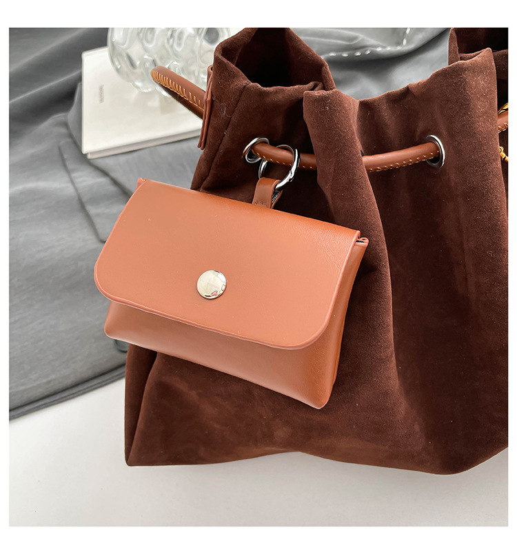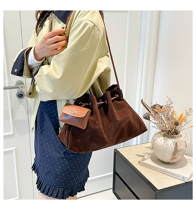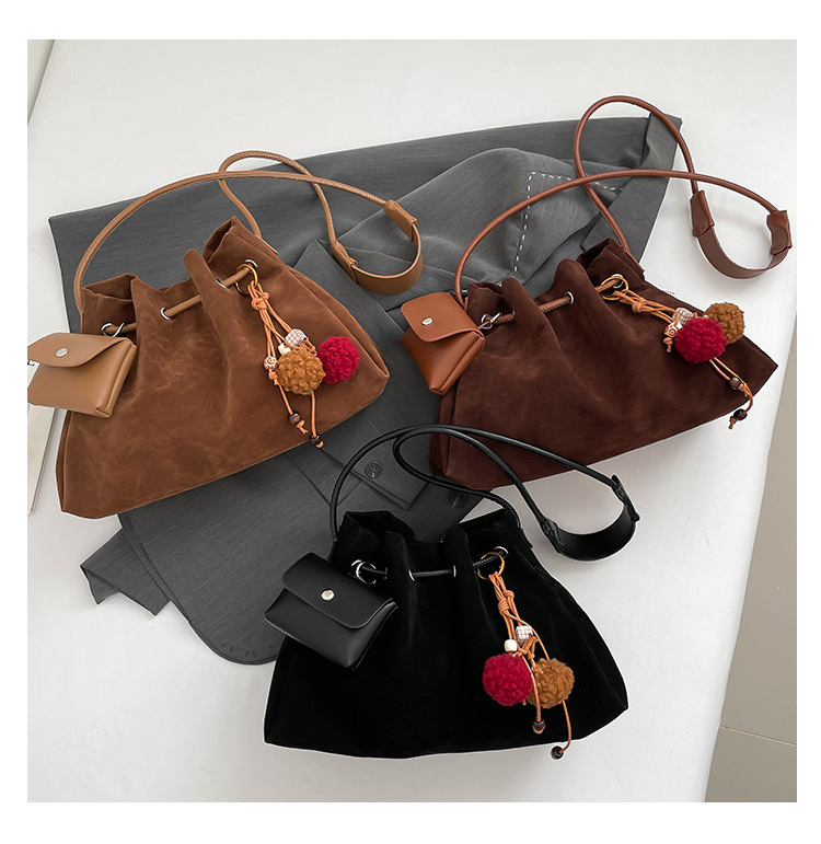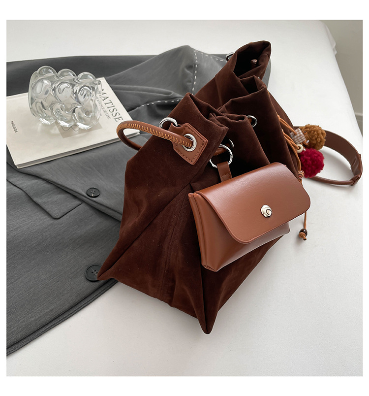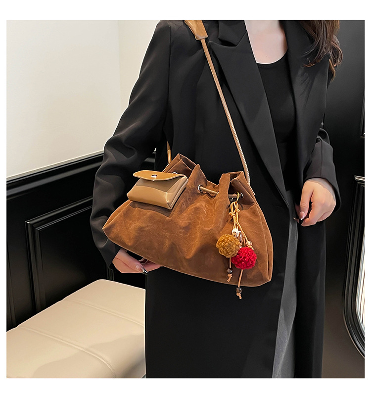 Bolsa de invierno de mujer 2025 nuevo estilo de moda de alta calidad sensación ligera de lujo bolso de cubo de cuerda de dibujo bolso de hombro