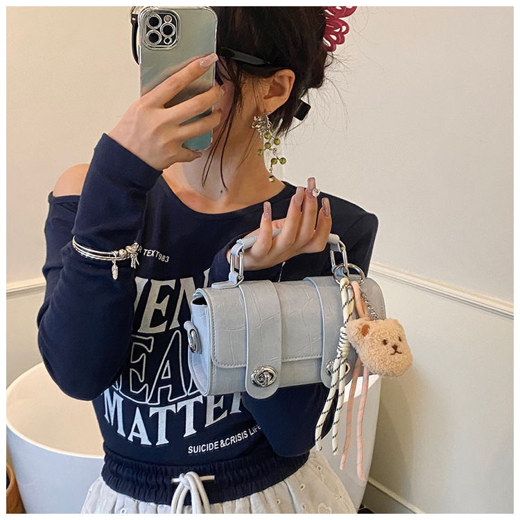 Bolso cuadrado pequeño con bloqueo de nicho coreano único extranjero para mujer 2025 nuevo bolso de hombro de tendencia salvaje bolso de mensajero de moda de estilo occidental