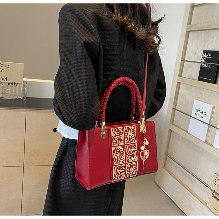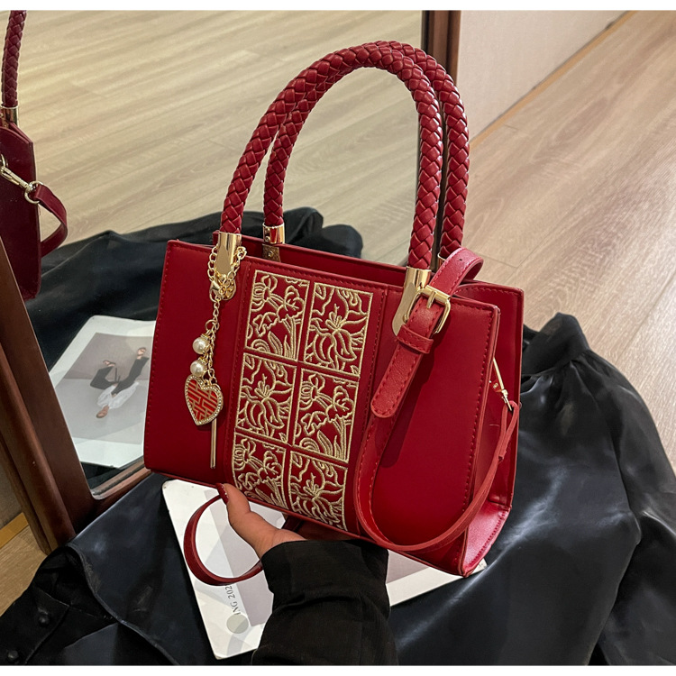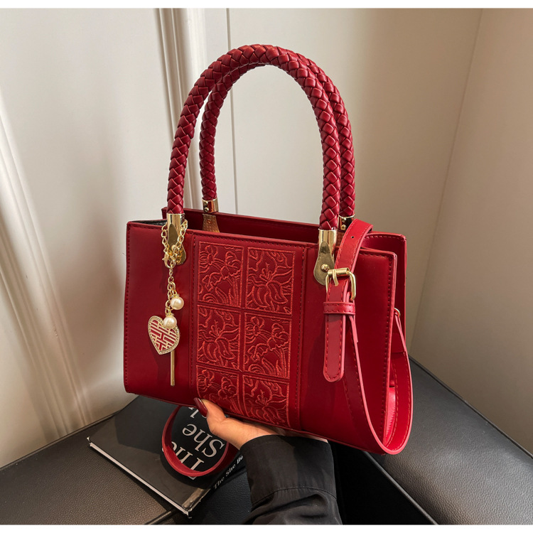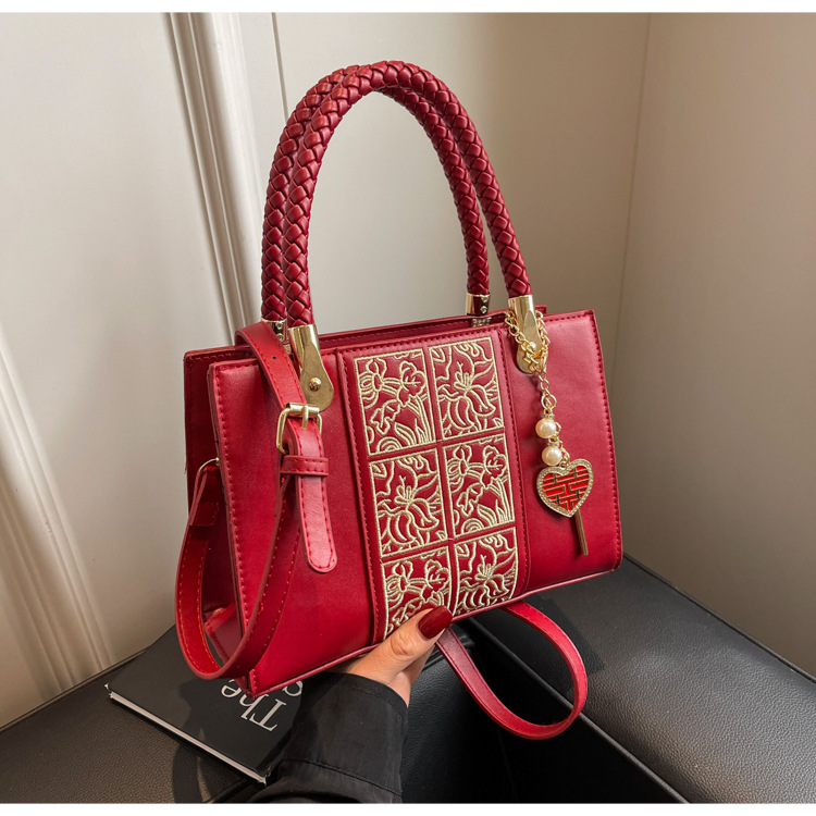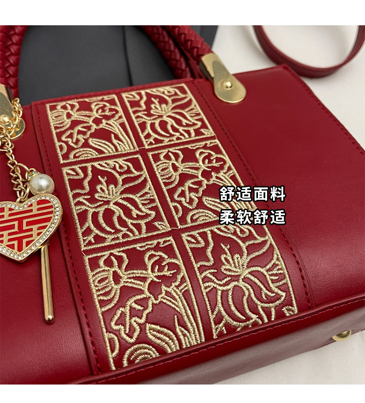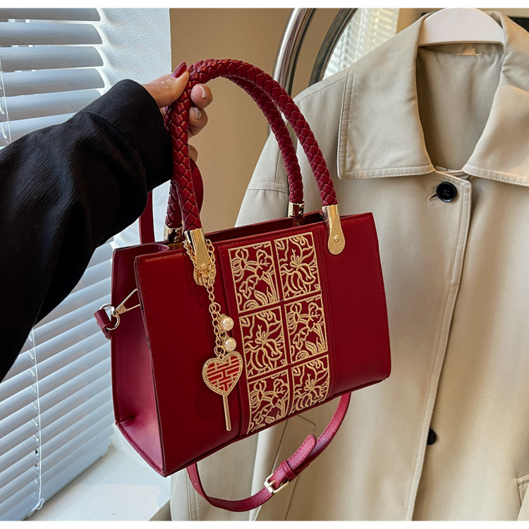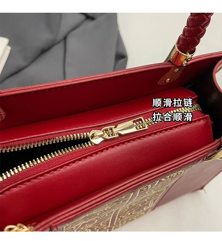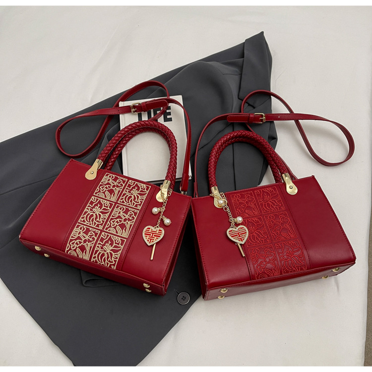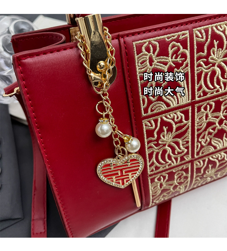 Bolso de boda rojo para mujer 2025 nuevo bolso de novia bordado a mano bolso de mensajero de un solo hombro de textura de alta calidad