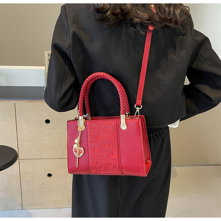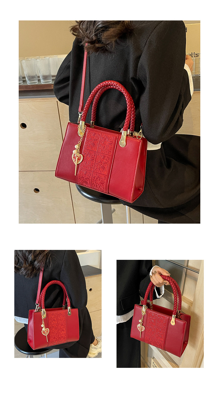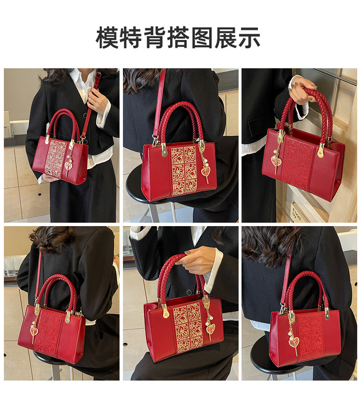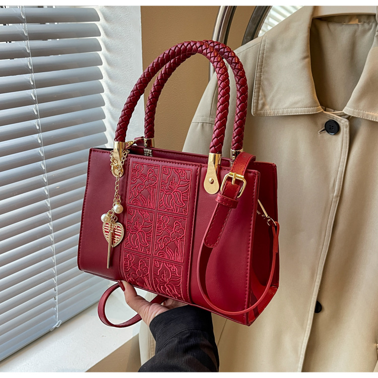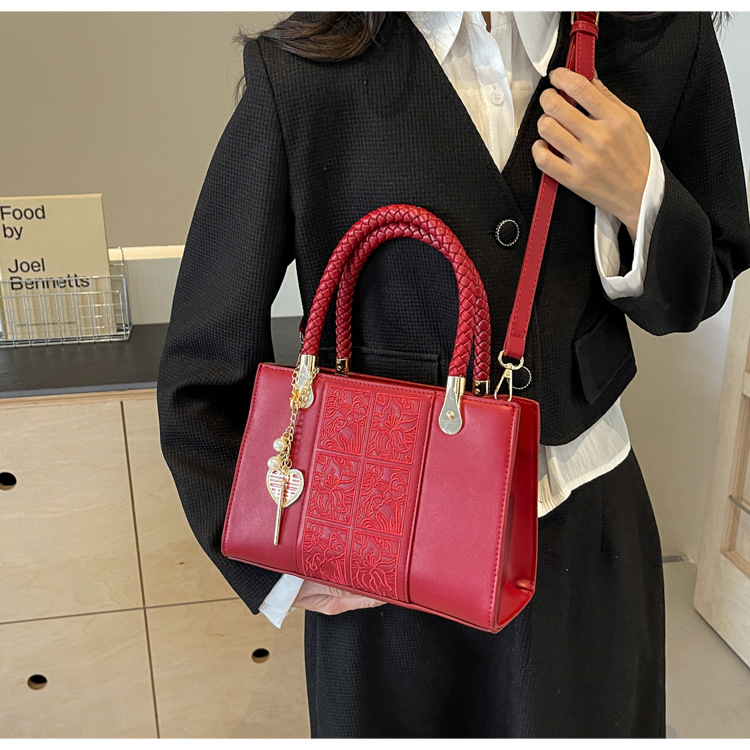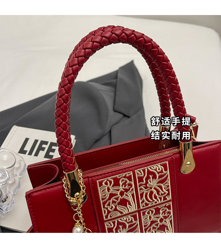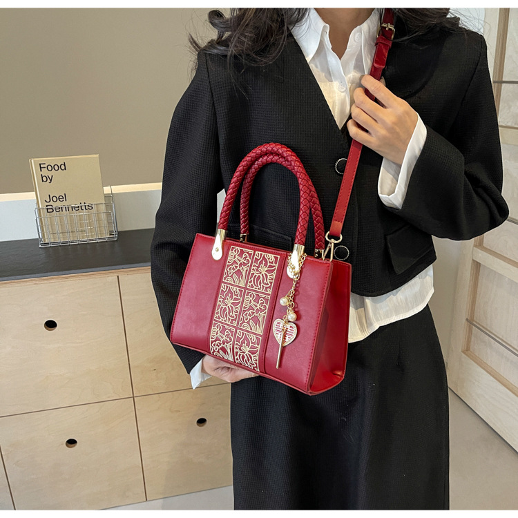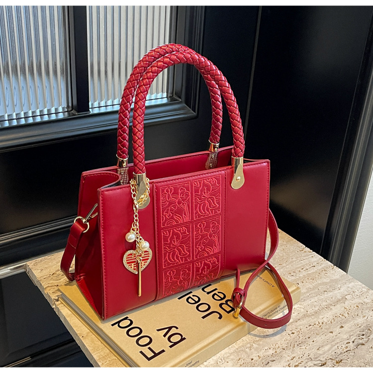 Bolso de boda rojo para mujer 2025 nuevo bolso de novia bordado a mano bolso de mensajero de un solo hombro de textura de alta calidad
