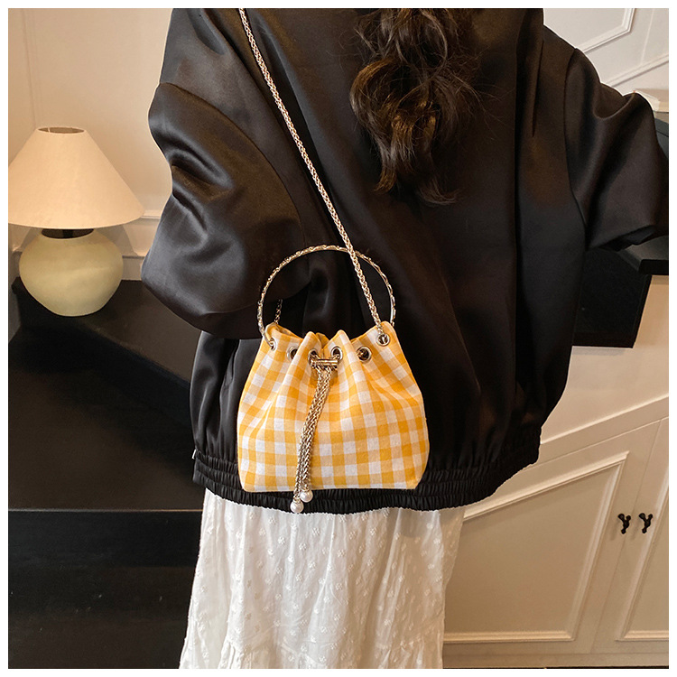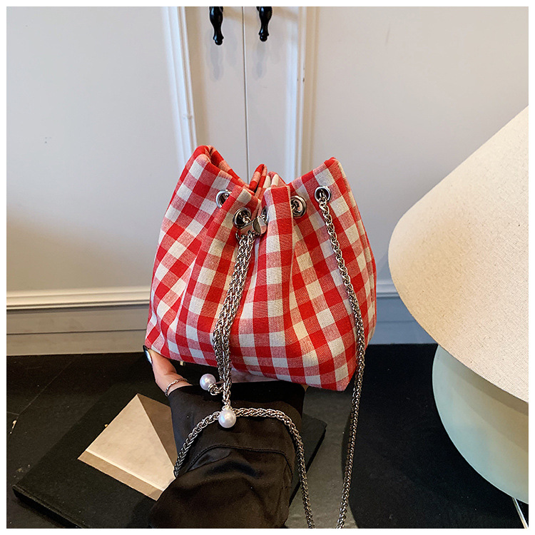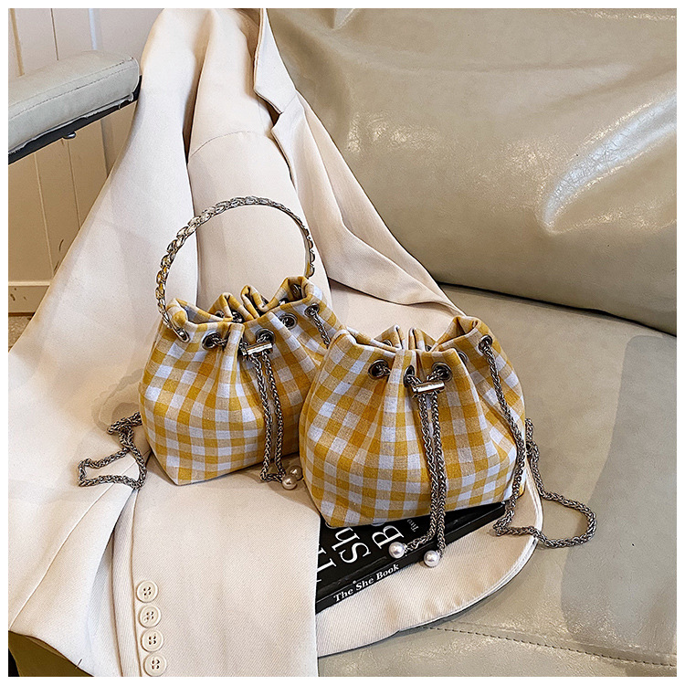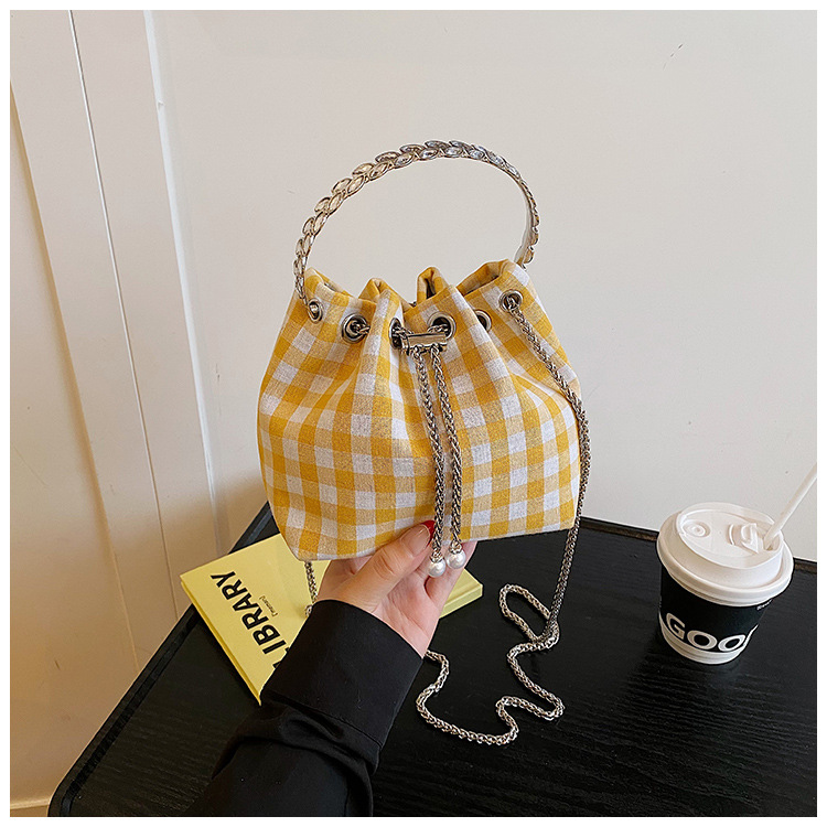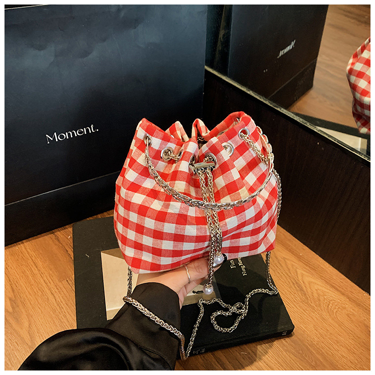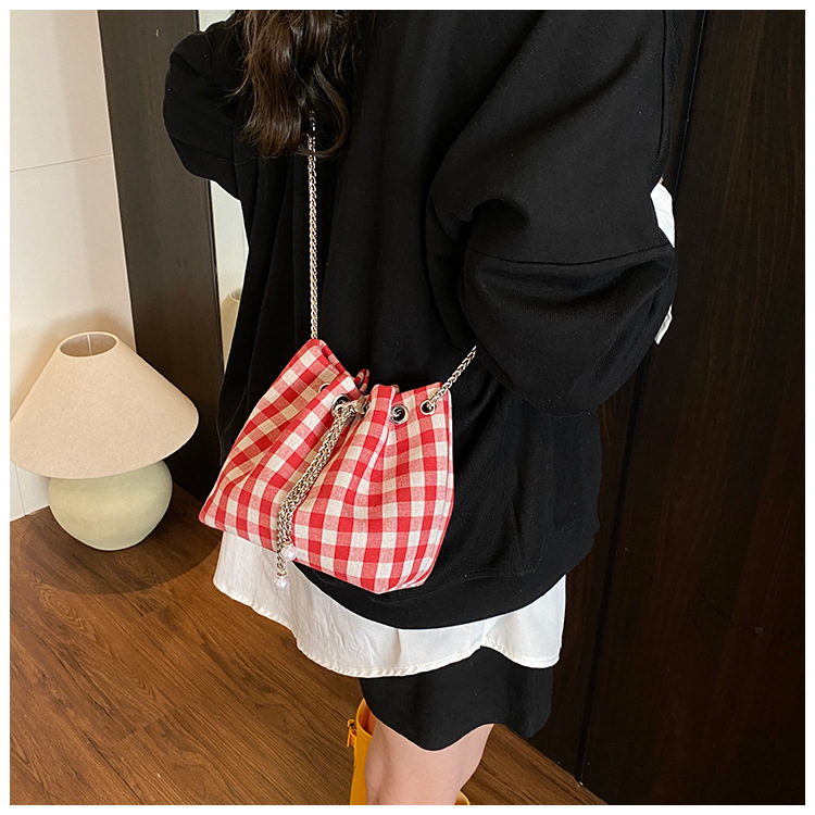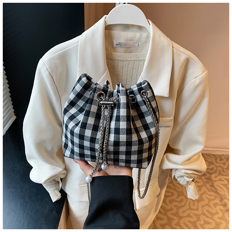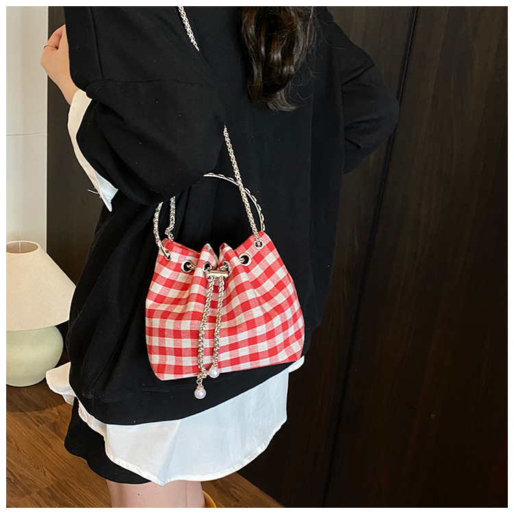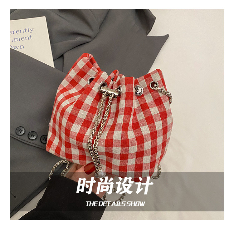 Bolso de cubo de lona a cuadros popular de este año bolso de hombro con cadena de estilo nuevo para mujer 2025 bolso de mensajero versátil de moda
