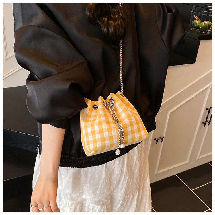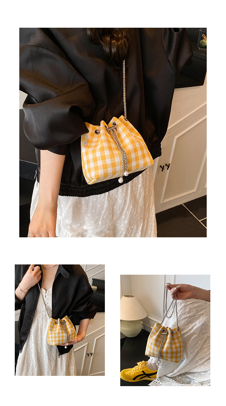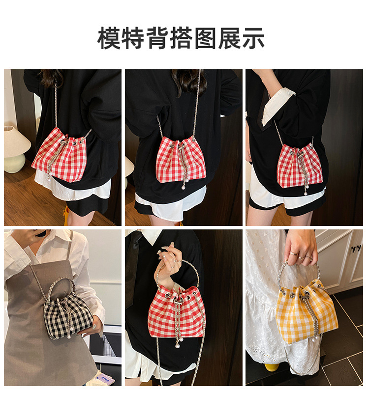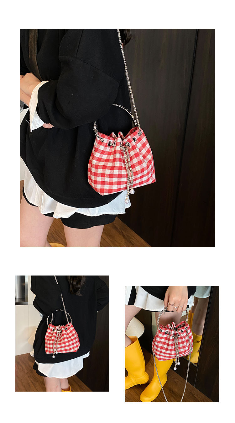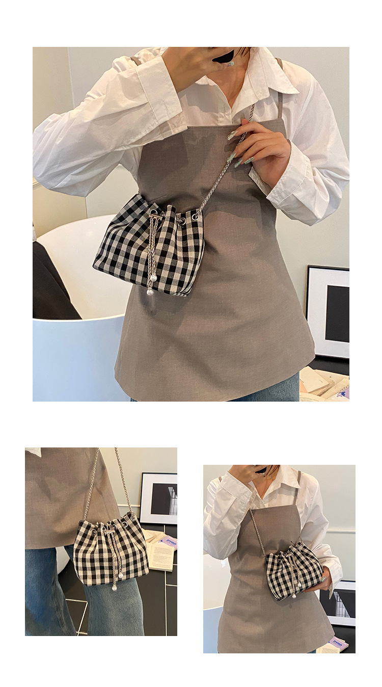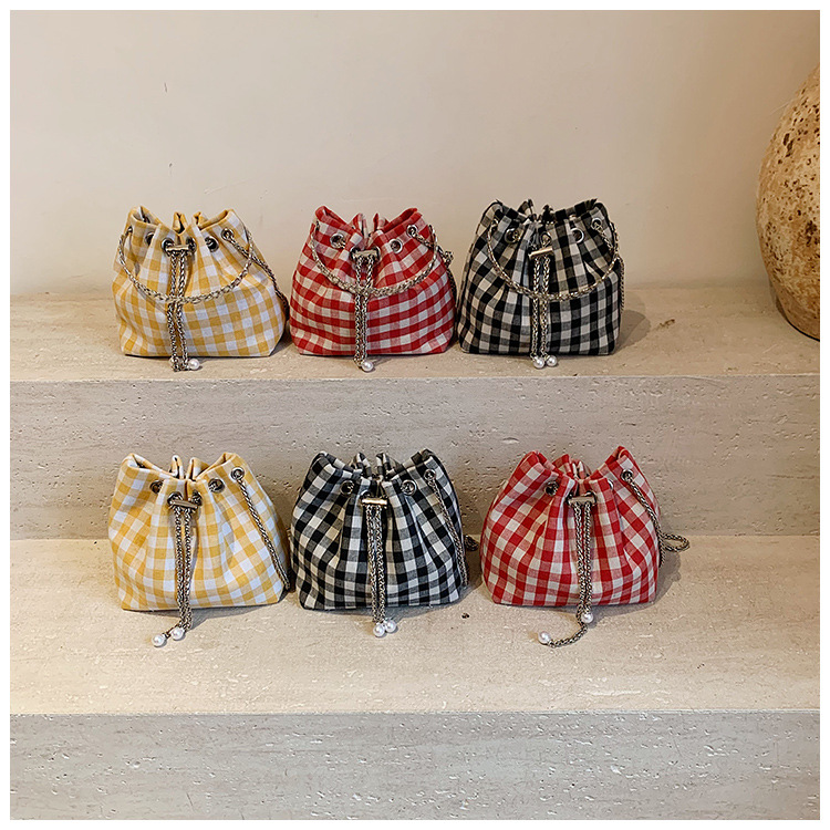 Bolso de cubo de lona a cuadros popular de este año bolso de hombro con cadena de estilo nuevo para mujer 2025 bolso de mensajero versátil de moda