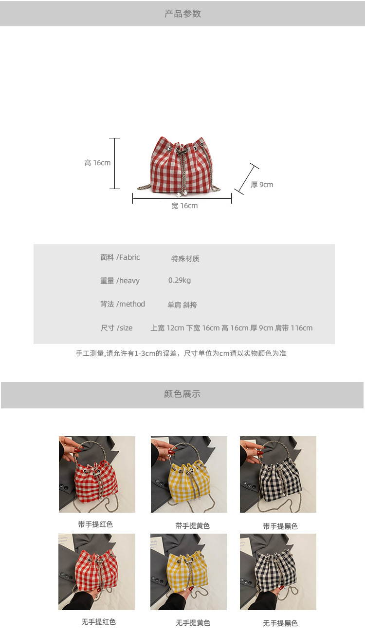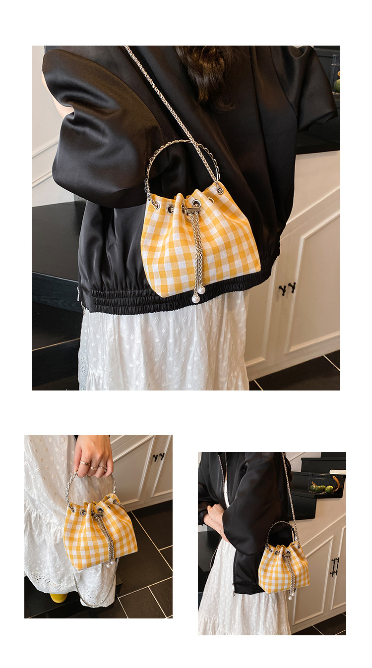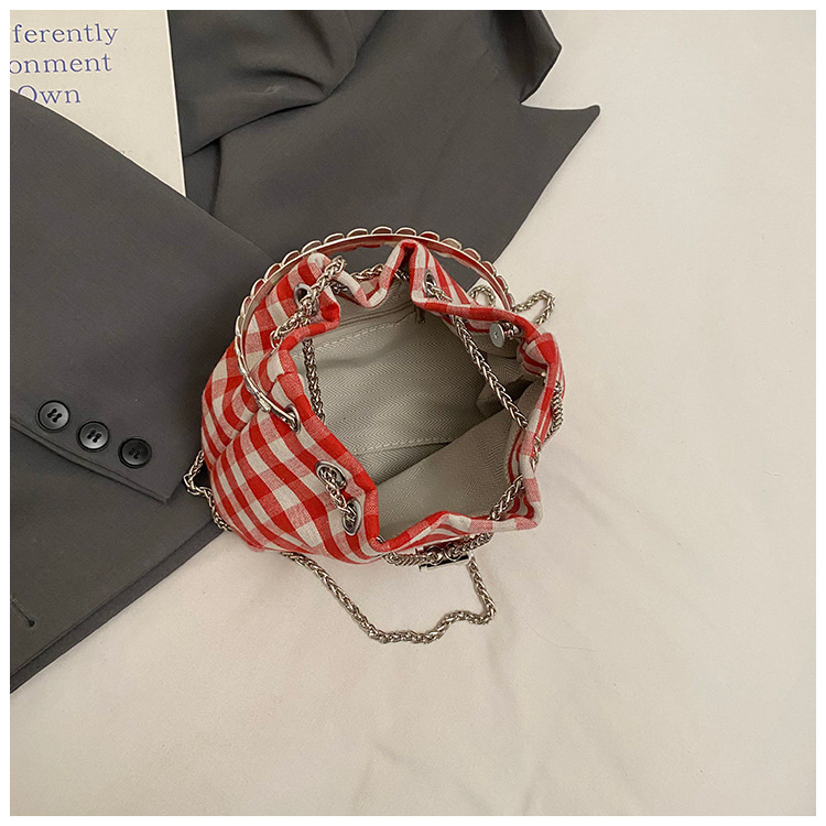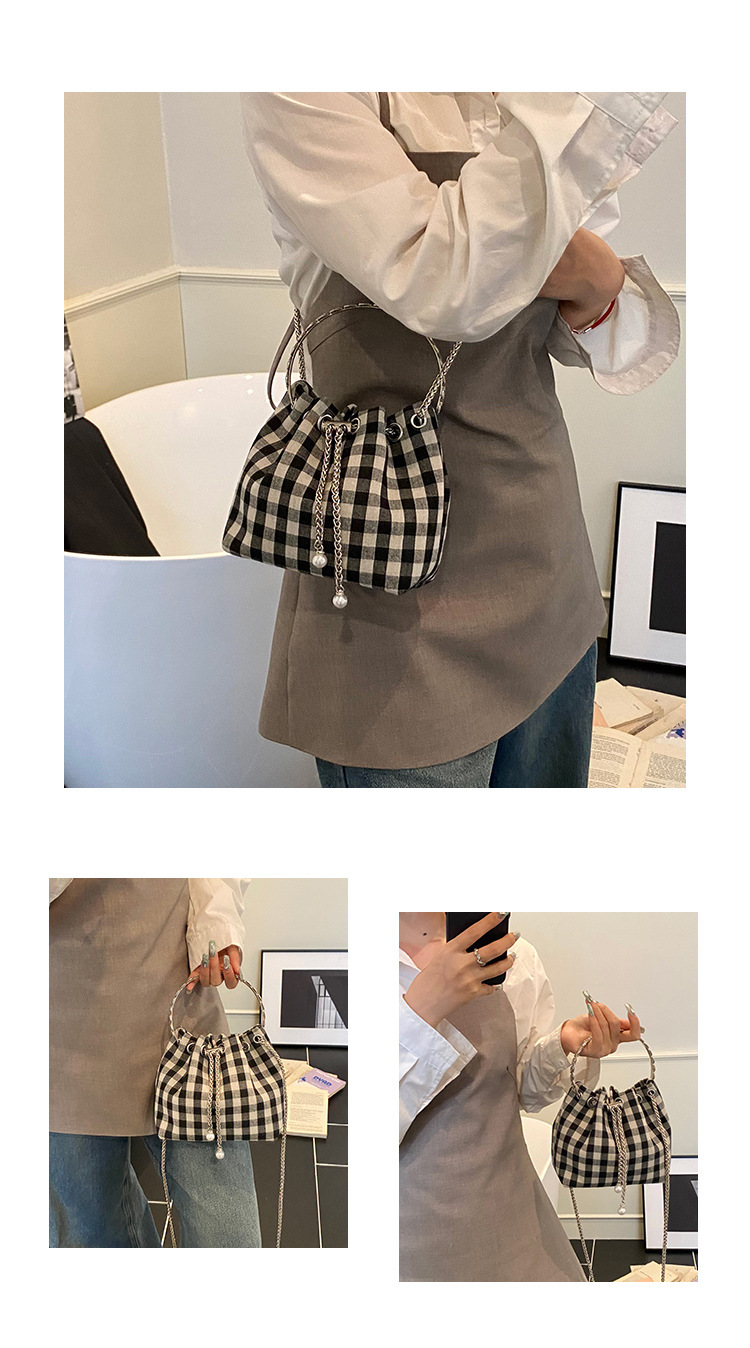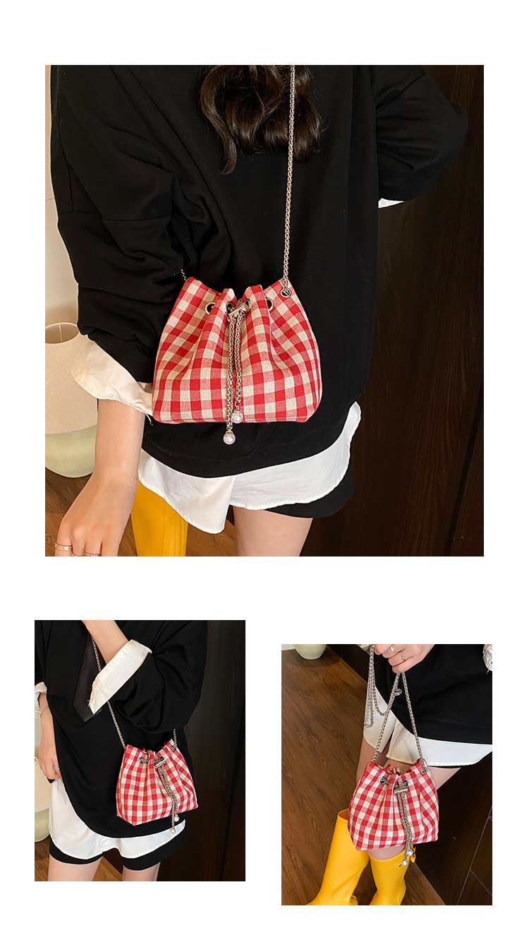 Bolso de cubo de lona a cuadros popular de este año bolso de hombro con cadena de estilo nuevo para mujer 2025 bolso de mensajero versátil de moda