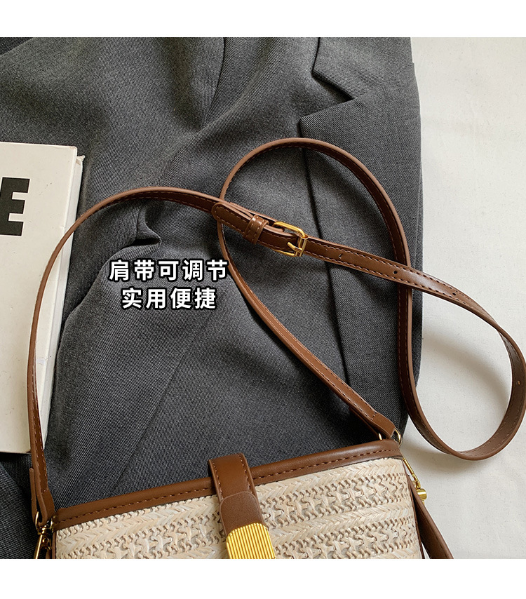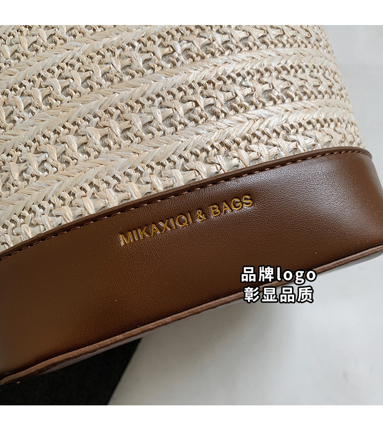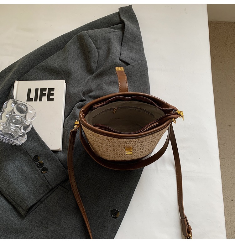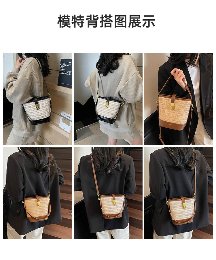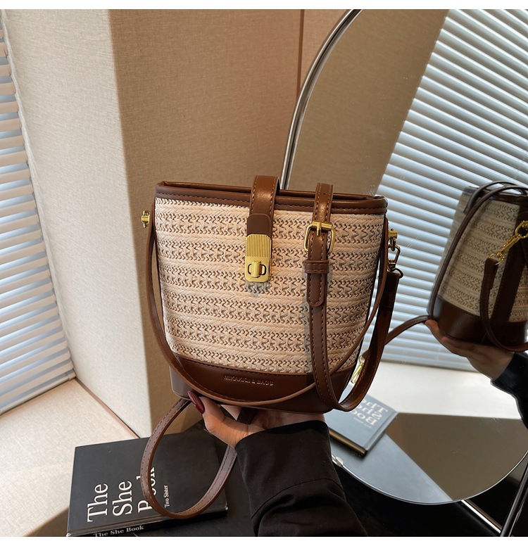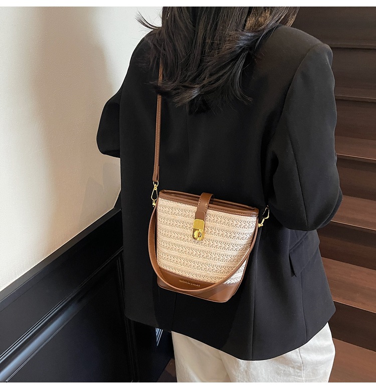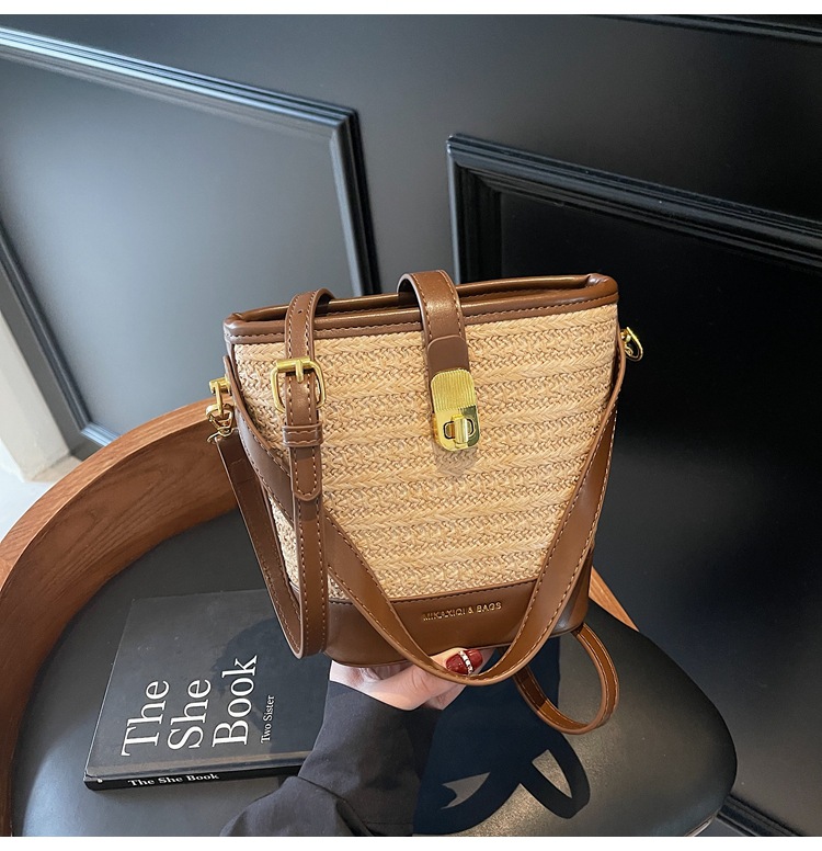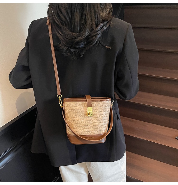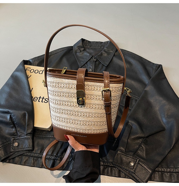 Bolso de cubo de paja de mano popular de verano 2025 nuevo bolso de mensajero tejido de vacaciones junto al mar con textura bolso femenino de todo fósforo