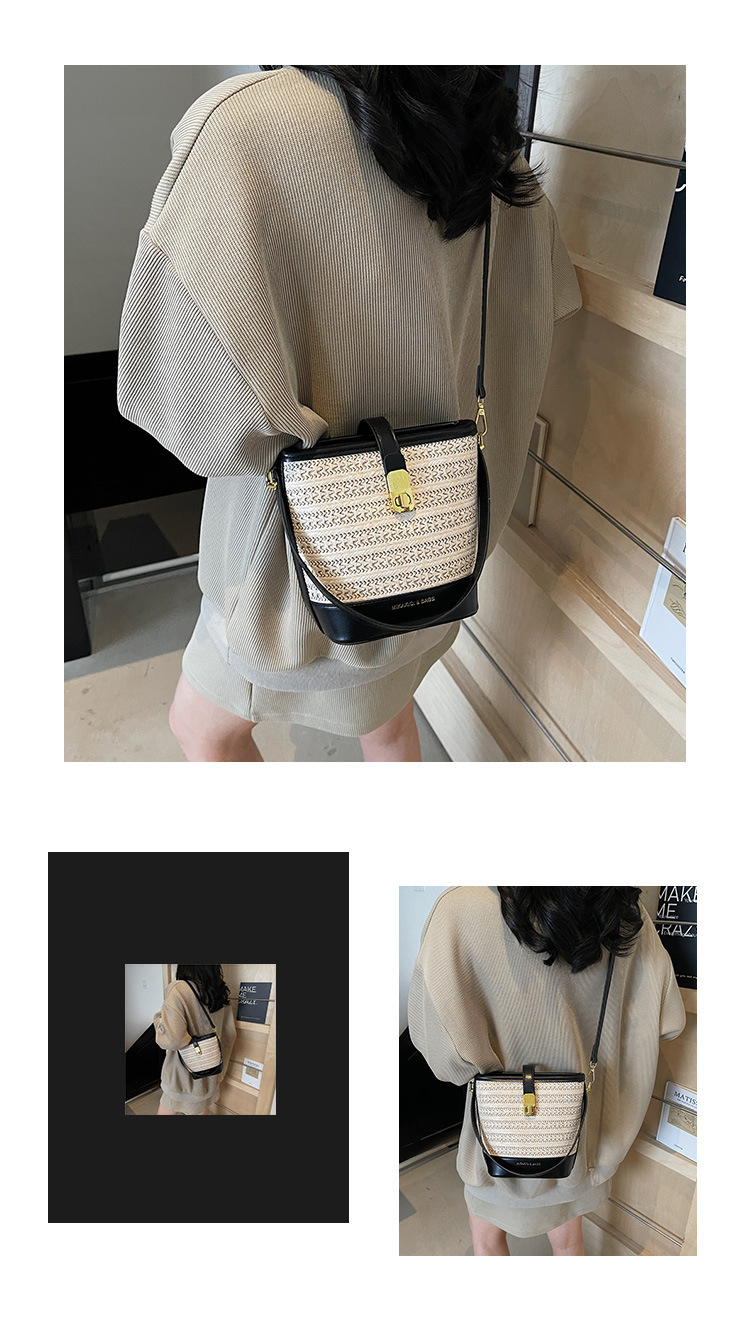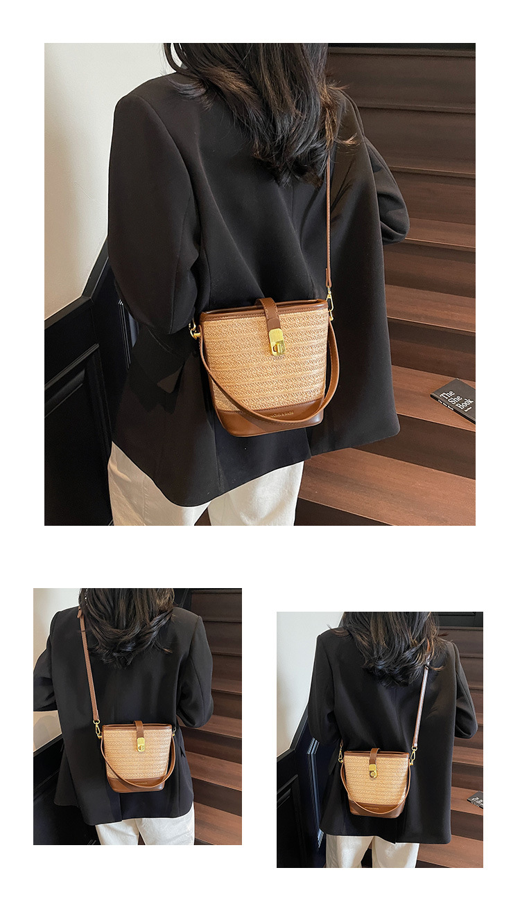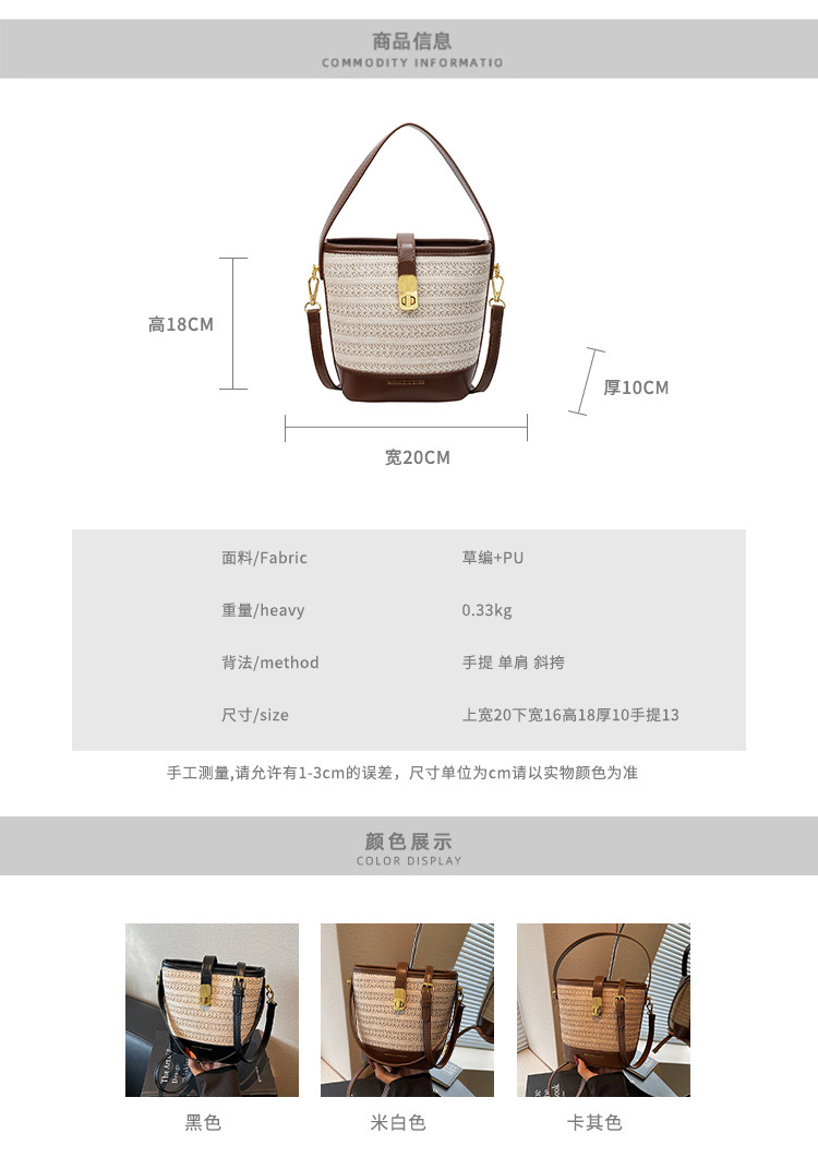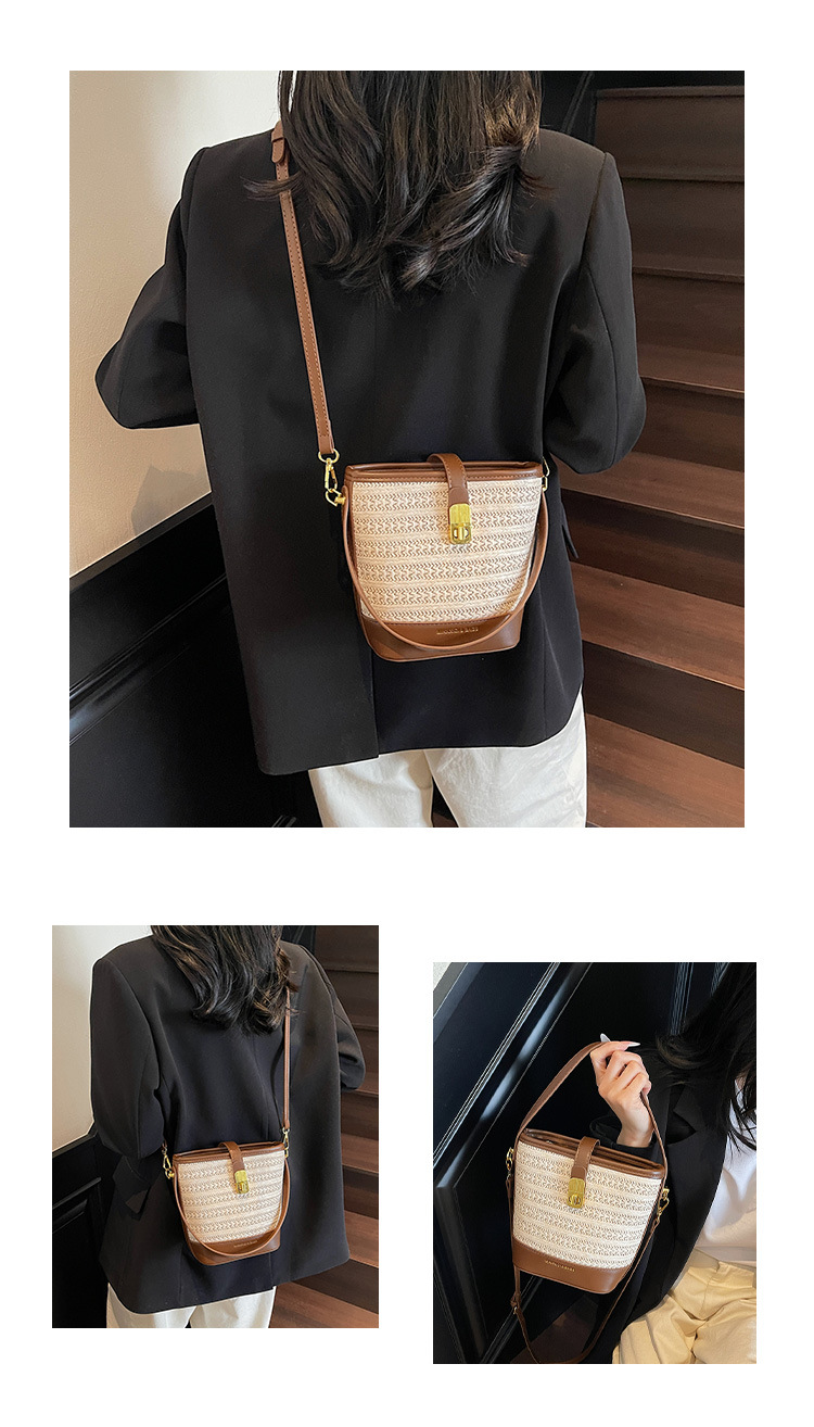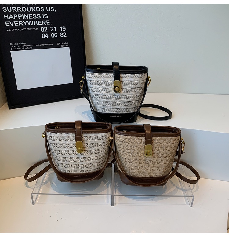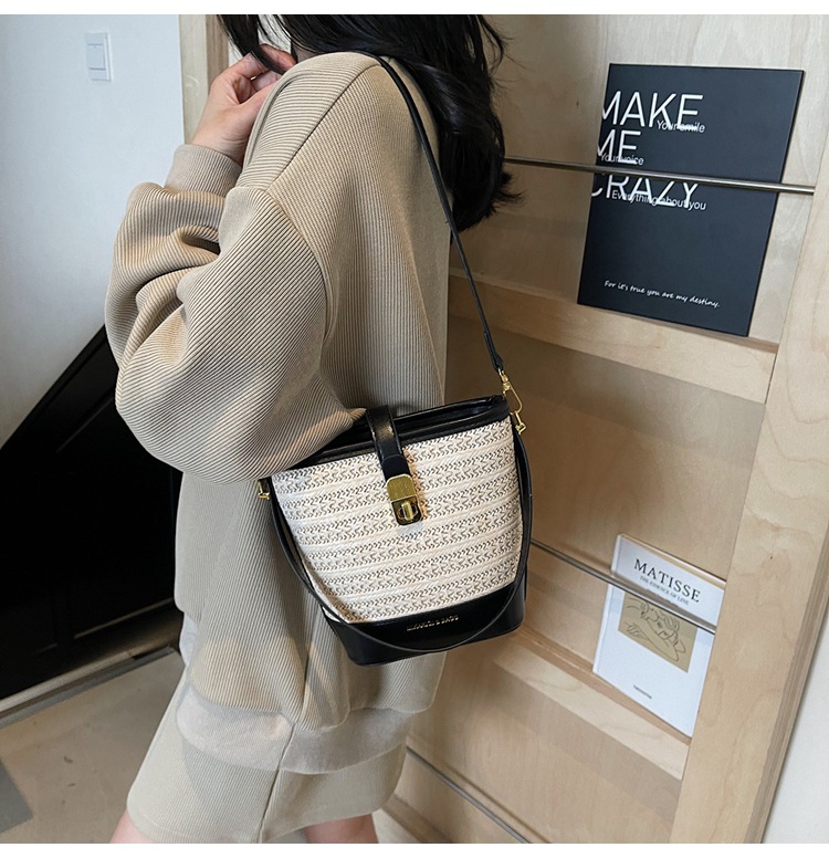 Bolso de cubo de paja de mano popular de verano 2025 nuevo bolso de mensajero tejido de vacaciones junto al mar con textura bolso femenino de todo fósforo