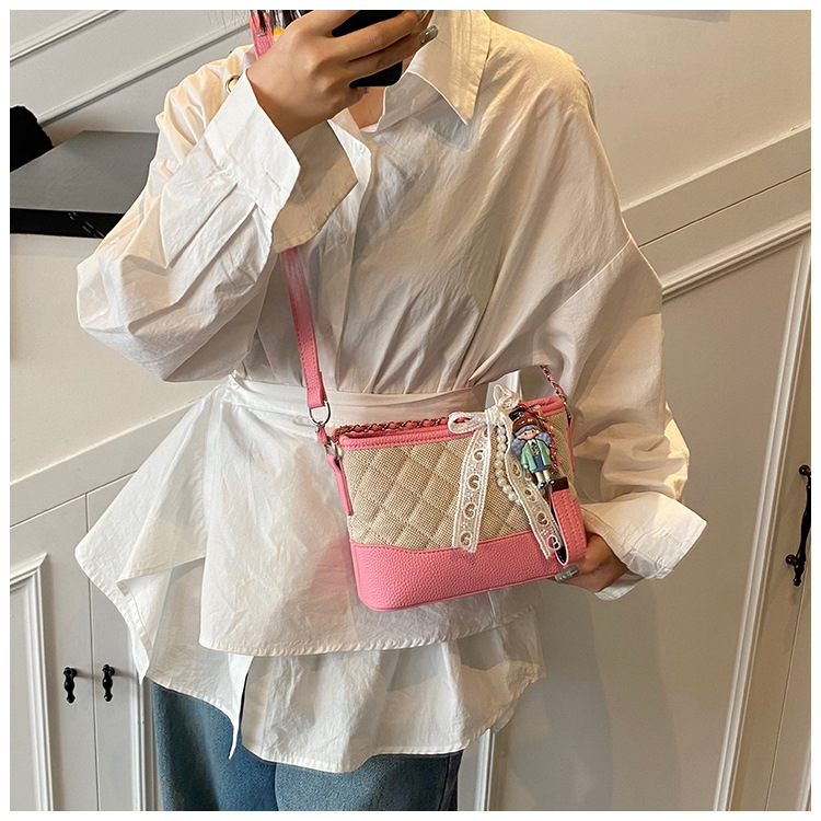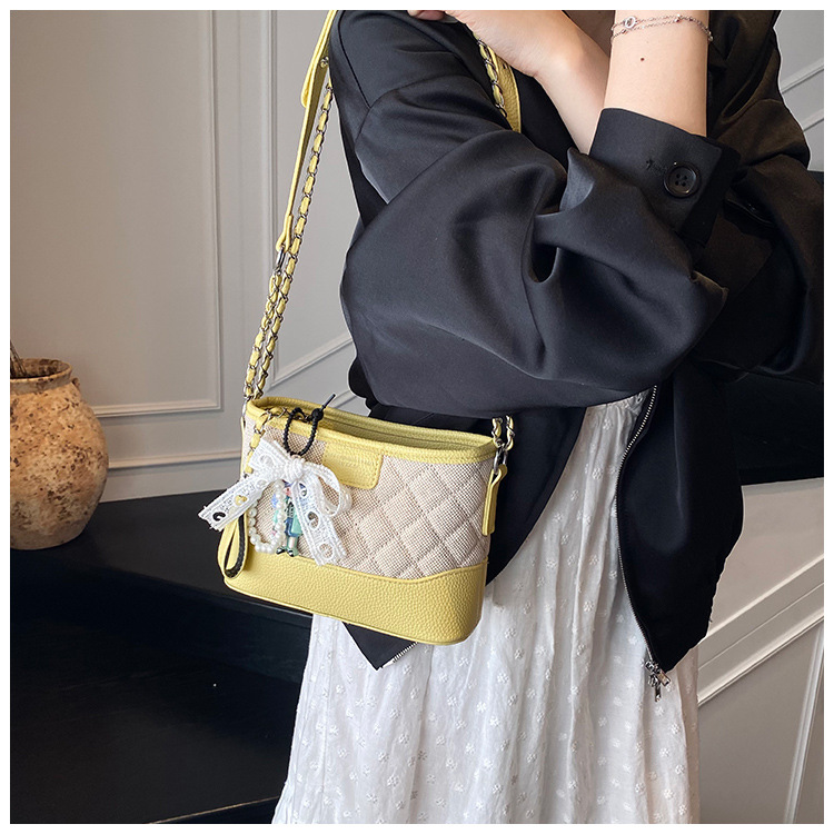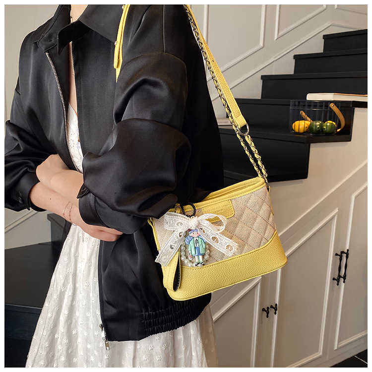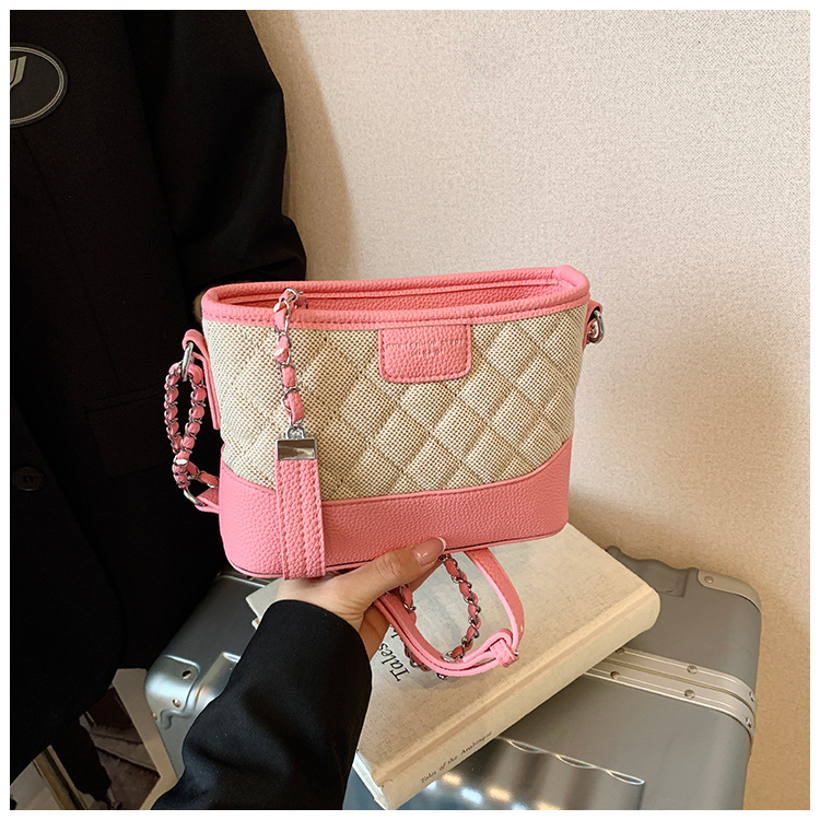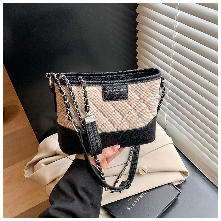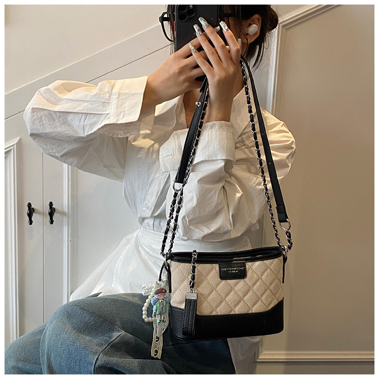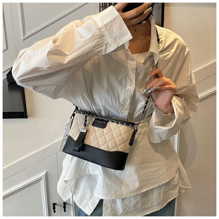 Bolsos pequeños de color de contraste populares de este año para mujer 2025 nuevo bolso de hombro de cadena de diamante bolso callejero de mensajero de todo fósforo de moda