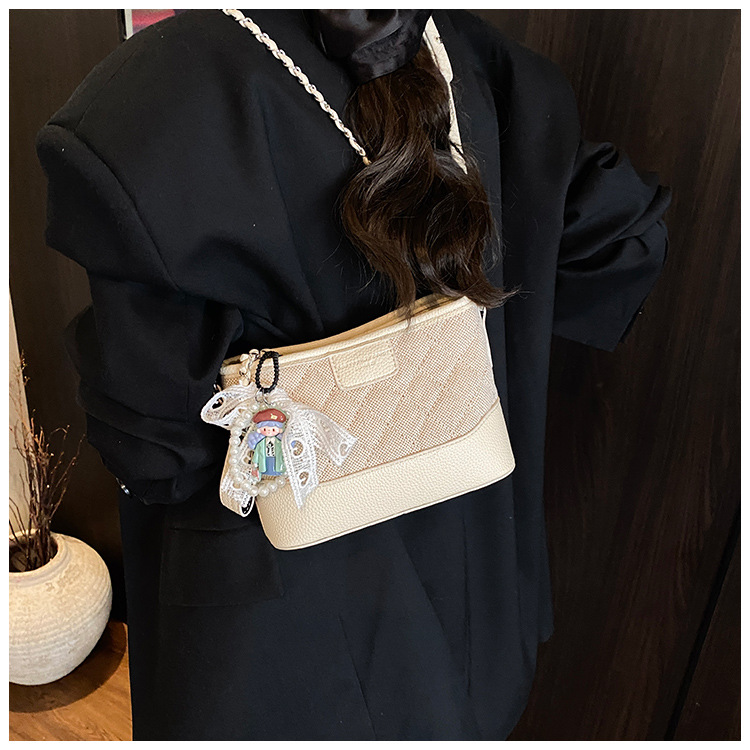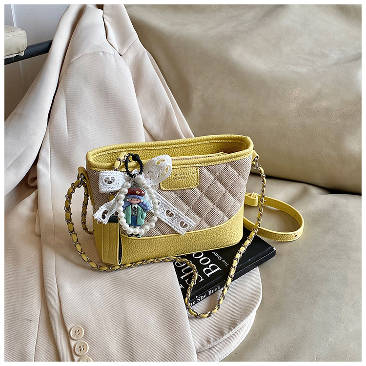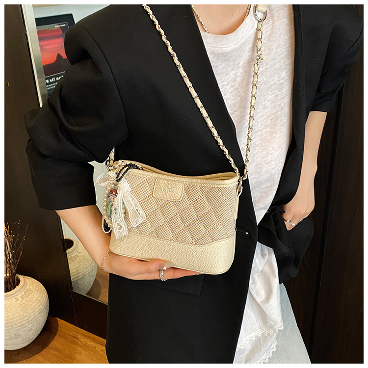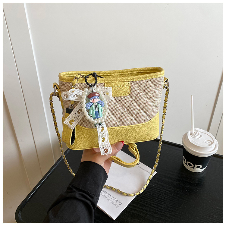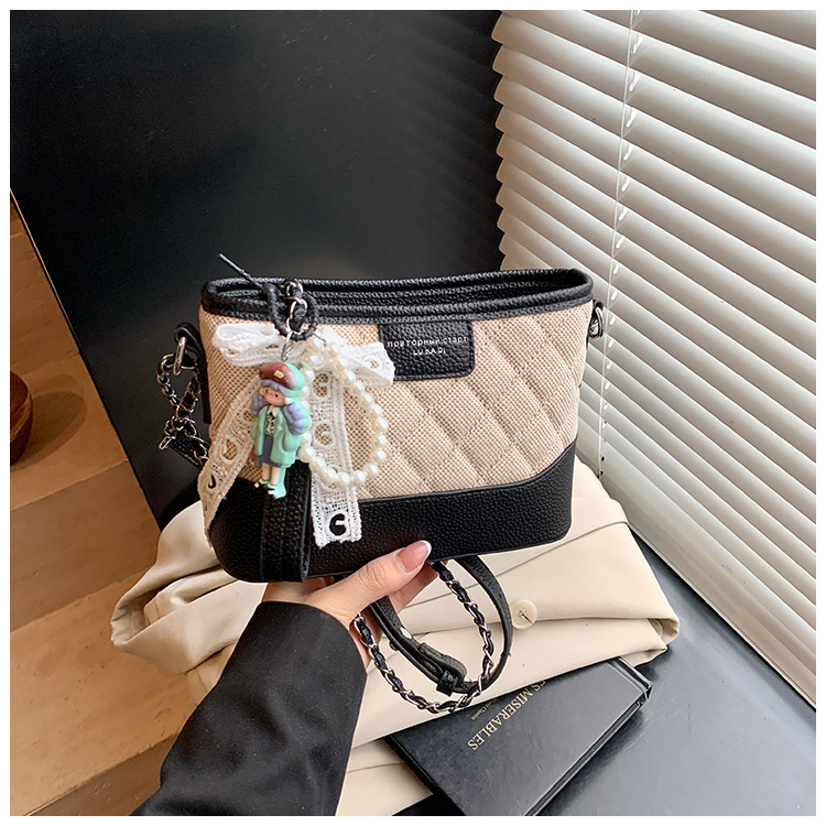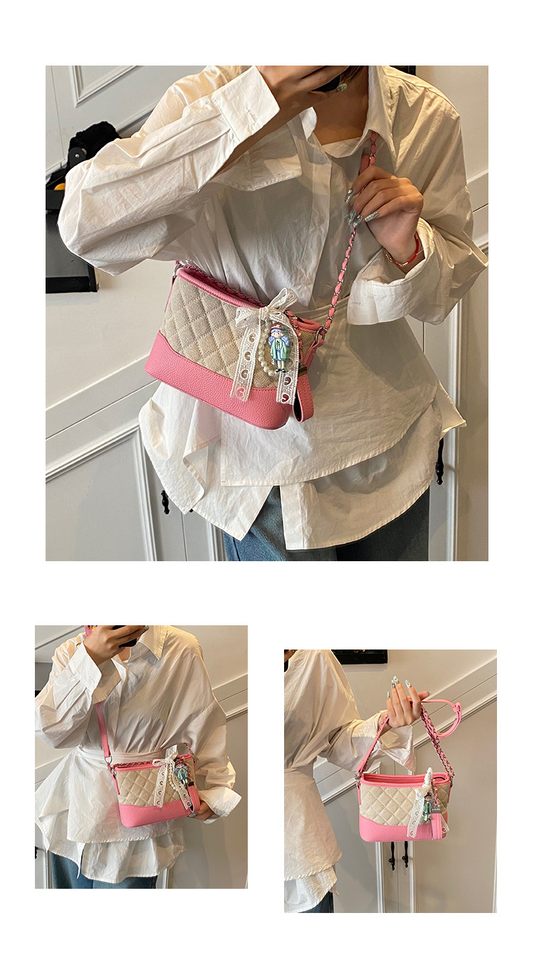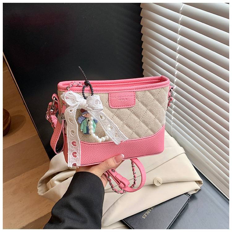 Bolsos pequeños de color de contraste populares de este año para mujer 2025 nuevo bolso de hombro de cadena de diamante bolso callejero de mensajero de todo fósforo de moda