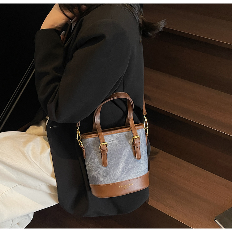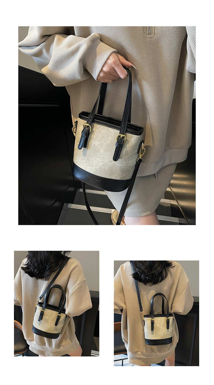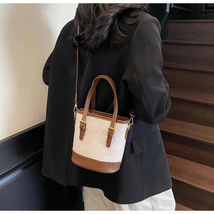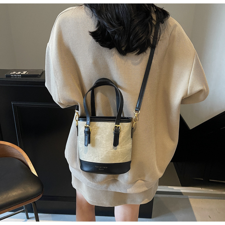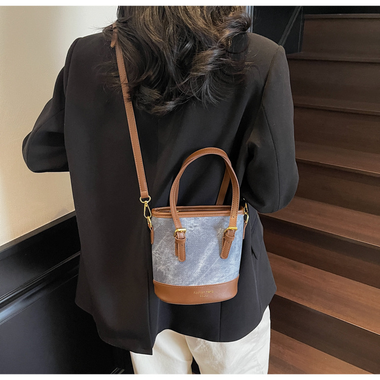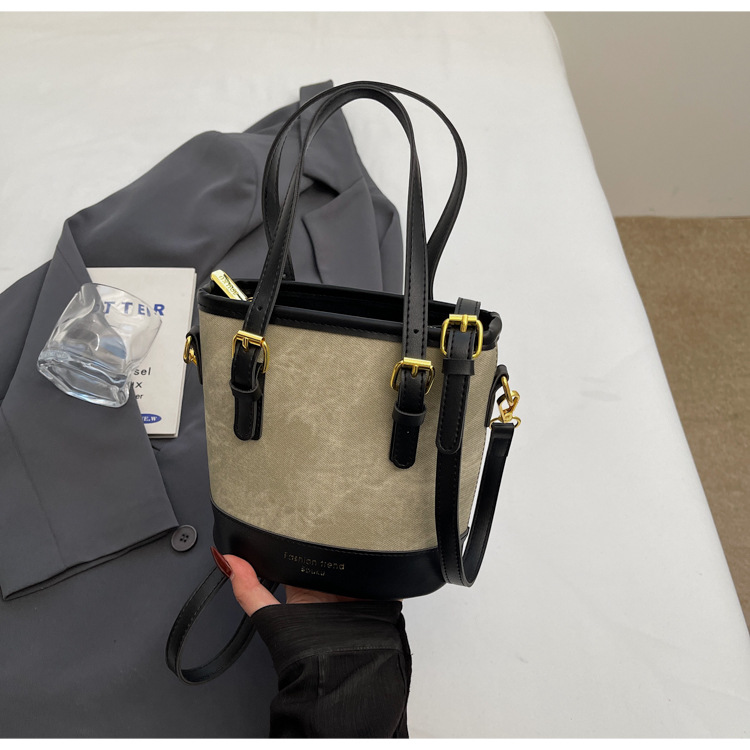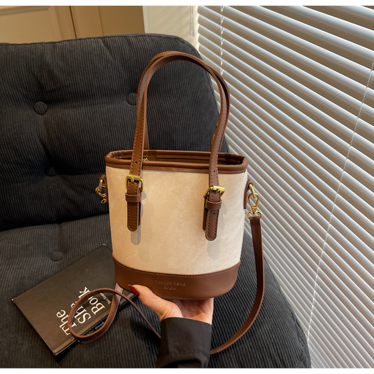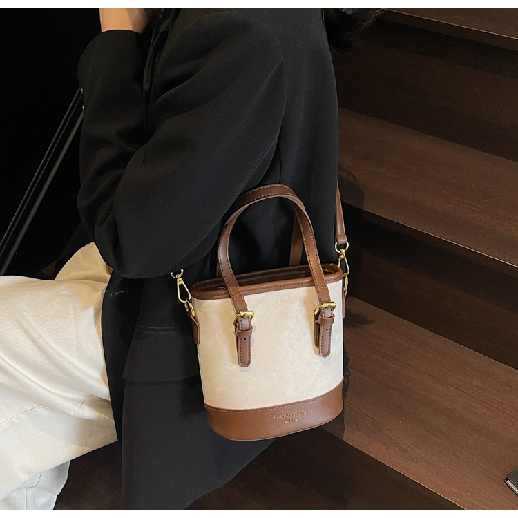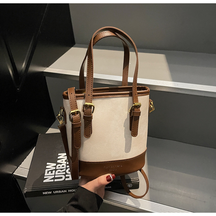 Bolso de mano de color de contraste de comercio exterior para mujer 2025 nuevo bolso de cubo de ocio salvaje simple bolso de mensajero de un solo hombro de alta gama
