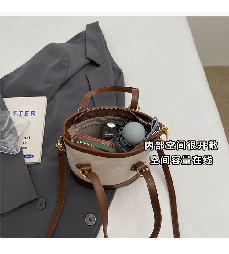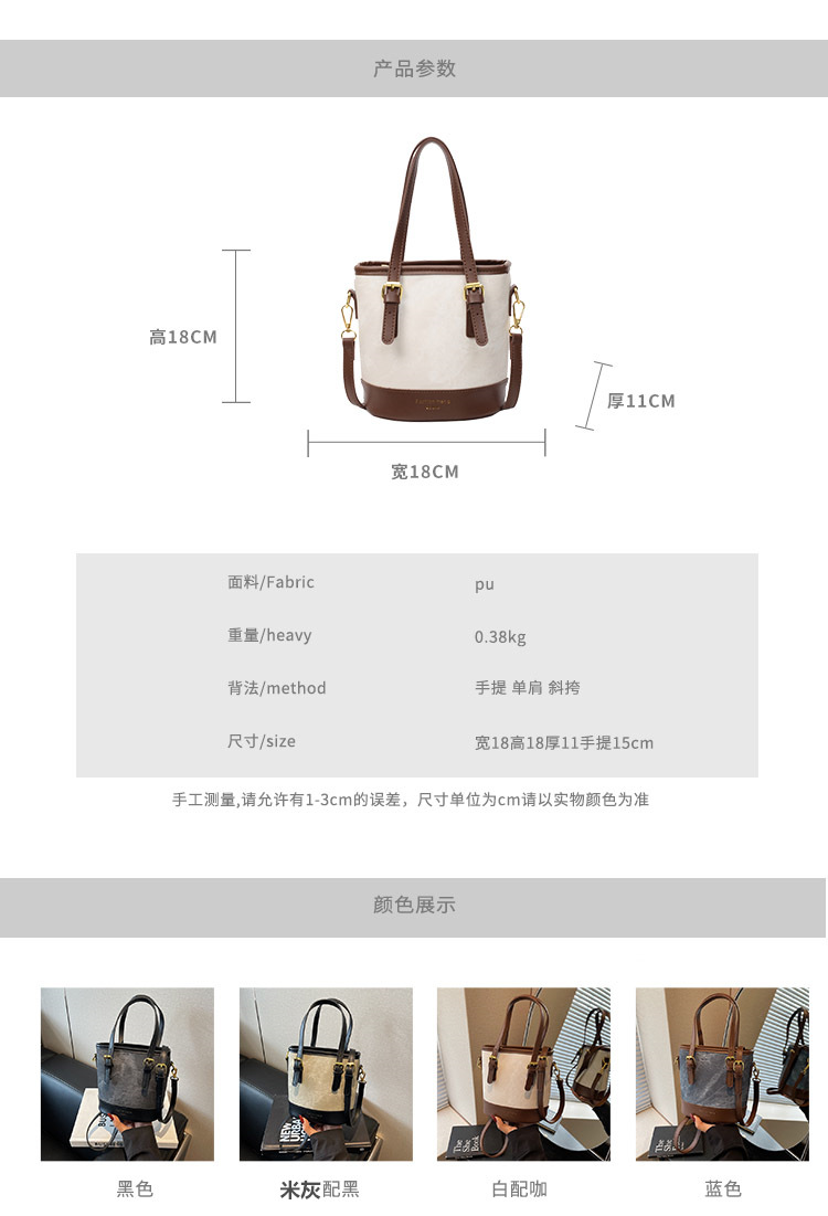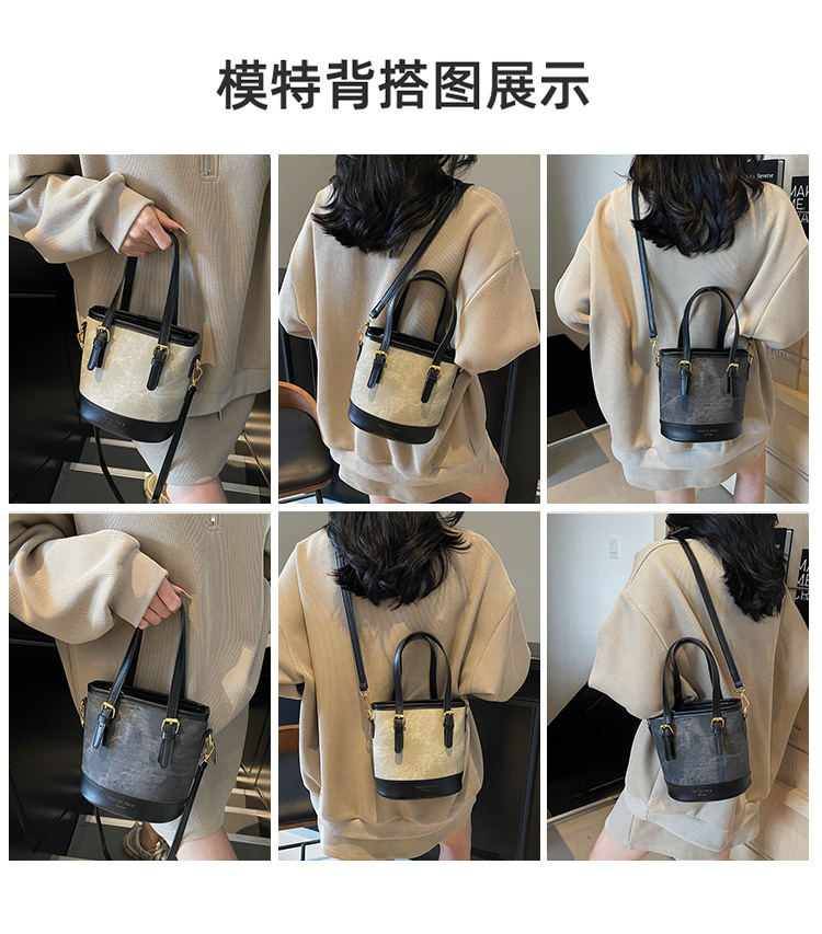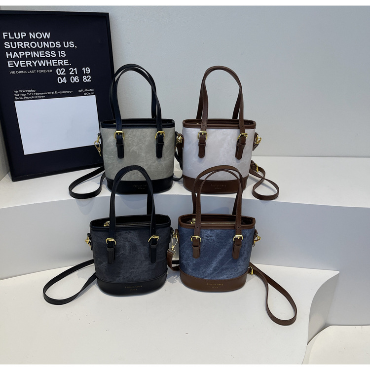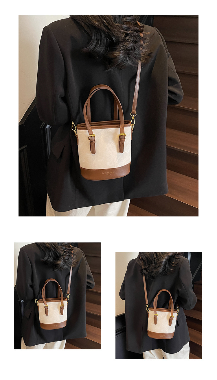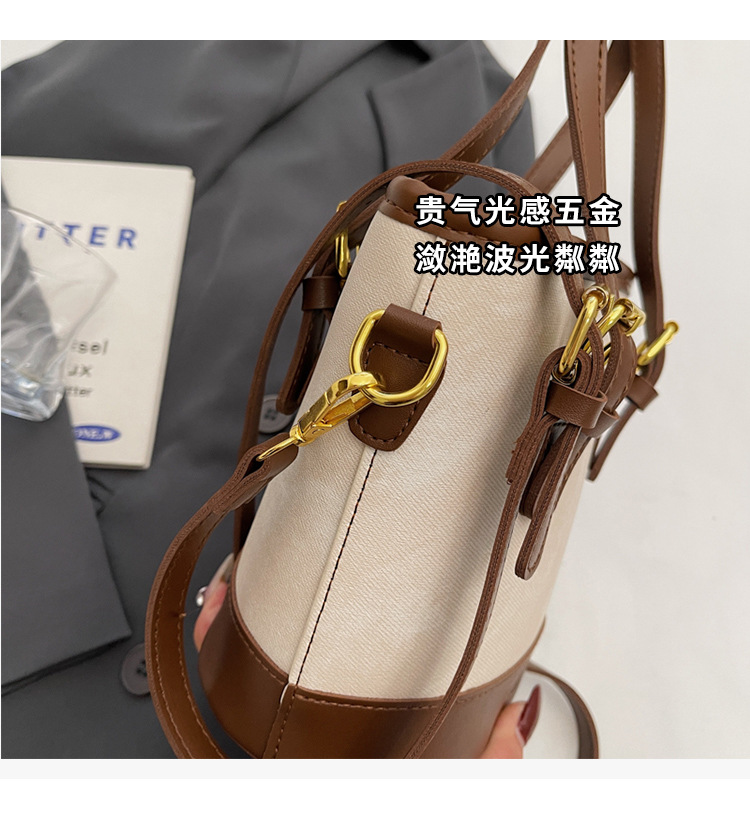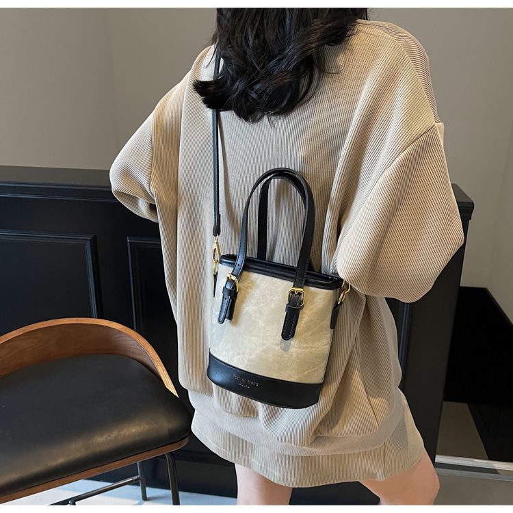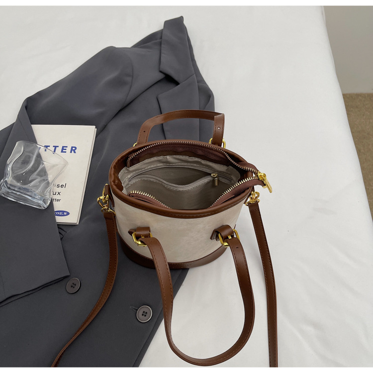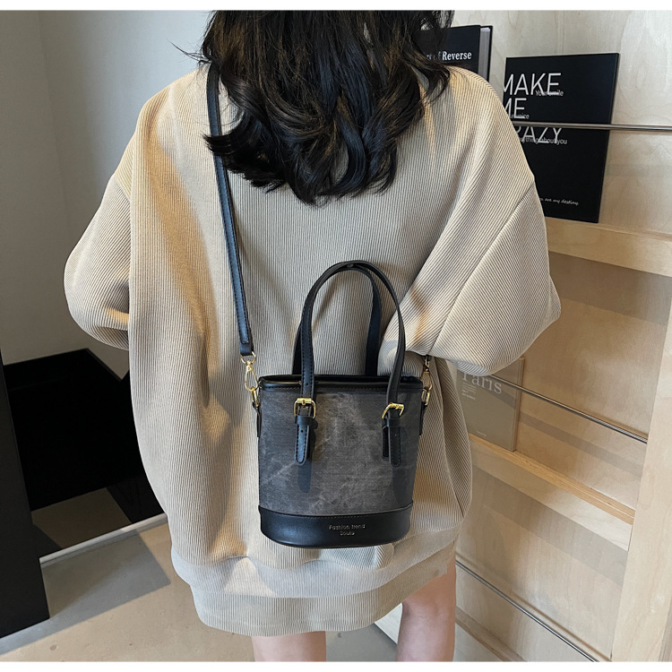 Bolso de mano de color de contraste de comercio exterior para mujer 2025 nuevo bolso de cubo de ocio salvaje simple bolso de mensajero de un solo hombro de alta gama