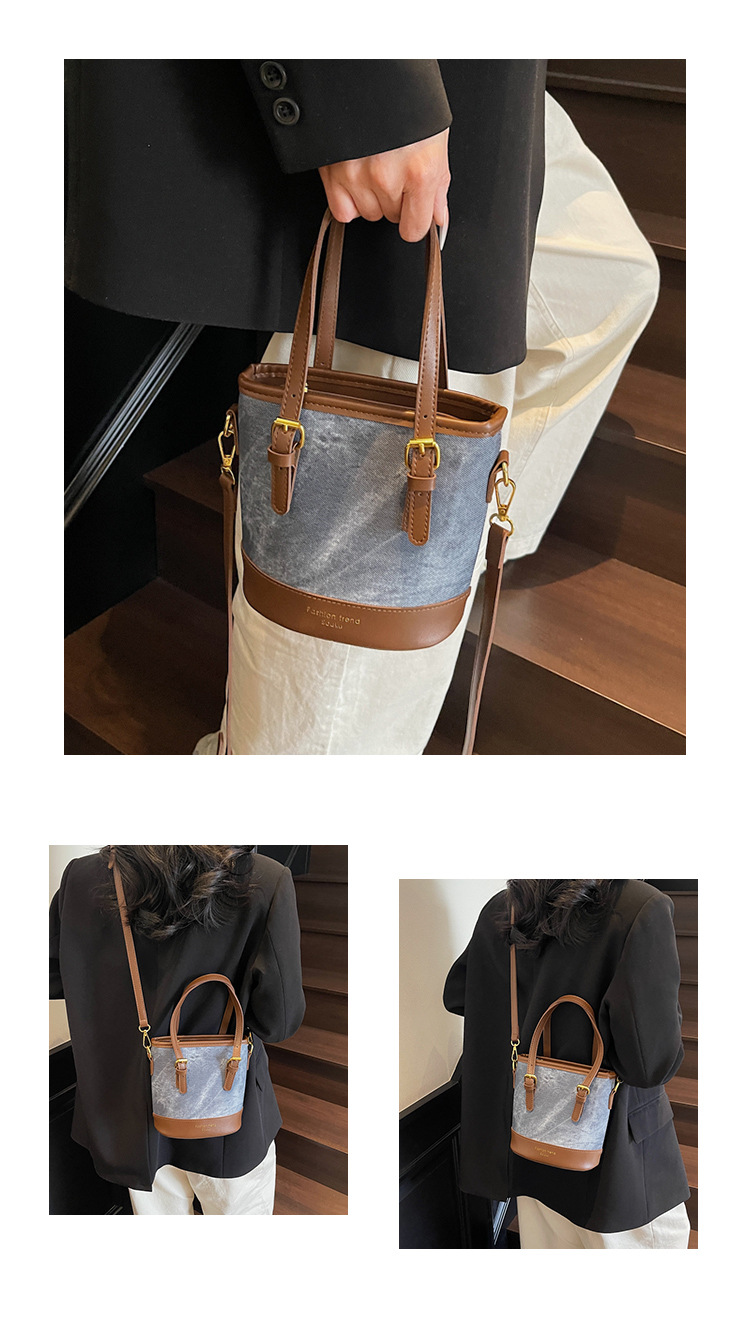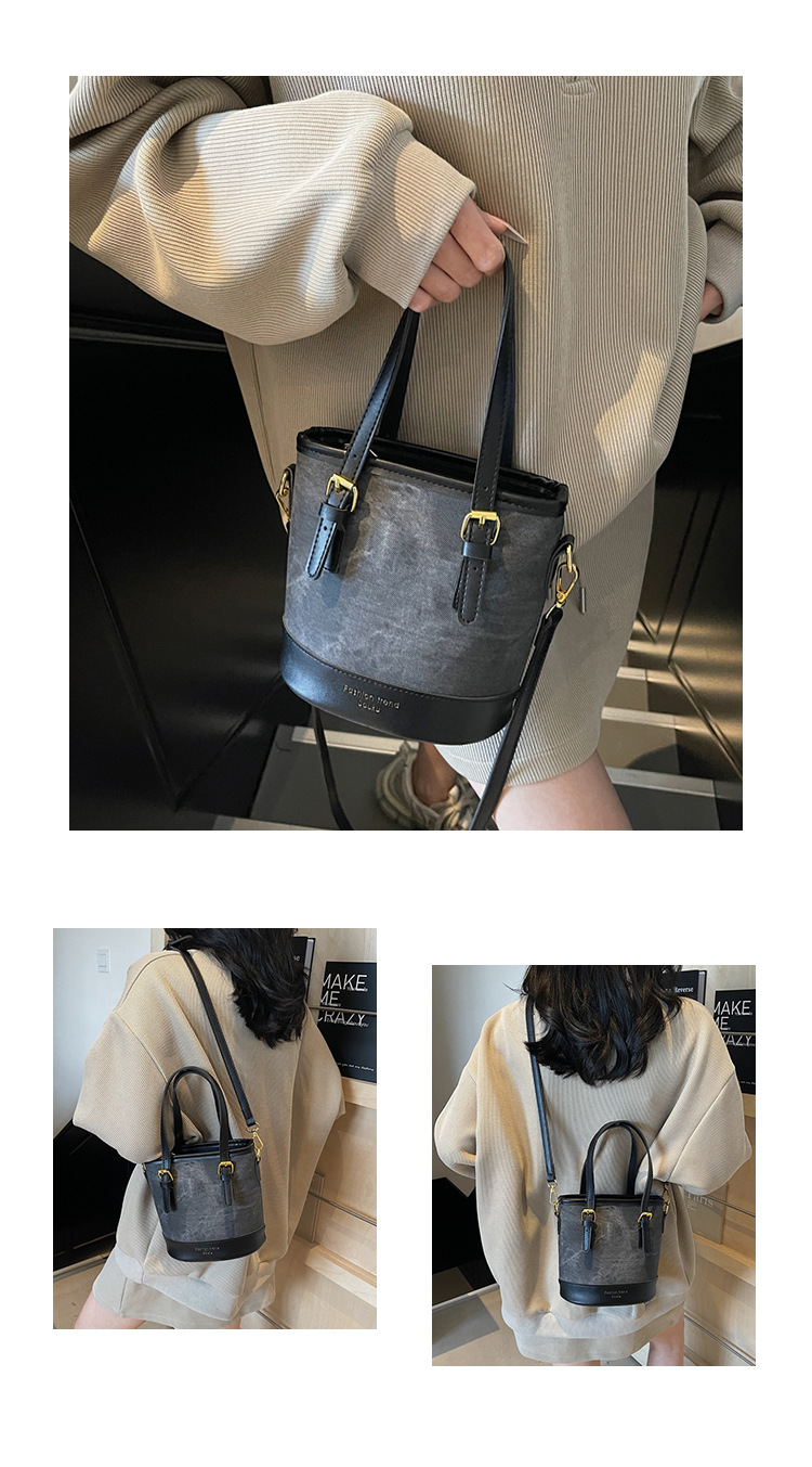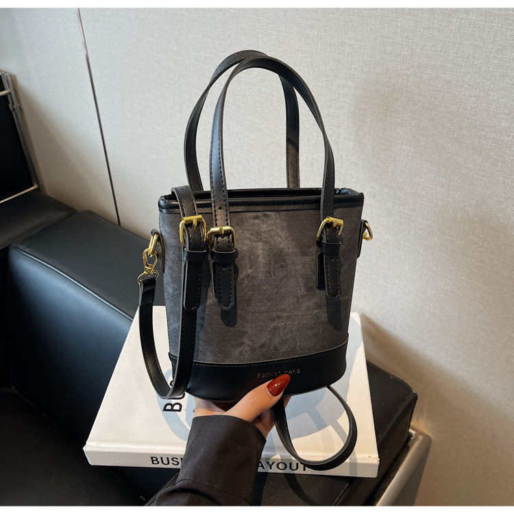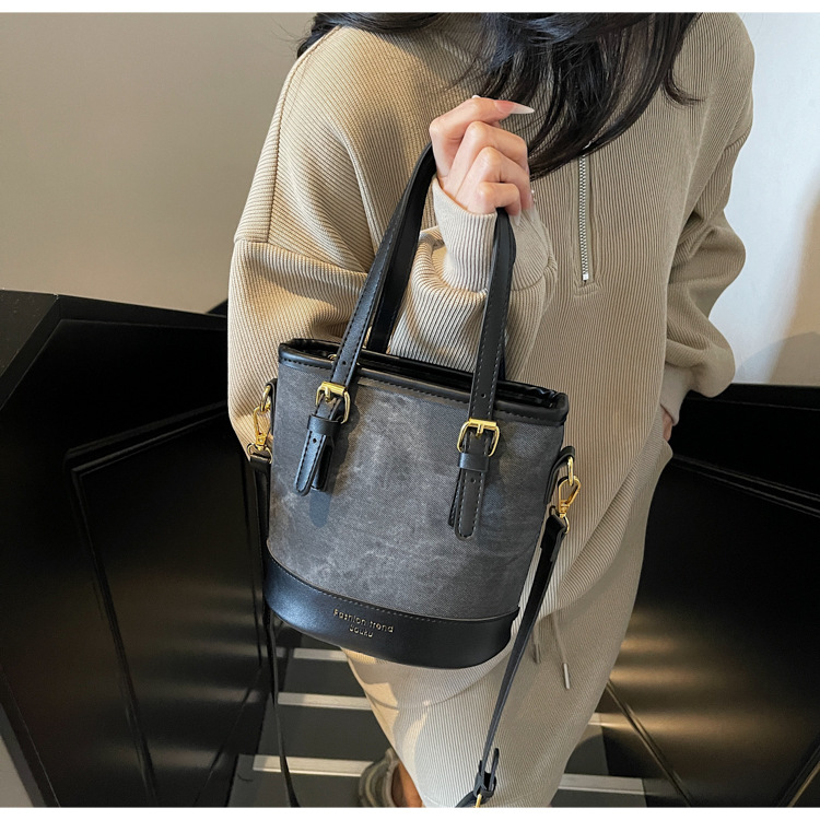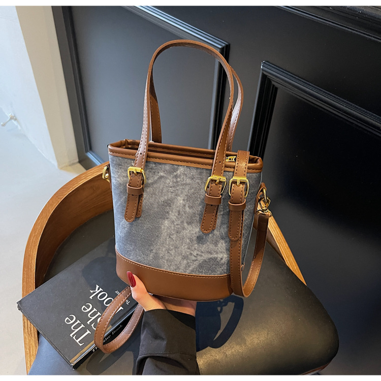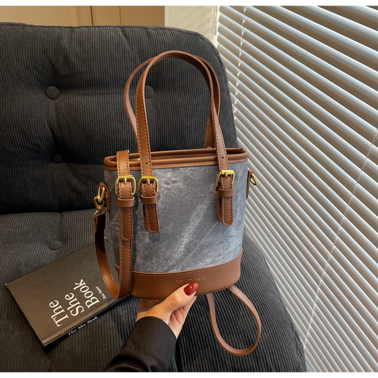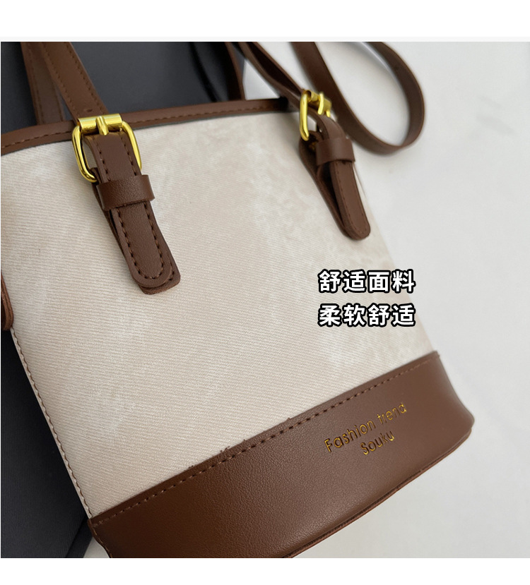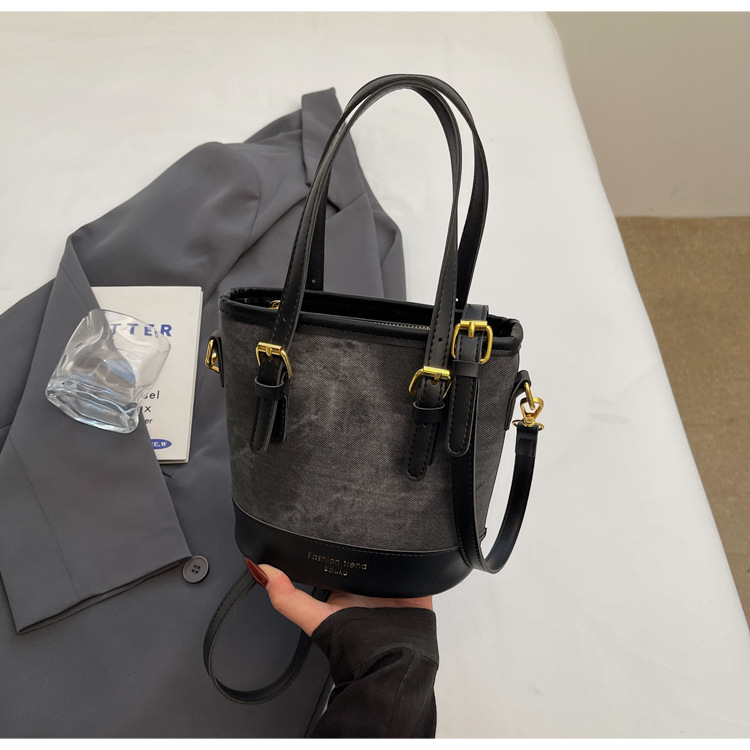 Bolso de mano de color de contraste de comercio exterior para mujer 2025 nuevo bolso de cubo de ocio salvaje simple bolso de mensajero de un solo hombro de alta gama