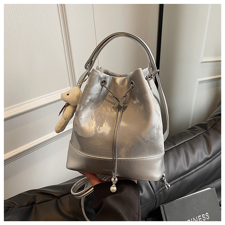 Cross-border 2025 invierno nuevo retro bolso de lona de seda bolso de cubo bolso de hombro de alta calidad para mujeres bolso de transporte