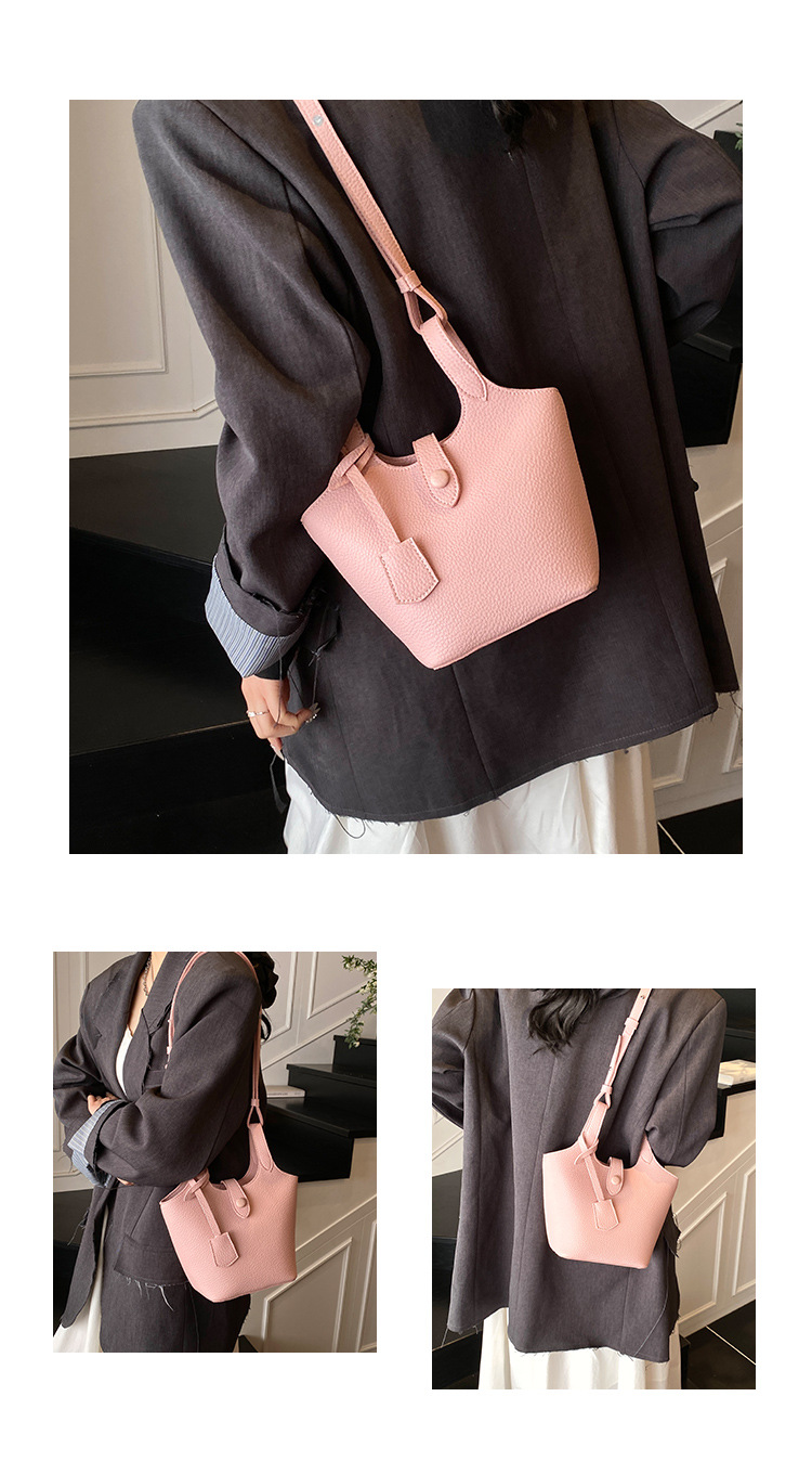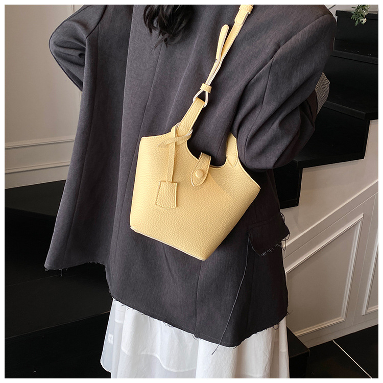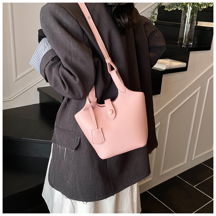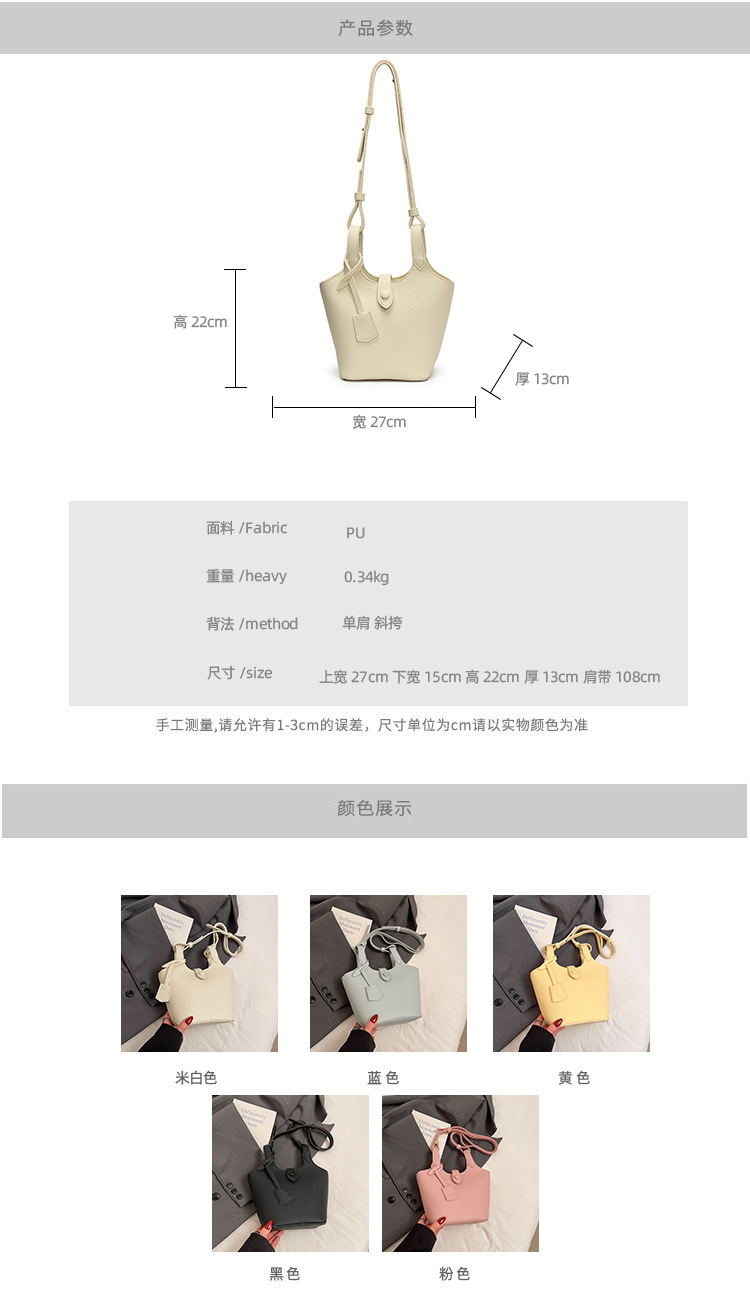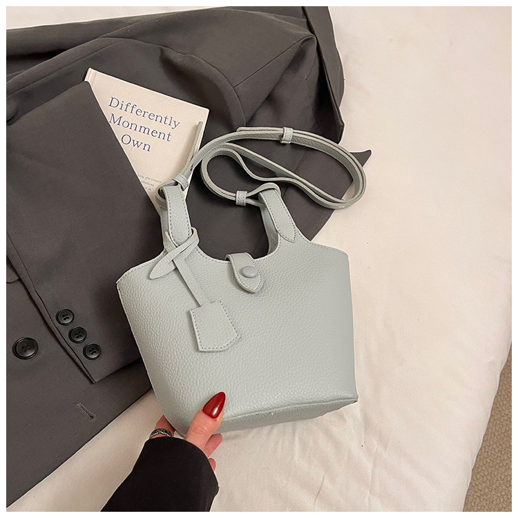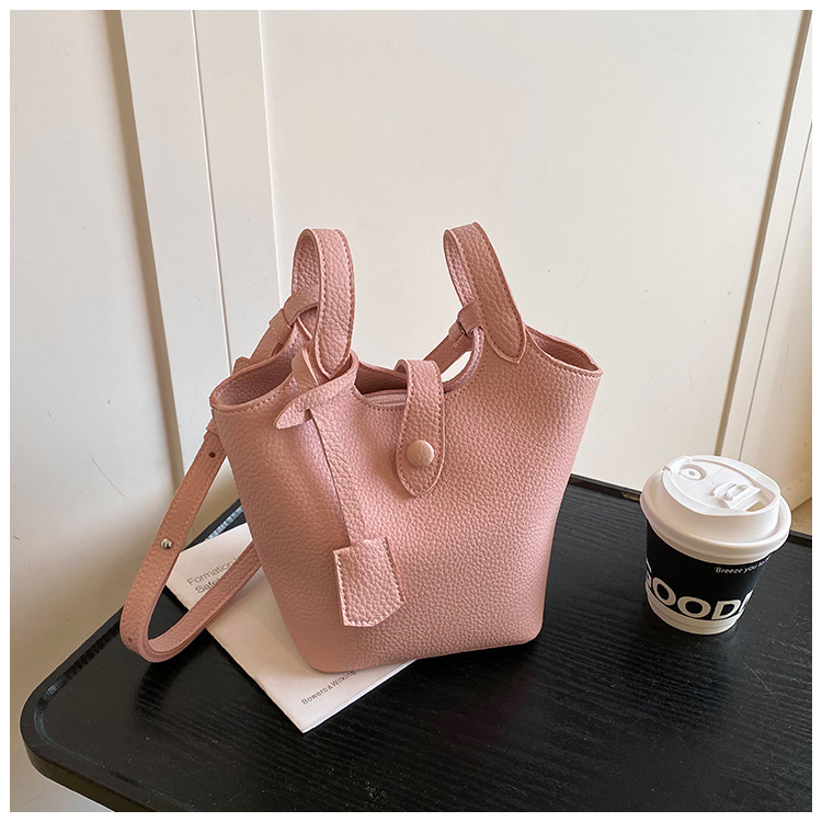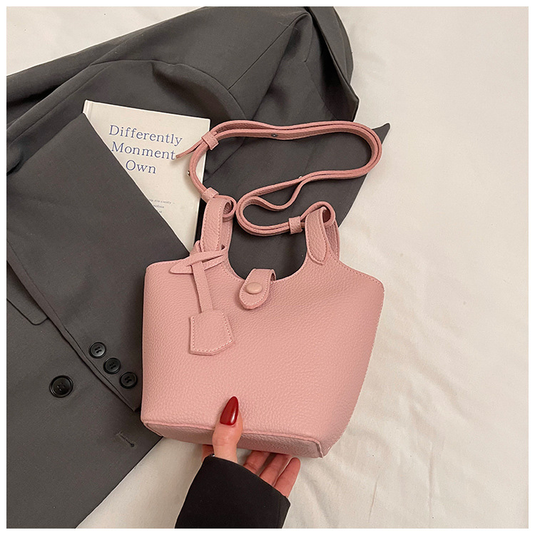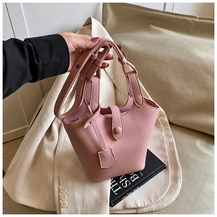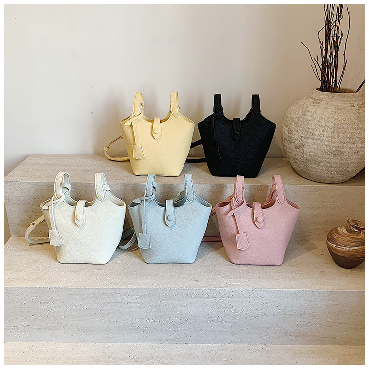 Dulce y lindo bolso de cubo de este año, popular cinturón de cuentas de velcro, exquisito estilo extranjero, bolso de hombro de mujer.