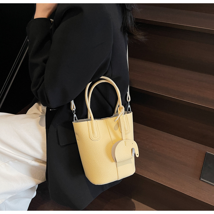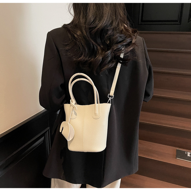 Bolso de cubo de venta caliente de comercio exterior, sentido de alta gama de nicho femenino 2025 nuevo bolso de mano simple y versátil, bolso de mensajero de moda y versátil