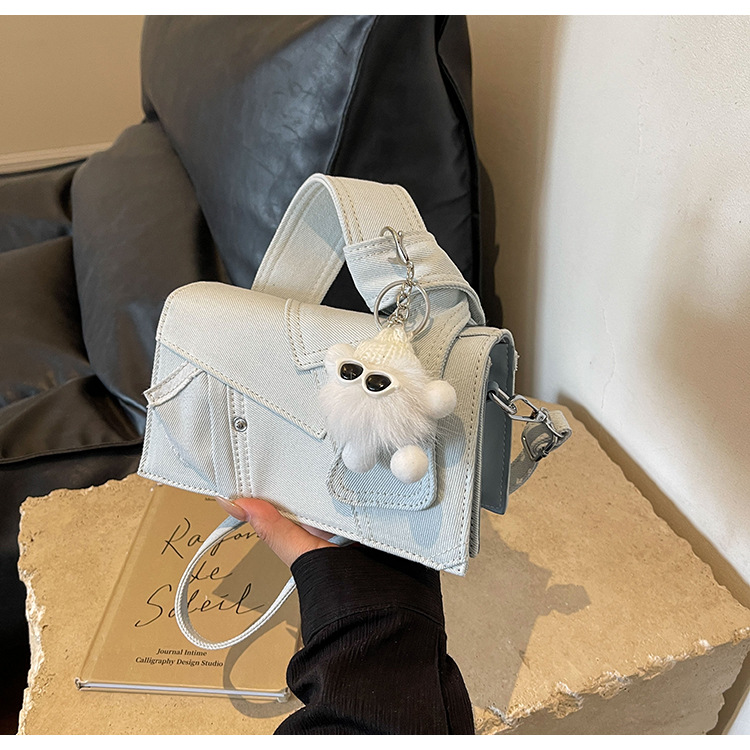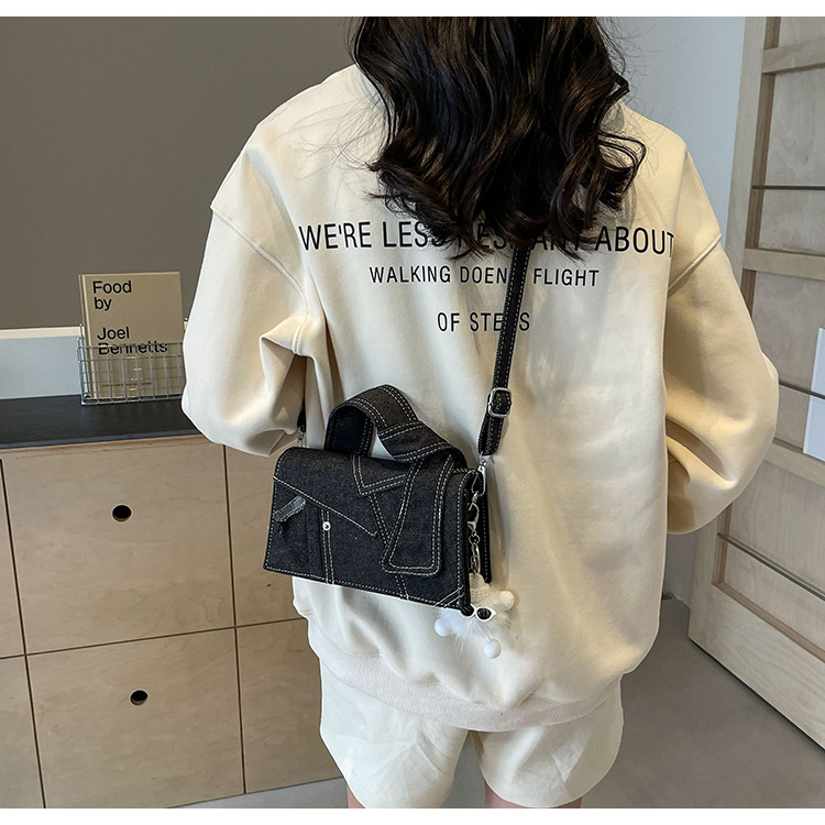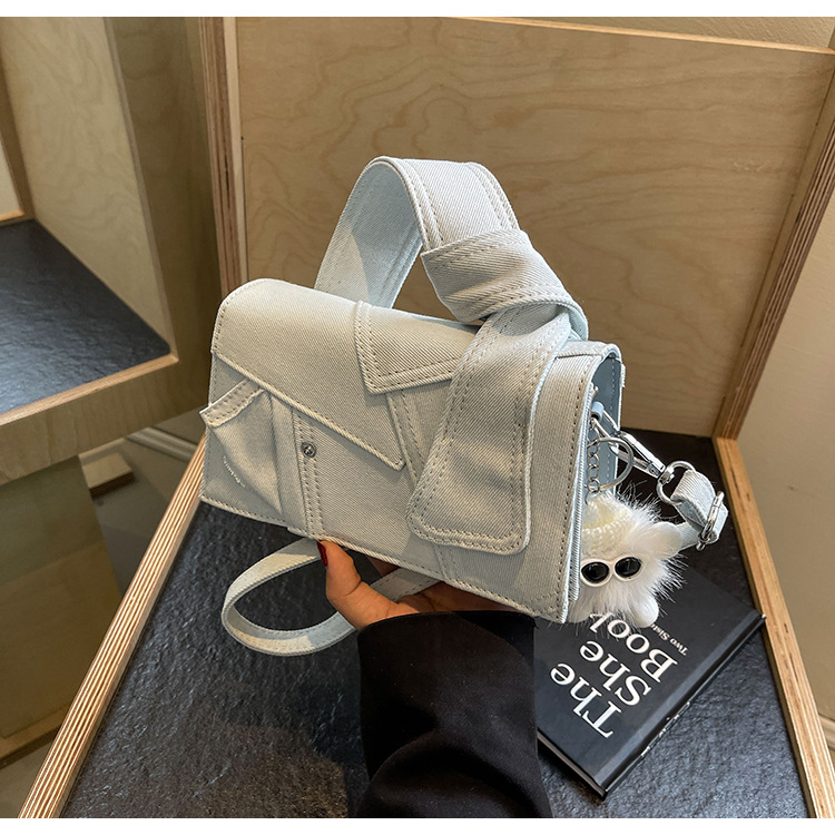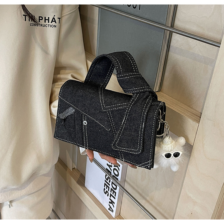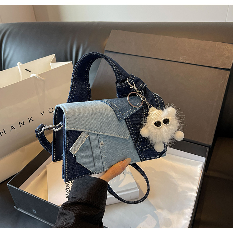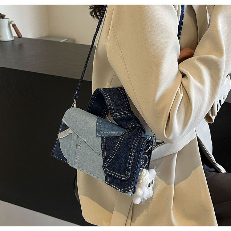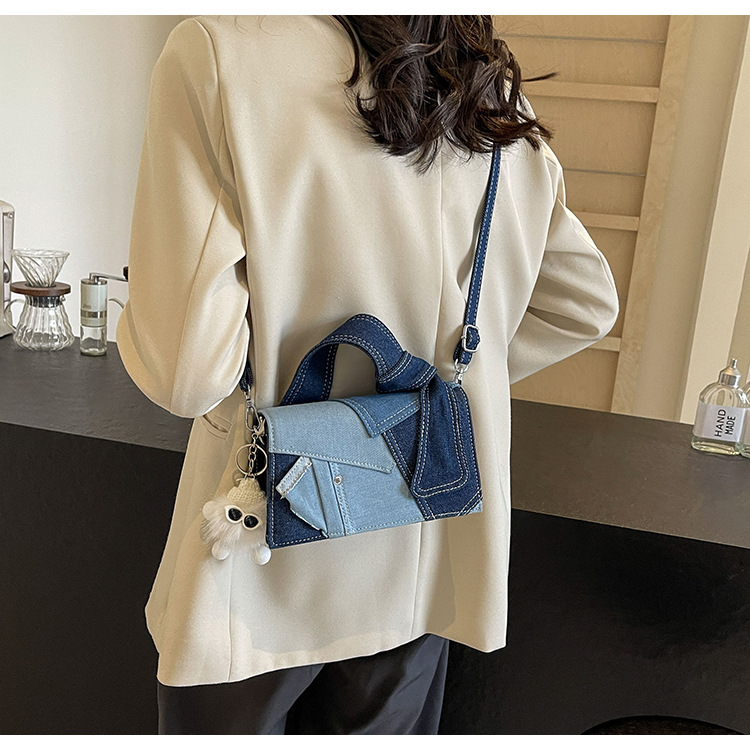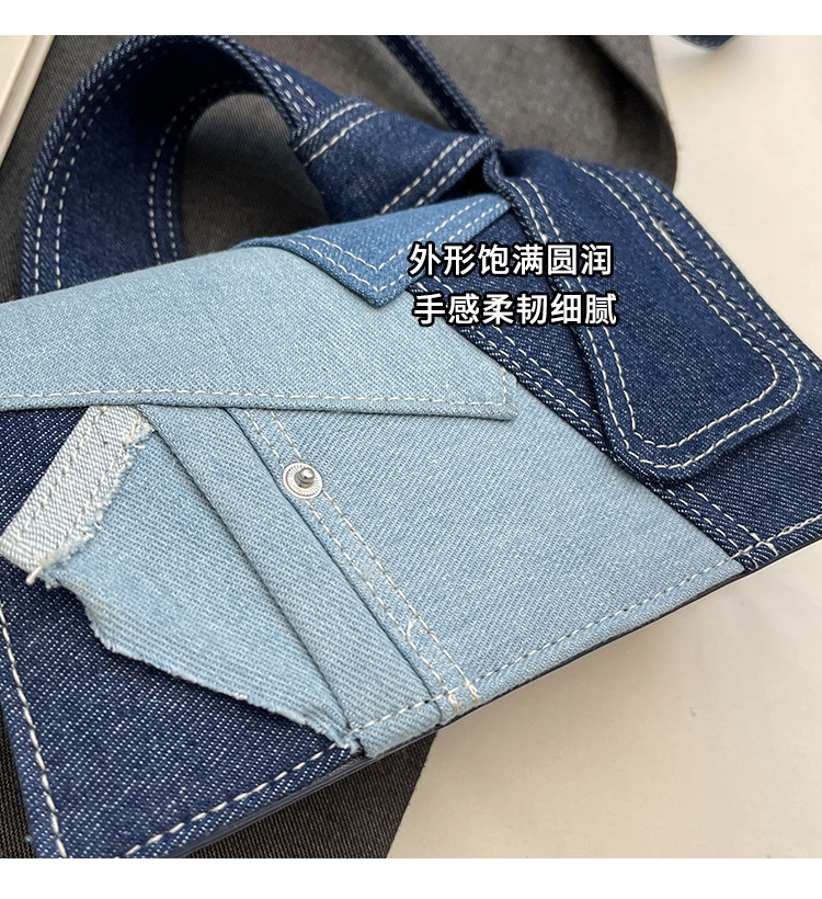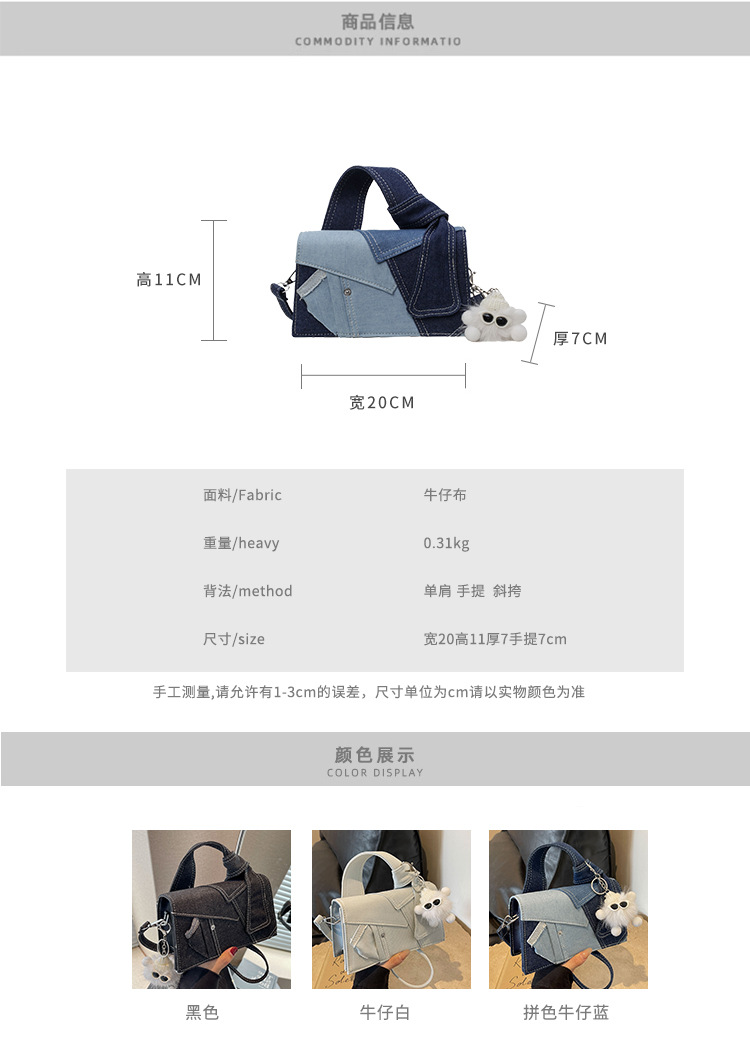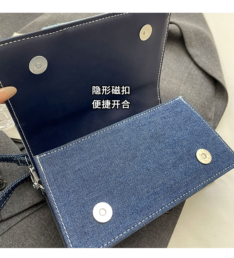 Bolso cuadrado pequeño de mezclilla popular de este año para mujer 2025 nuevo bolso de hombro de mano de color de contraste de todo fósforo bolso de mensajero de sentido avanzado