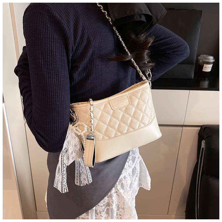2025 nuevo estilo pequeño fragante bolso de alta gama bolso Lingge bolso de mensajero de un solo hombro de cadena de nicho de moda de todos los partidos