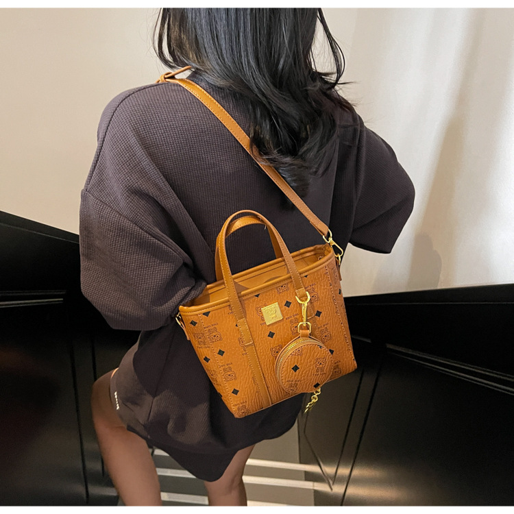 Bolsa de cubo portátil de impresión de moda super caliente para mujeres 2025, nuevo bolso de hombro de nicho universal, bolso de cinturón en línea.