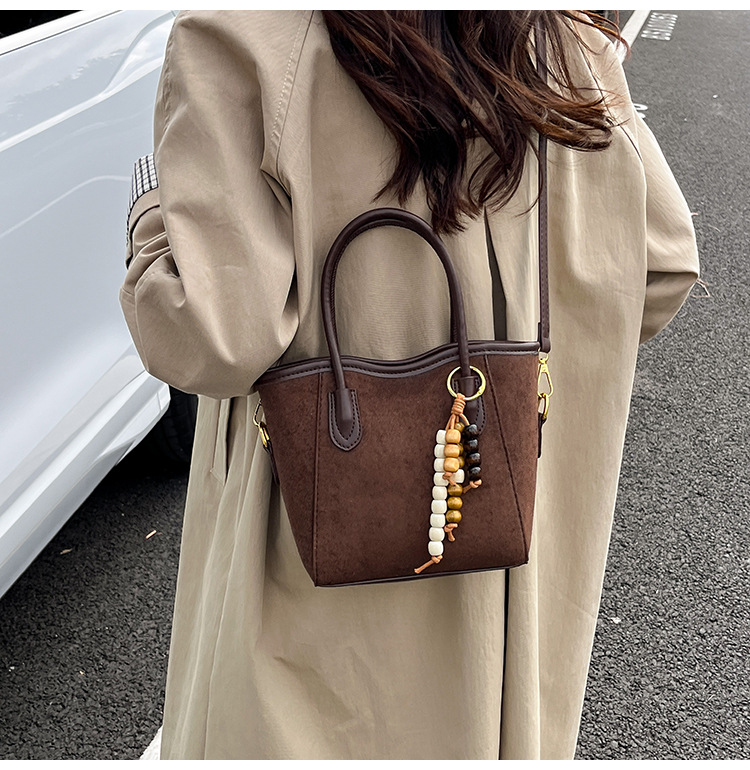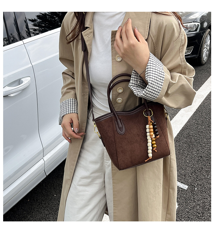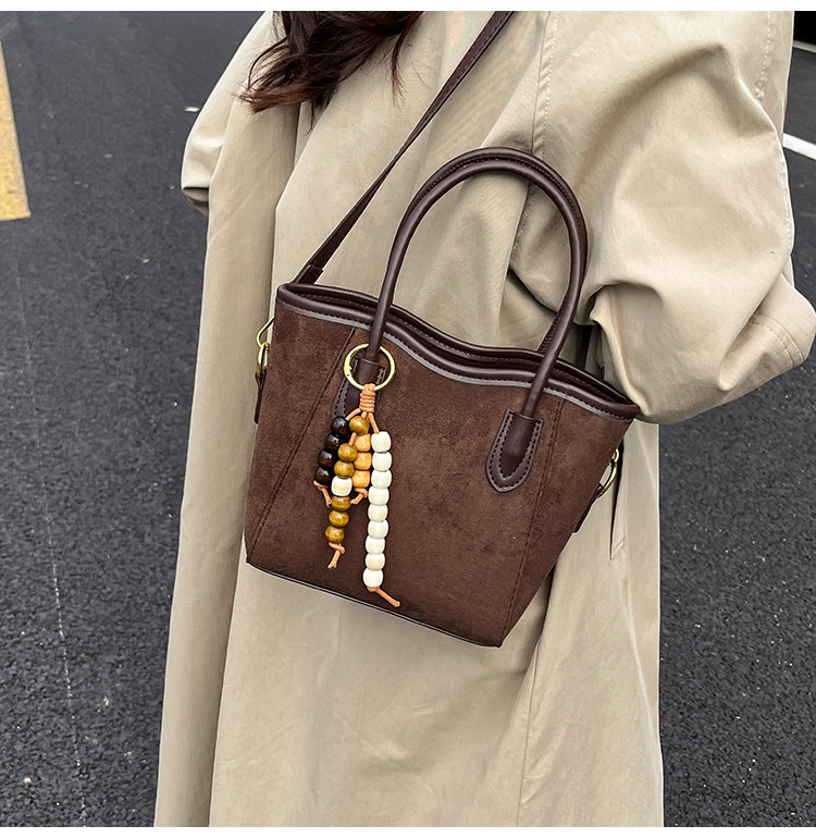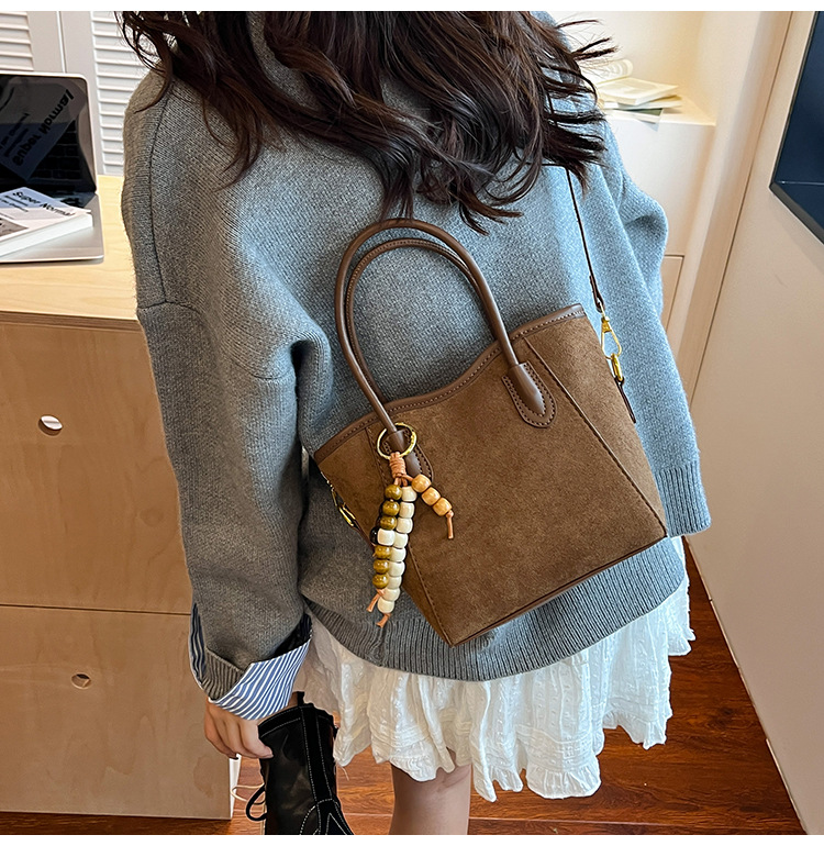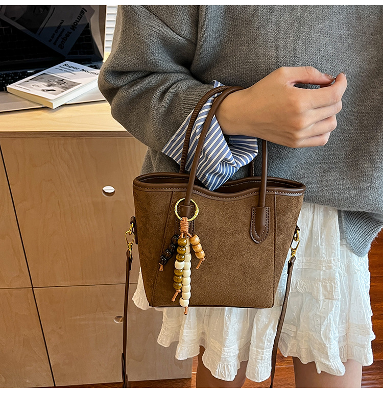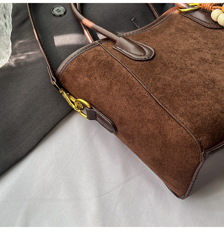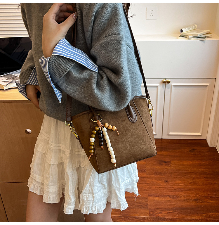 Otoño y invierno popular nicho bolso de brazo para mujeres 2025 nuevo bolso de cubo de gamuz estilo coreano retro bolso de hombro
