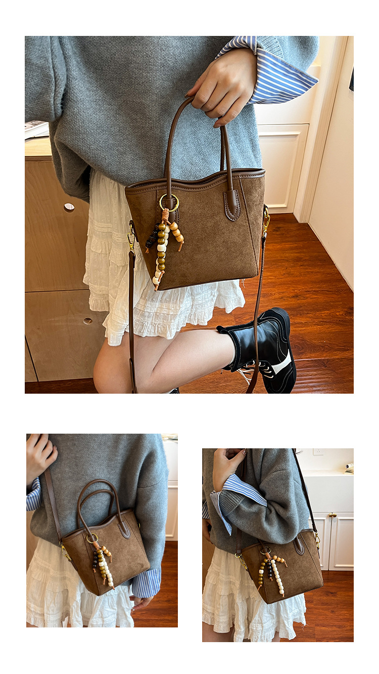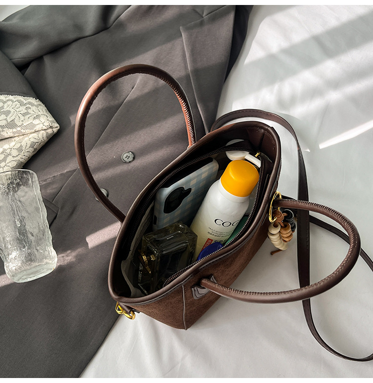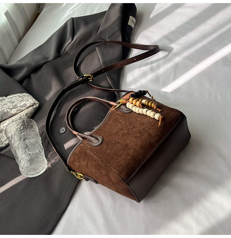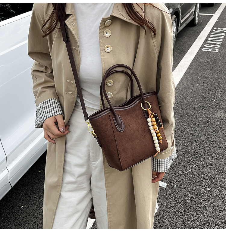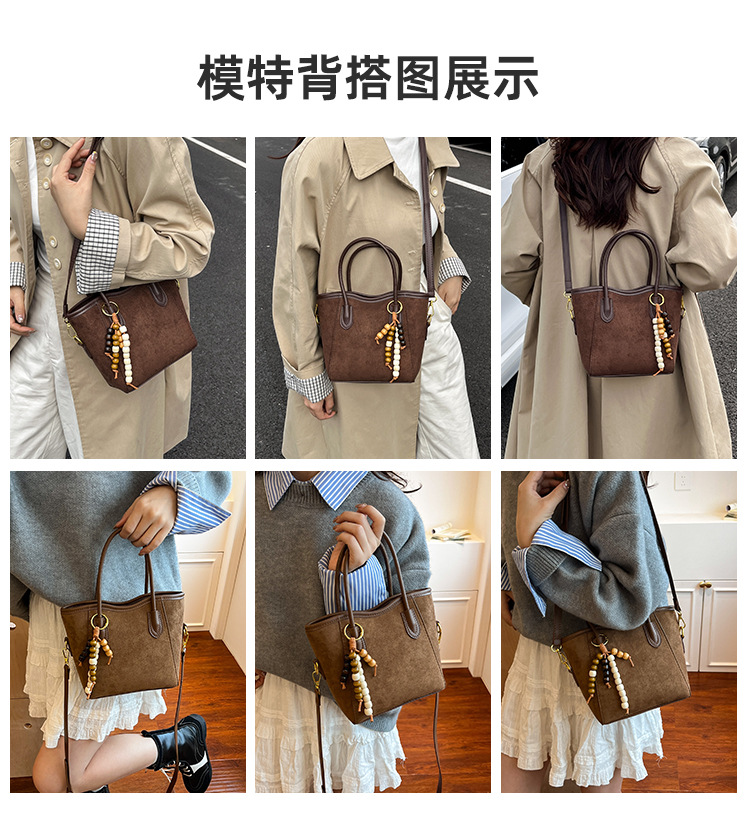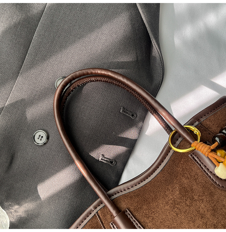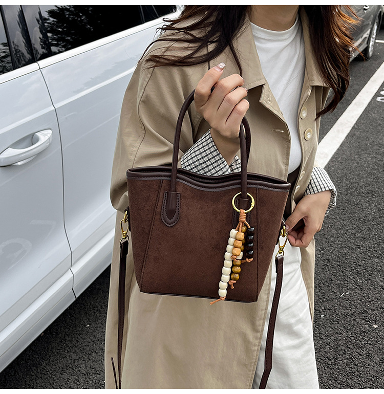 Otoño y invierno popular nicho bolso de brazo para mujeres 2025 nuevo bolso de cubo de gamuz estilo coreano retro bolso de hombro