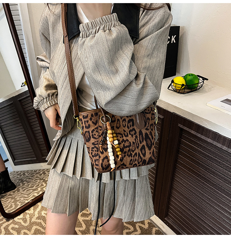 Bolso de mano de estilo occidental de alta gama para mujer 2024 nuevo bolso de cubo de agua de fuego súper popular bolso de mensajero retro de tendencia salvaje