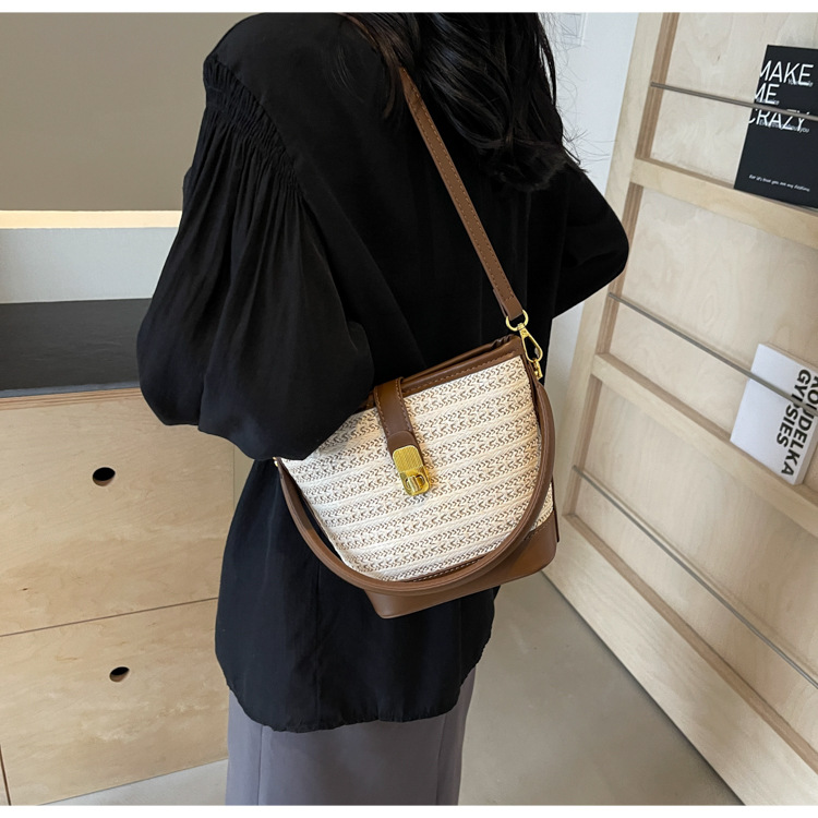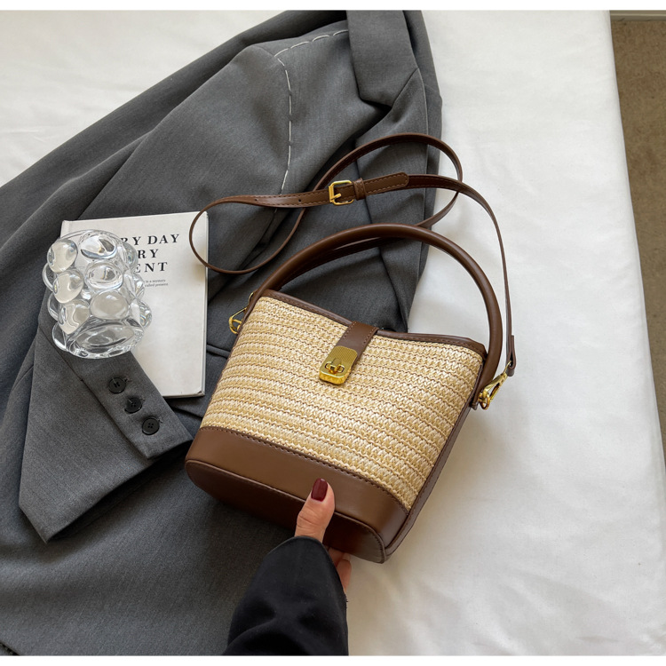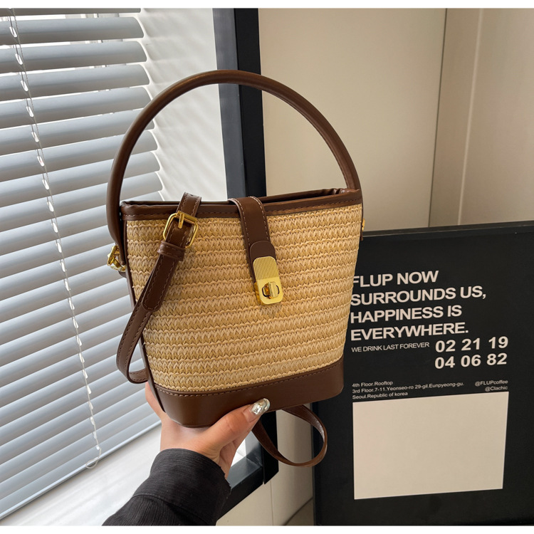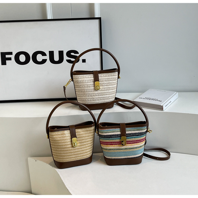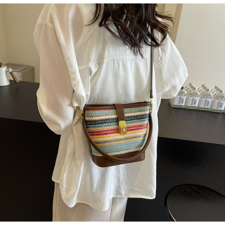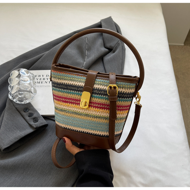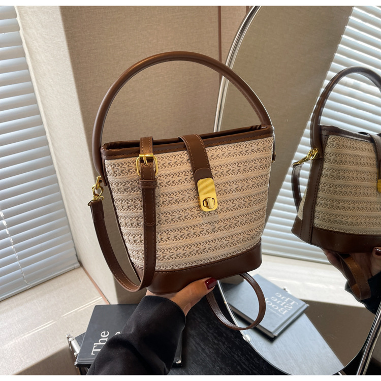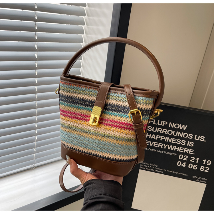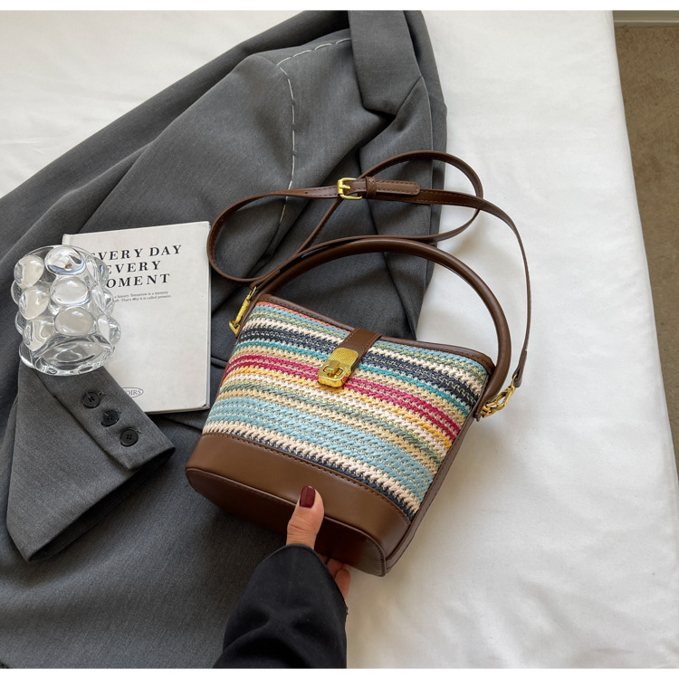 Verano popular bolso de cubo de mano super caliente para mujeres 2025 nuevo estilo de moda simple tejido de alta sensación de hombro mochila