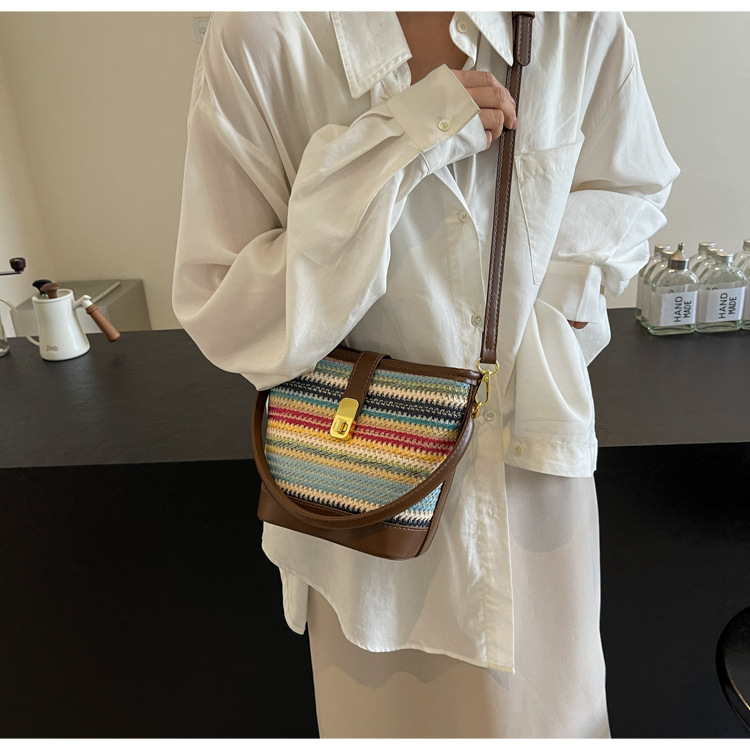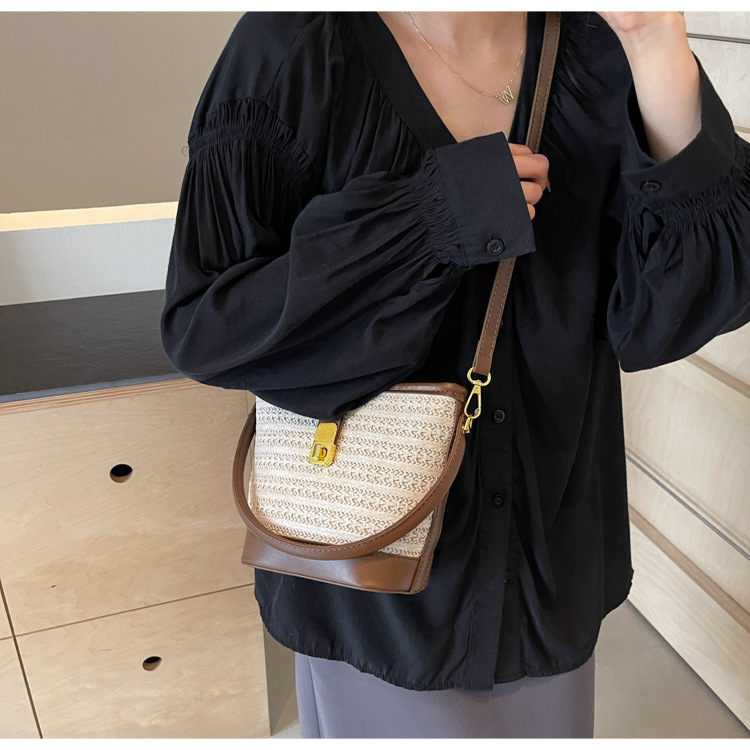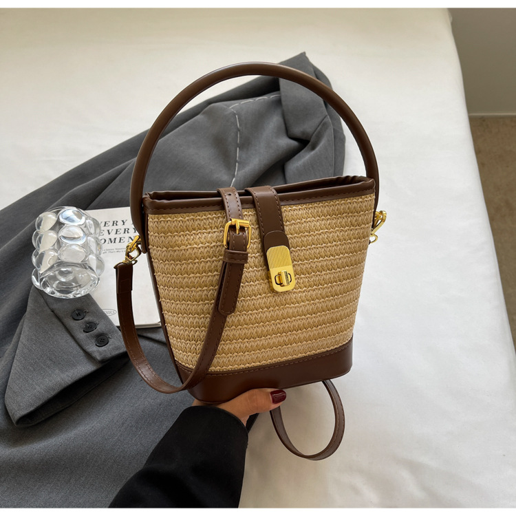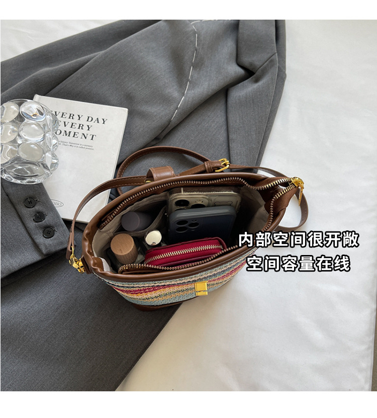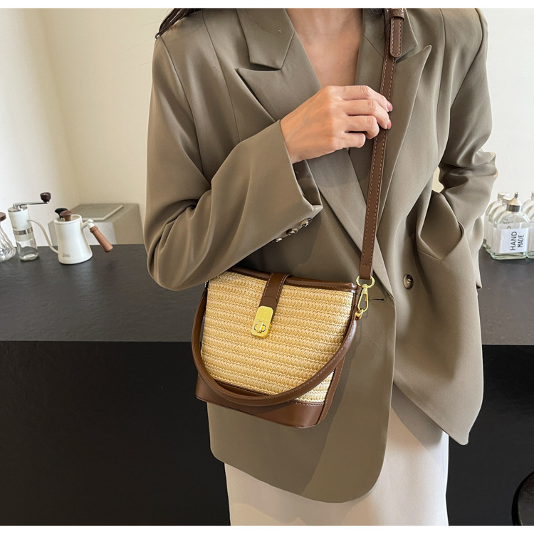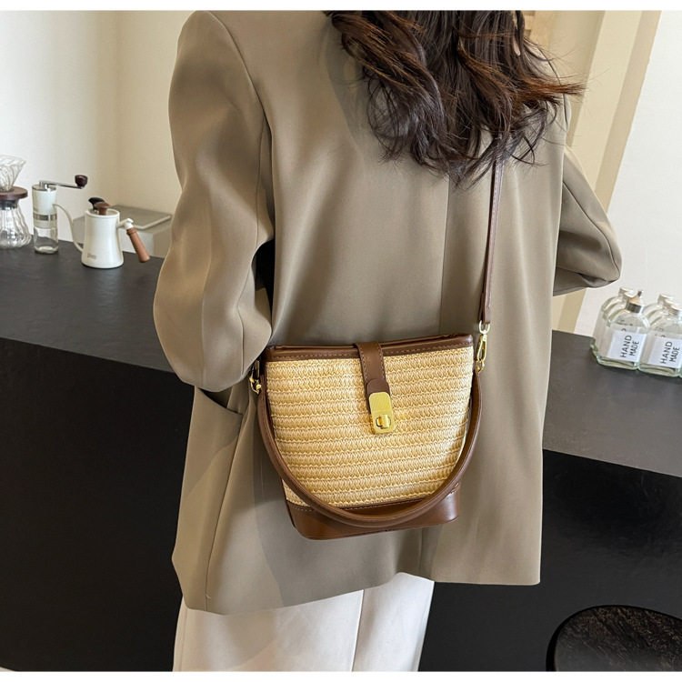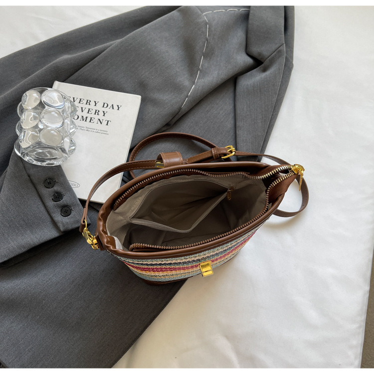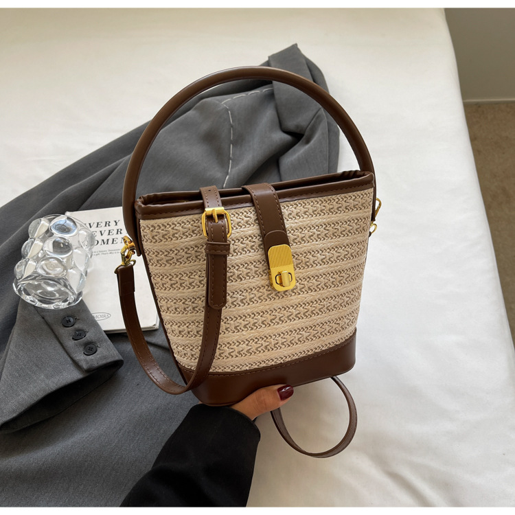 Verano popular bolso de cubo de mano super caliente para mujeres 2025 nuevo estilo de moda simple tejido de alta sensación de hombro mochila