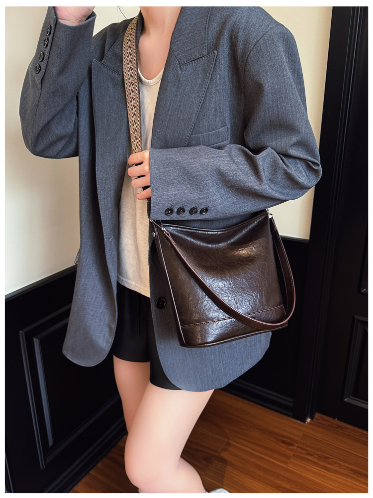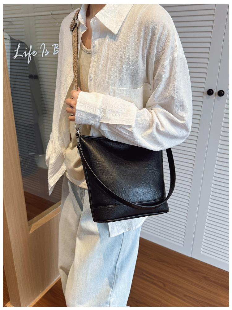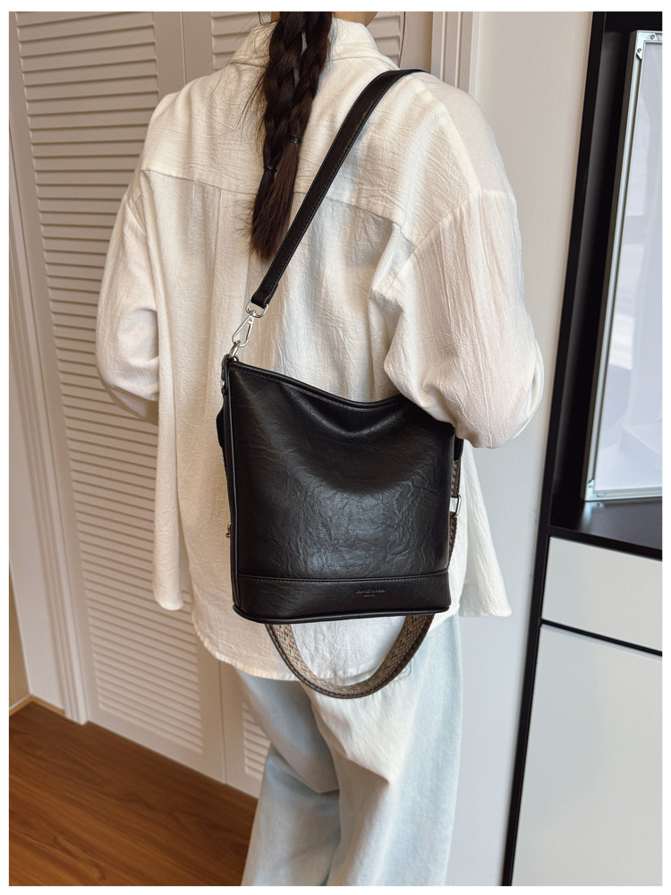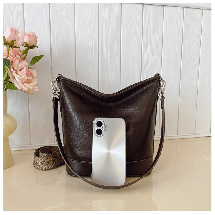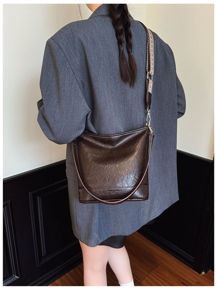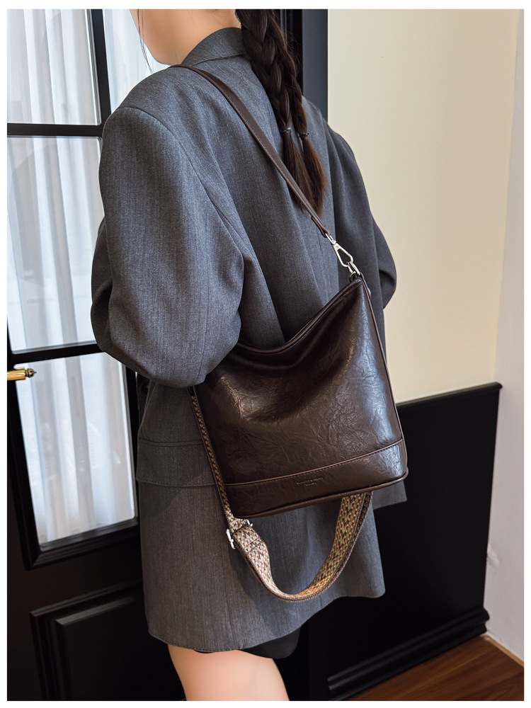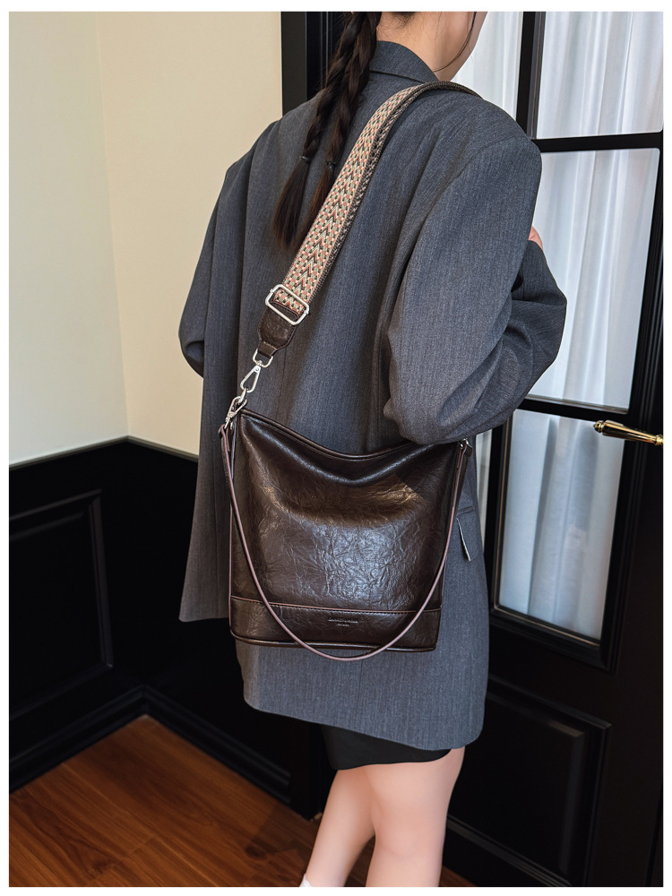 Bolsa de cubo de gran capacidad de cara suave coreana para mujeres otoño / invierno 2025, nueva moda simple bolso de hombro retro bolso de mochila