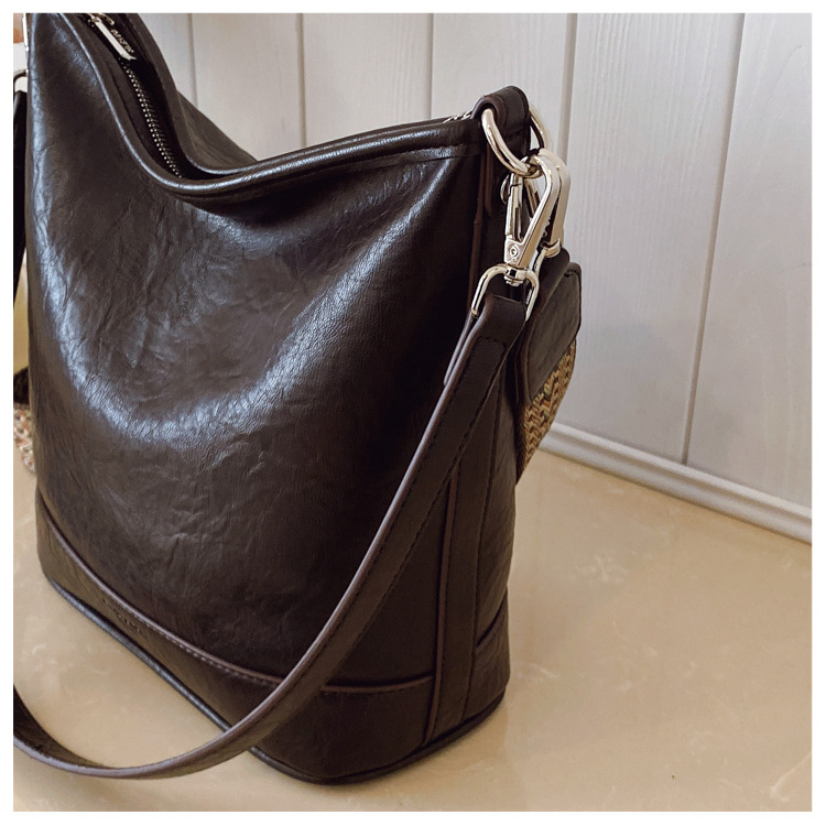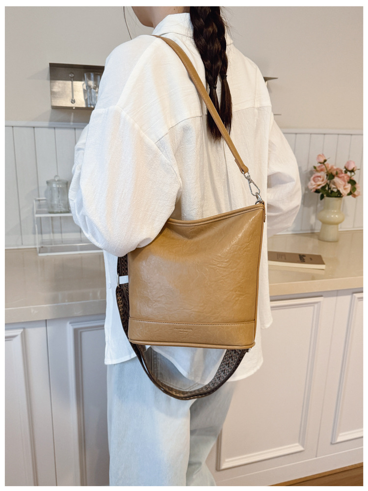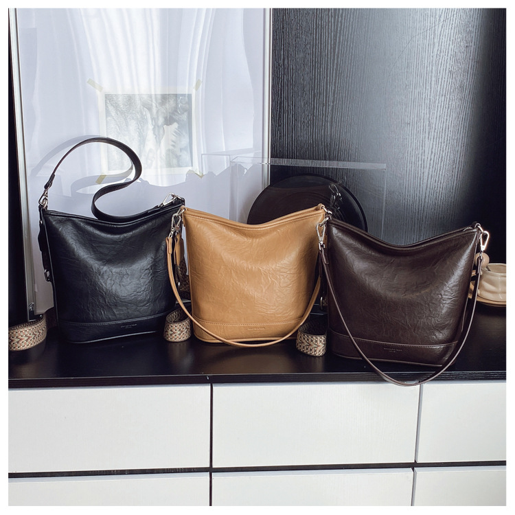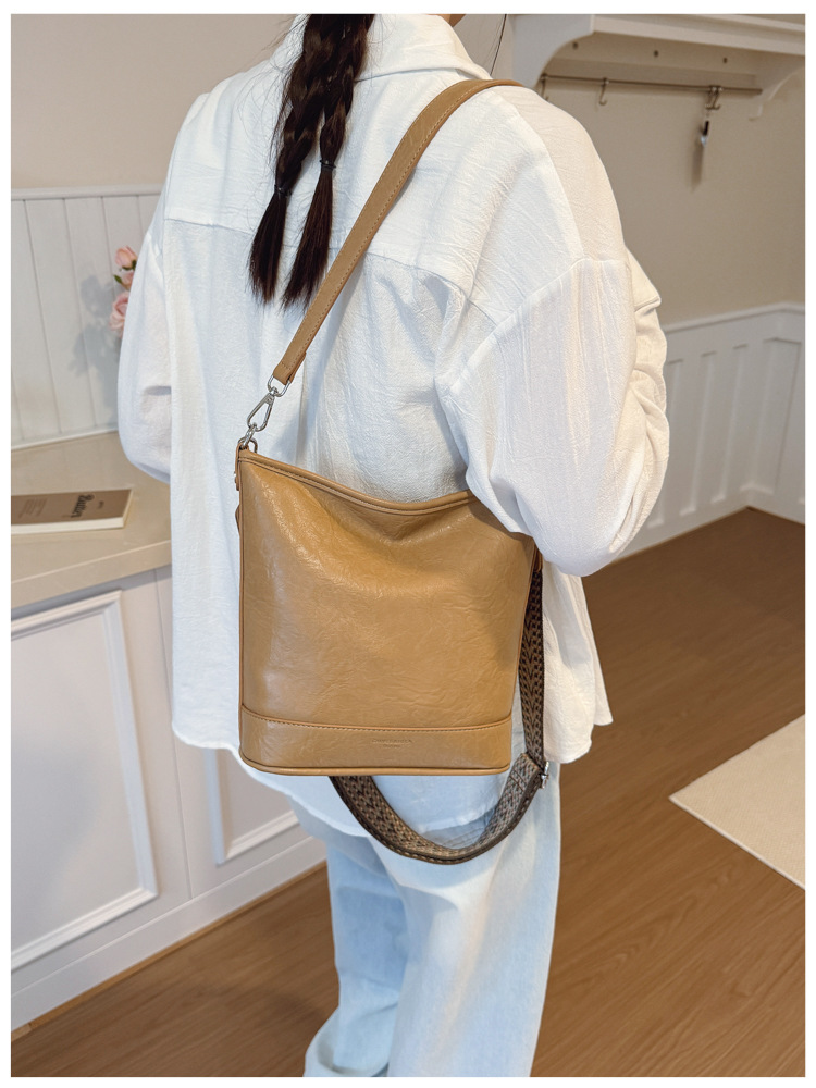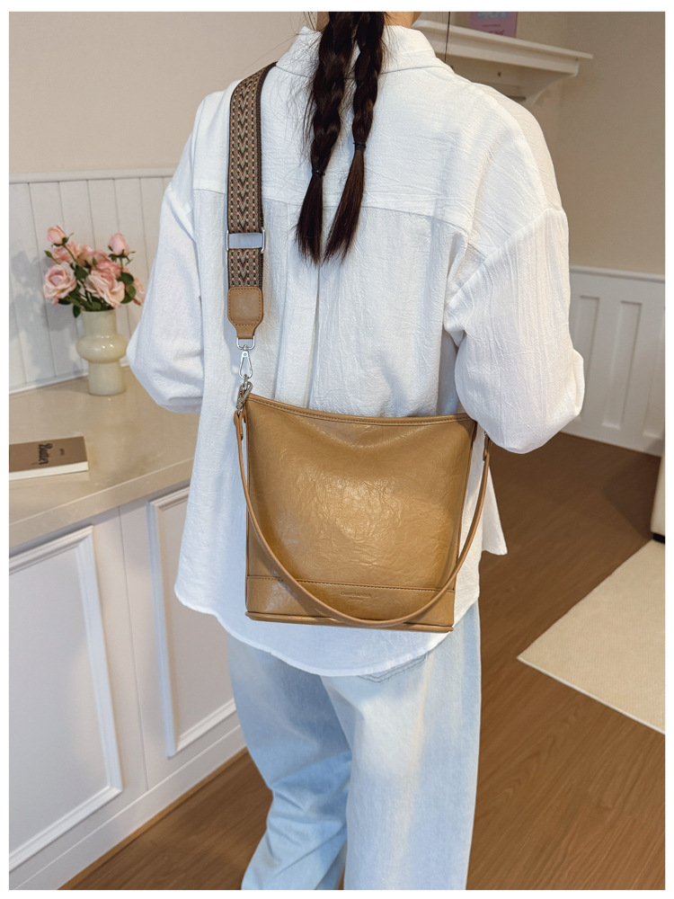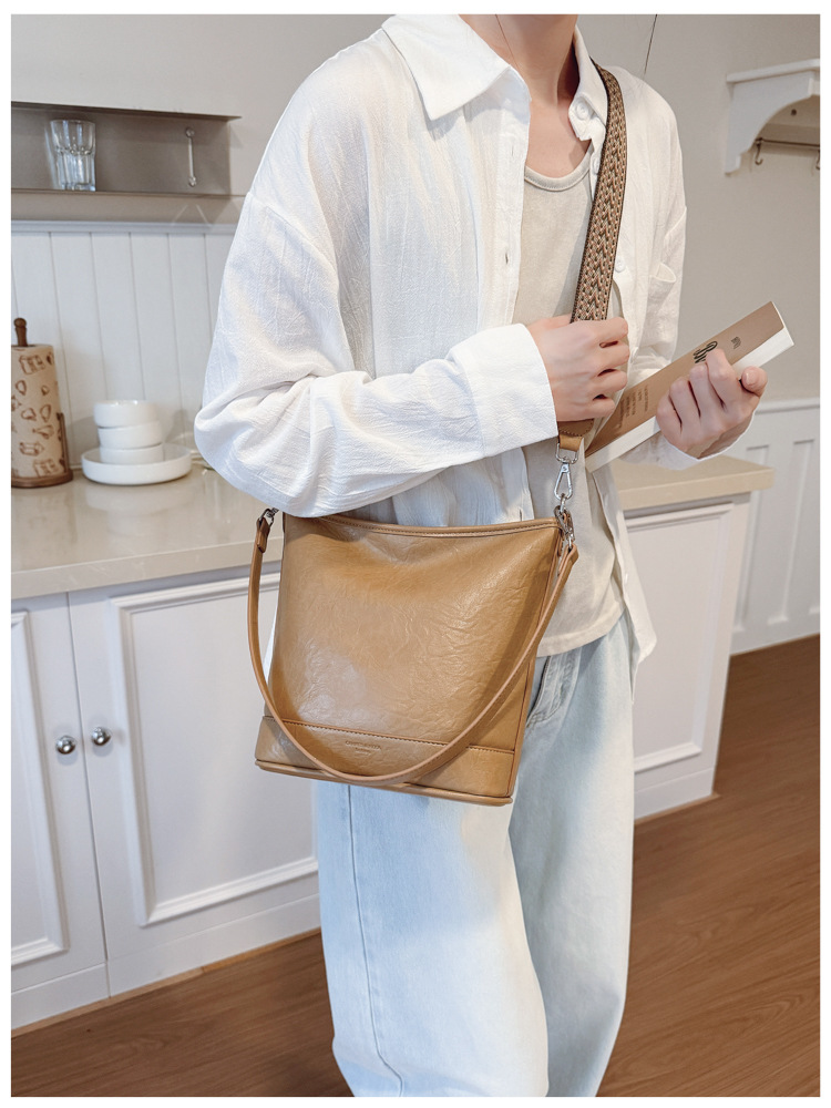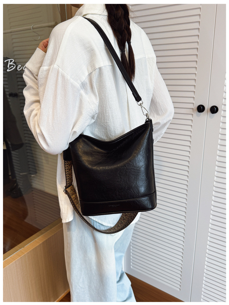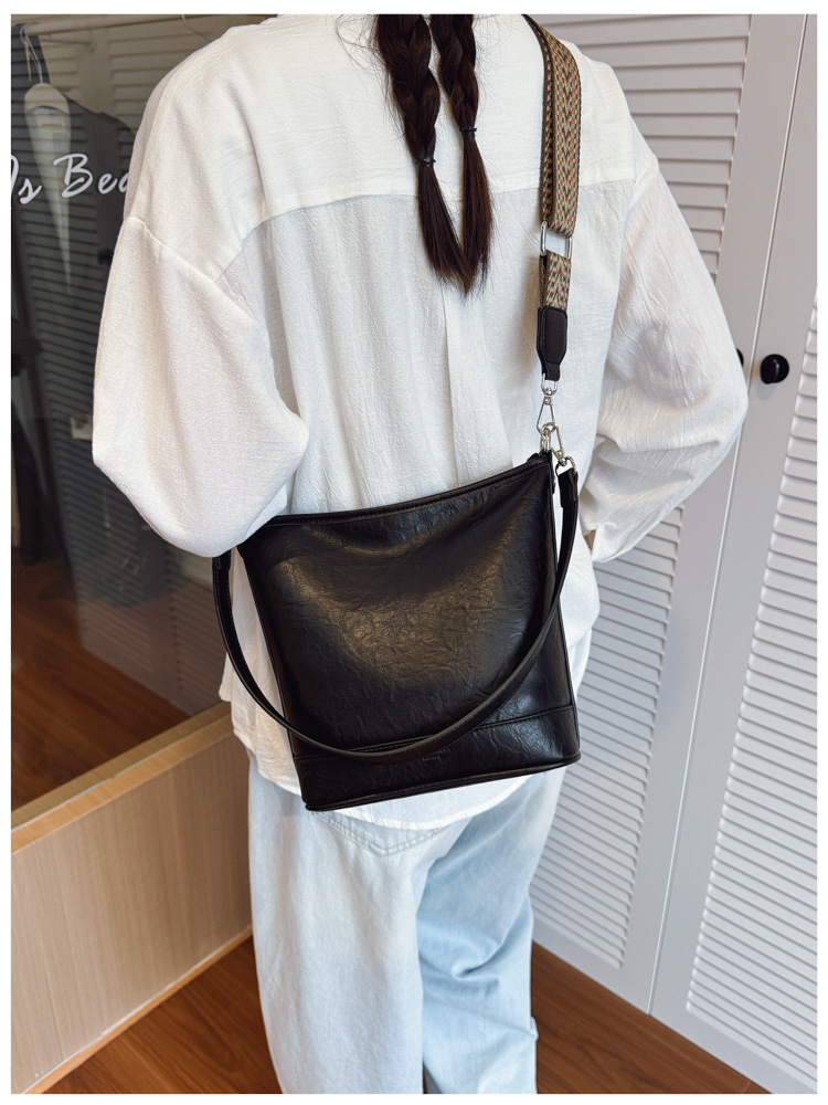 Bolsa de cubo de gran capacidad de cara suave coreana para mujeres otoño / invierno 2025, nueva moda simple bolso de hombro retro bolso de mochila