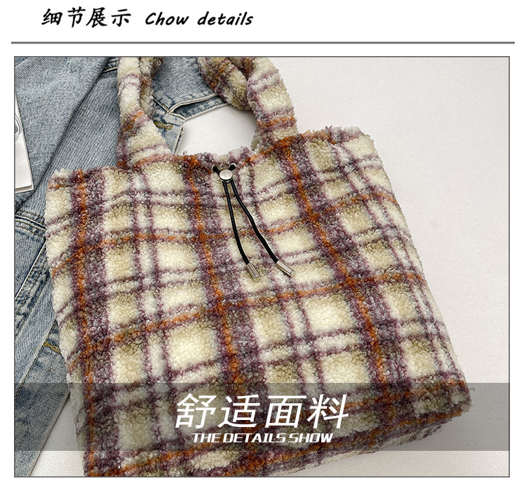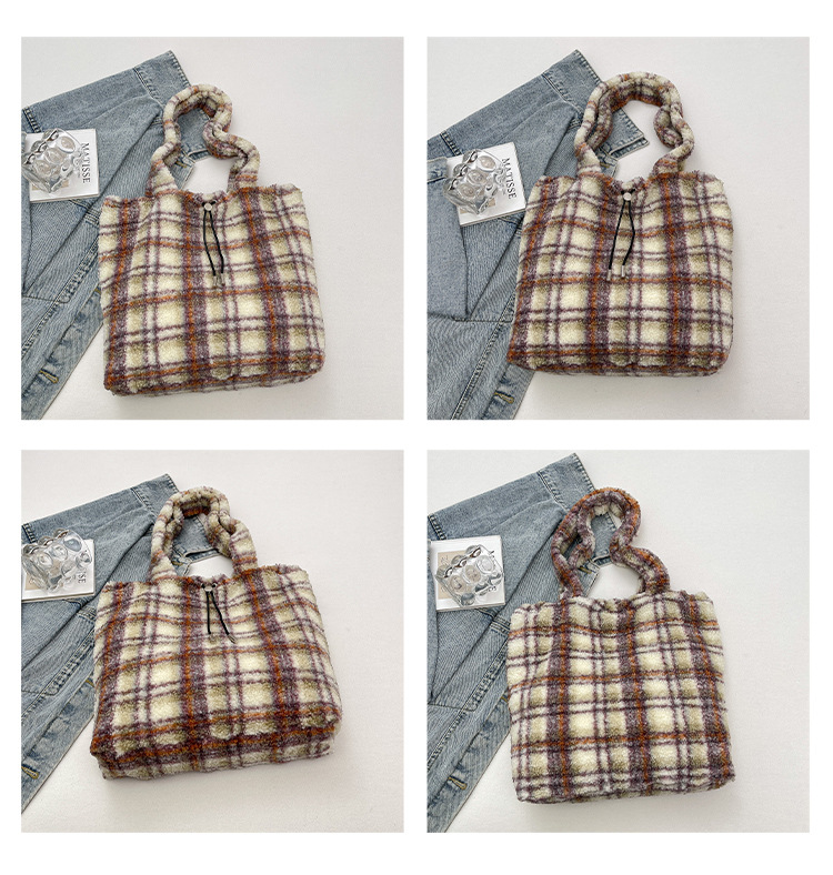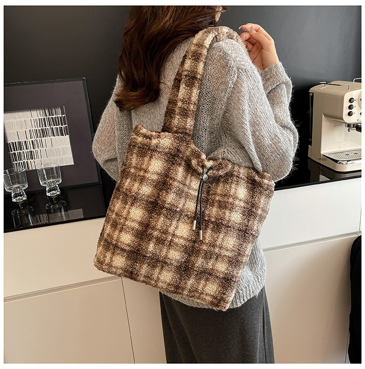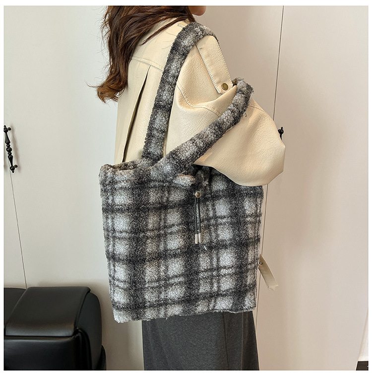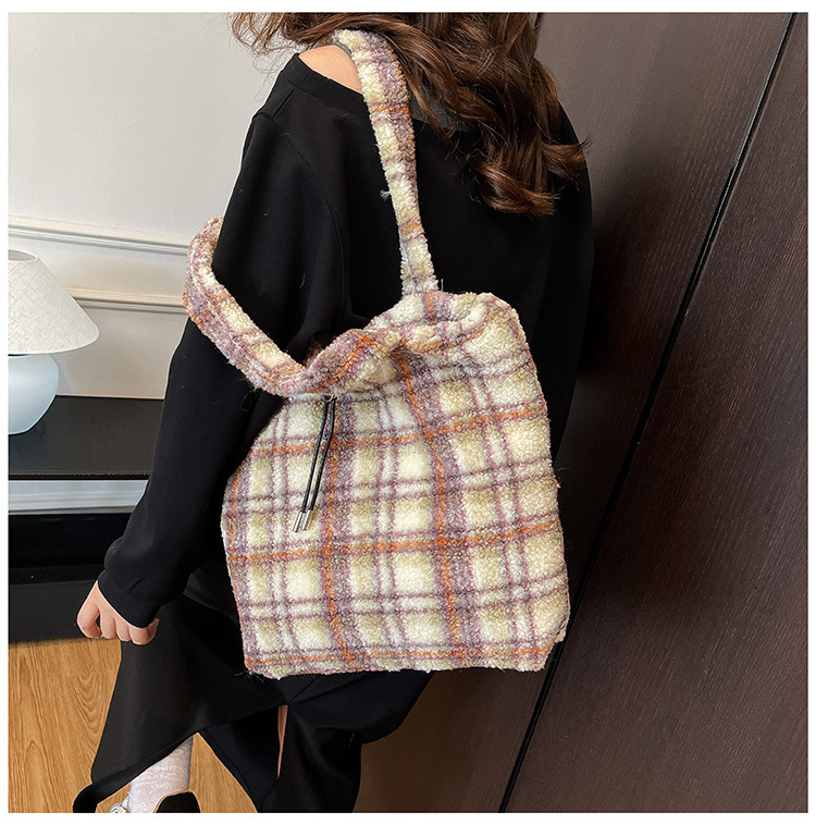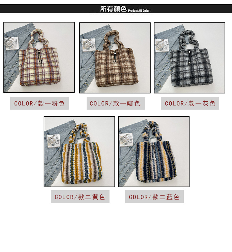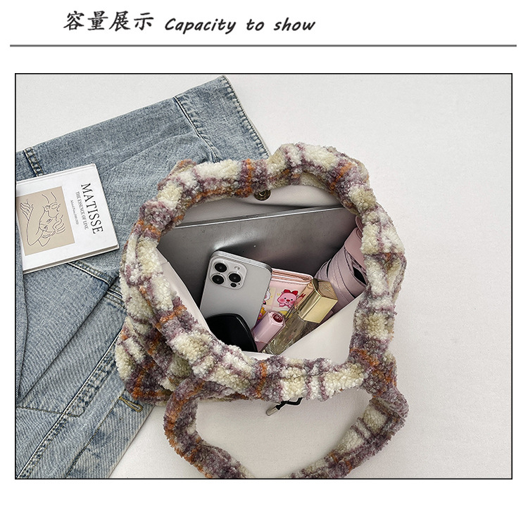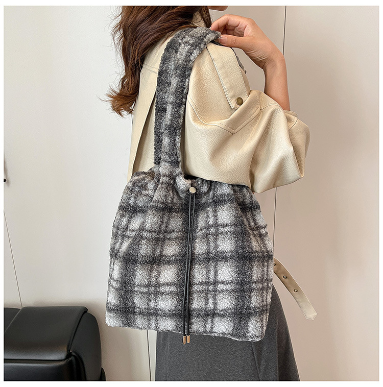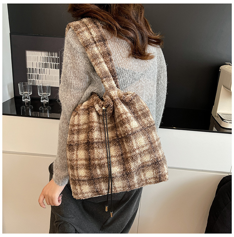 2025 otoño y invierno nuevo bolso de balde de peluche a rayas bolso de hombro de gran capacidad para mujeres bolso de brazo de transporte