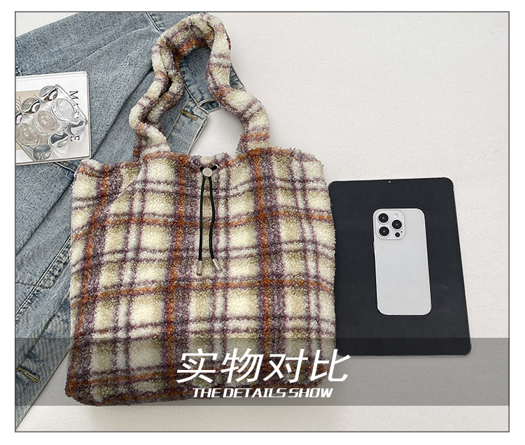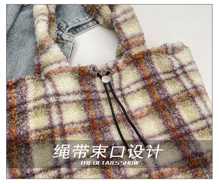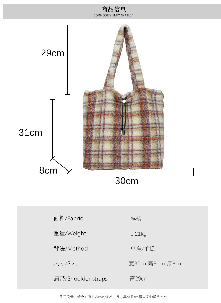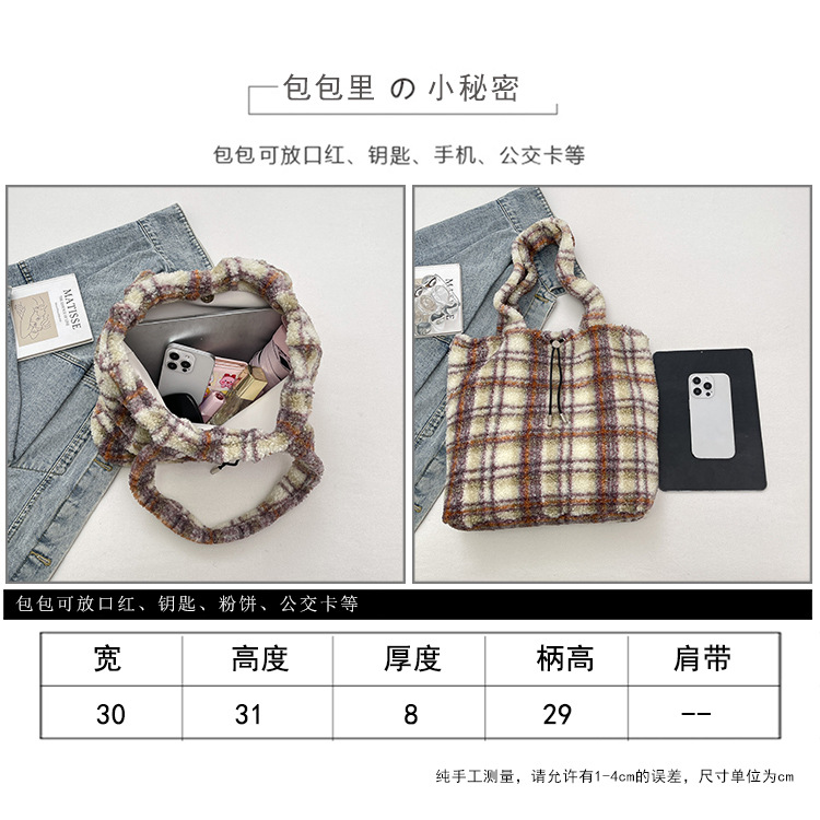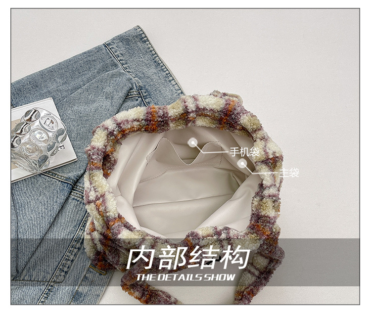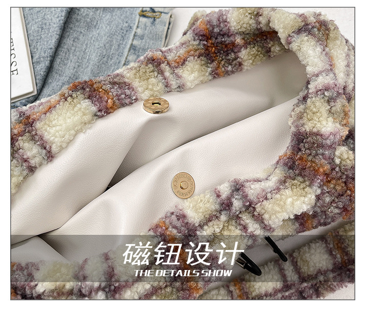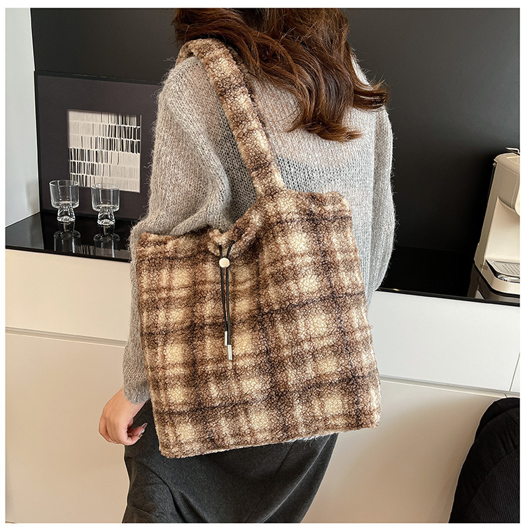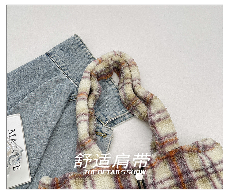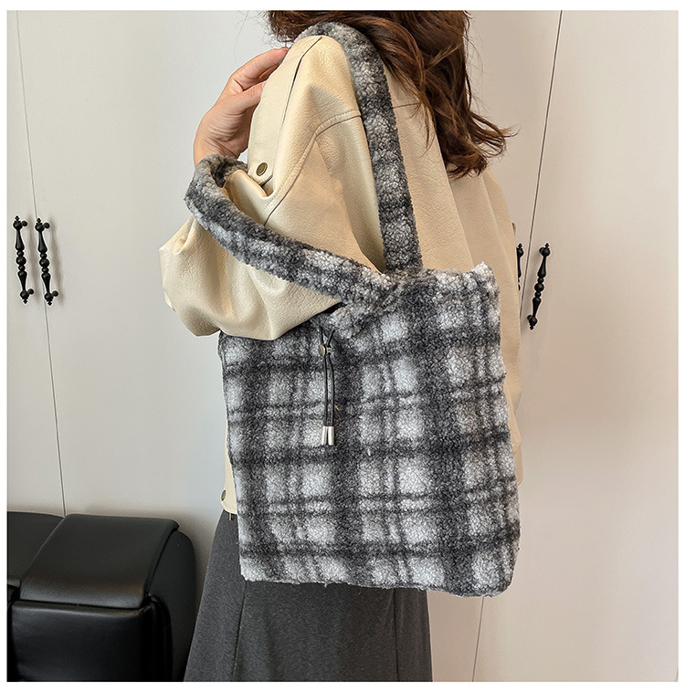 2025 otoño y invierno nuevo bolso de balde de peluche a rayas bolso de hombro de gran capacidad para mujeres bolso de brazo de transporte