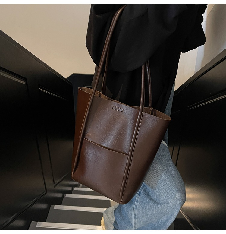 Bolsa de cubo de mano de moda casual para mujeres 2024 invierno nuevo estilo coreano retro alta sensación de moda bolso de hombro