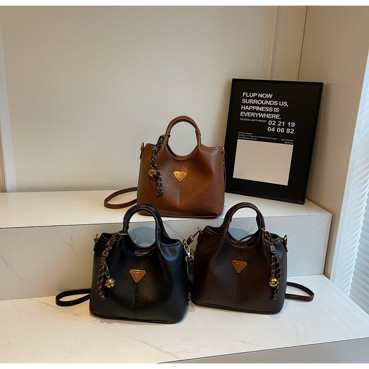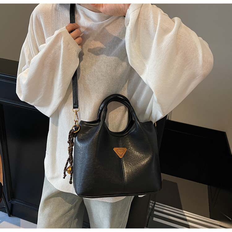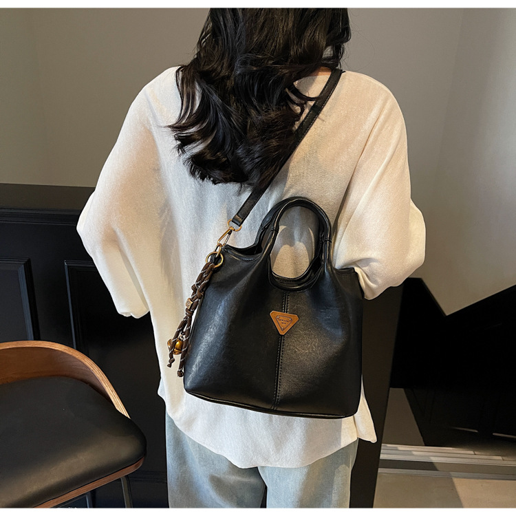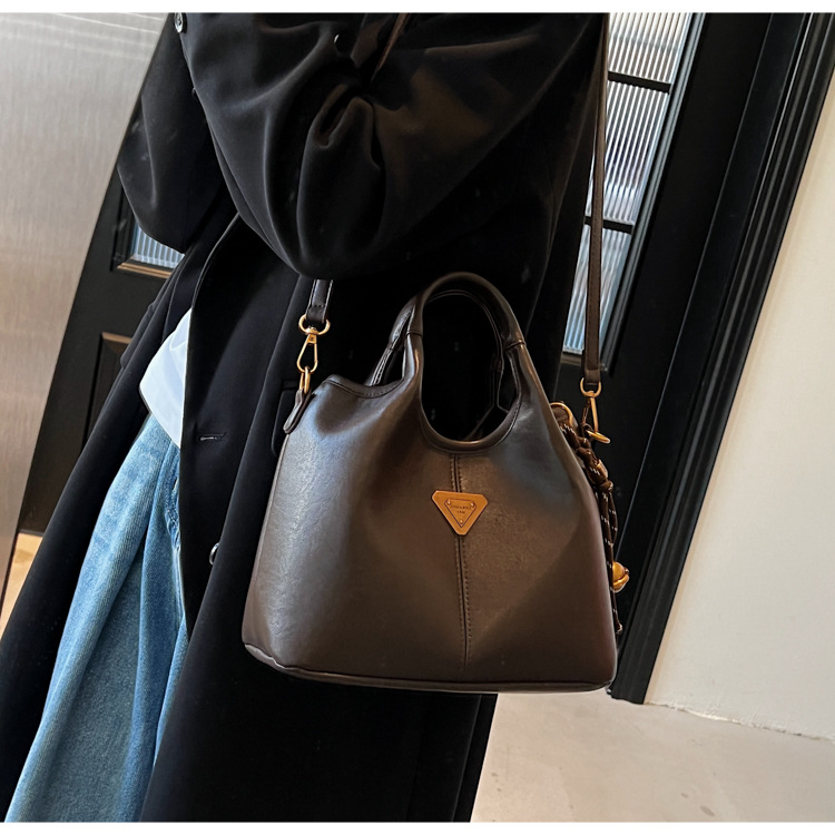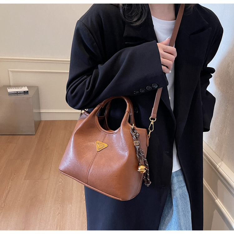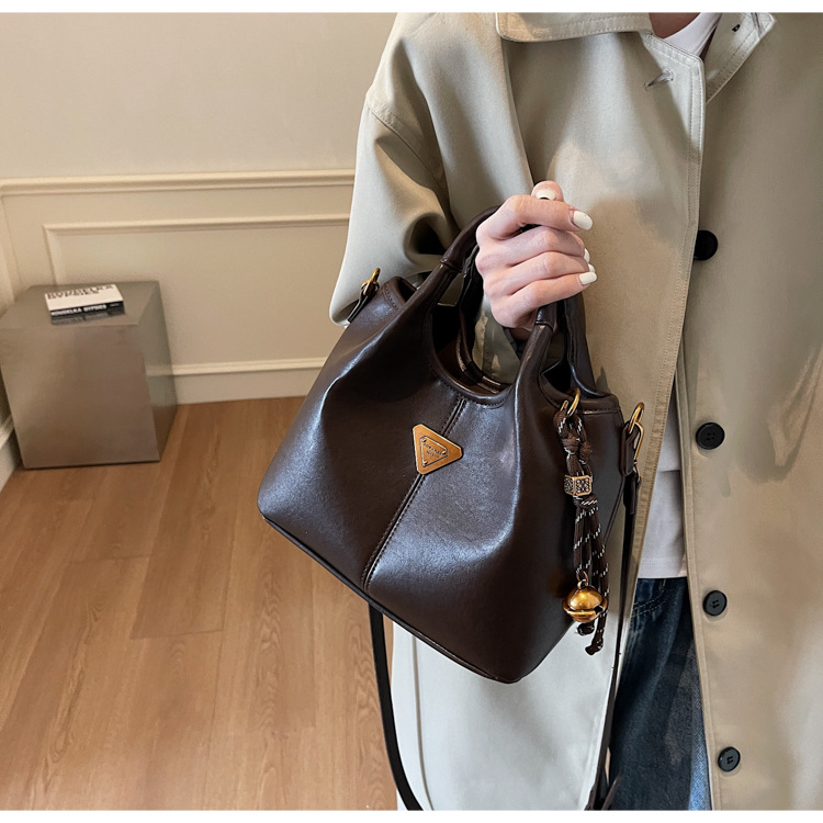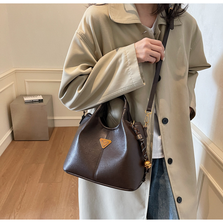 Bagos de transporte retro de estilo extranjero otoño y invierno 2025, nueva moda de un solo hombro, bolsas de cubo simples