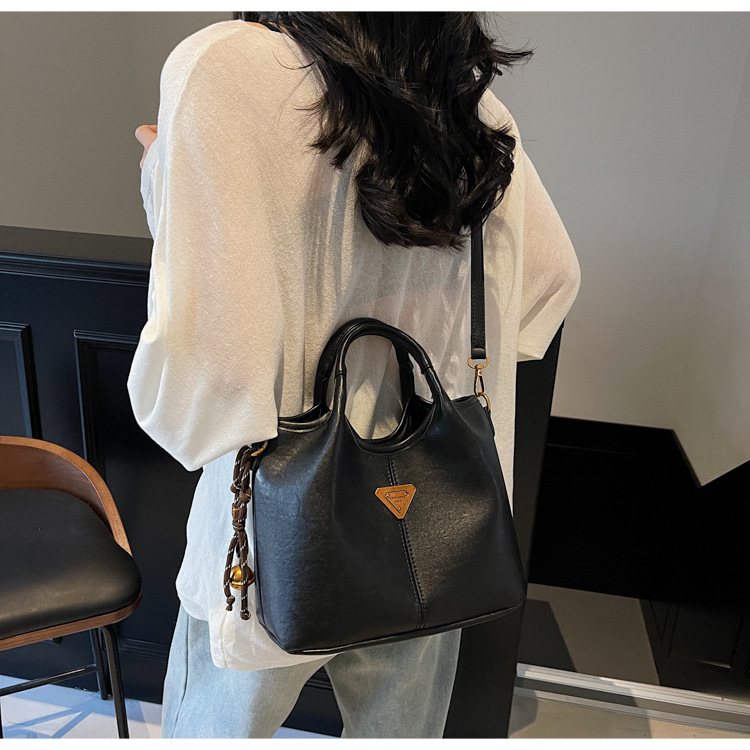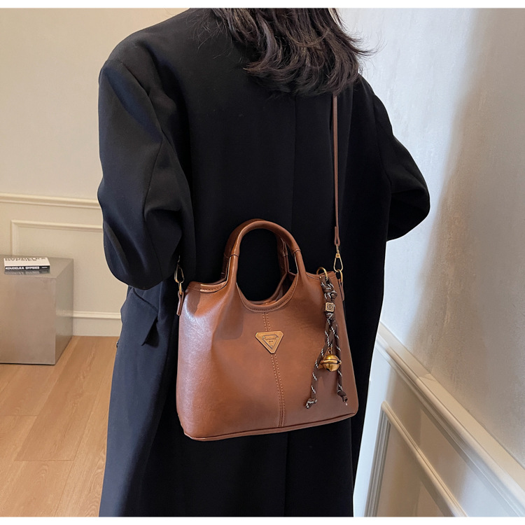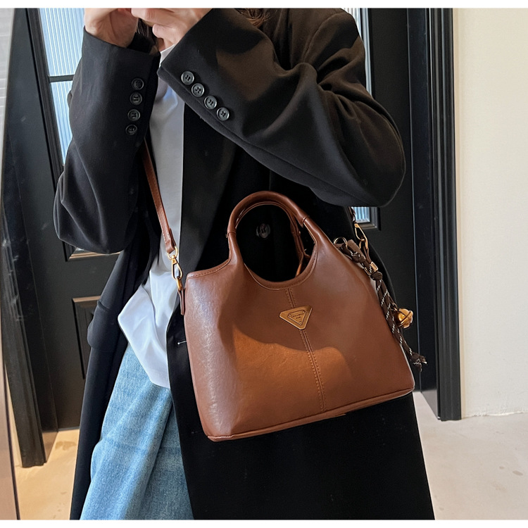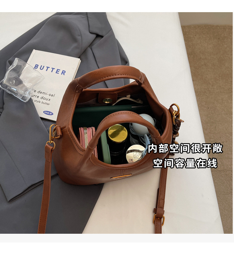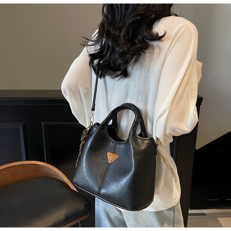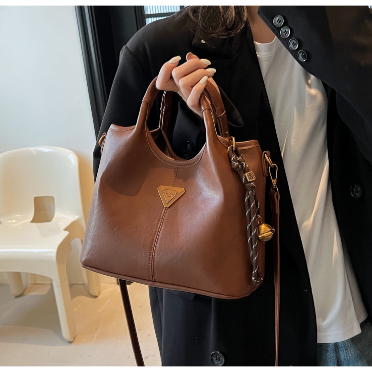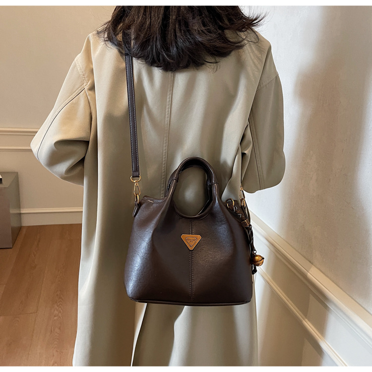 Bagos de transporte retro de estilo extranjero otoño y invierno 2025, nueva moda de un solo hombro, bolsas de cubo simples