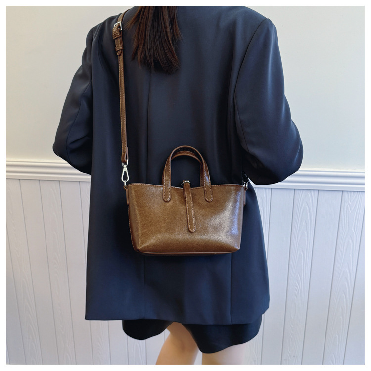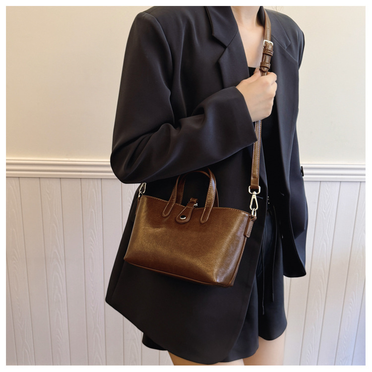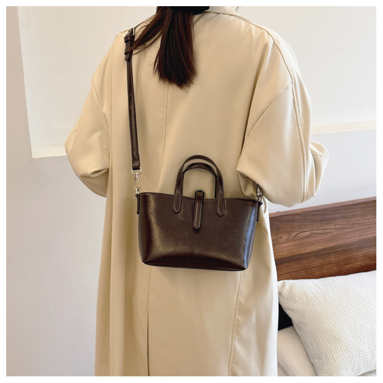 Bolsa de cubo retro transfronteriza para mujeres otoño y invierno 2025, nueva moda, bolso de hombro de moda, bolso de abrigo casual universal