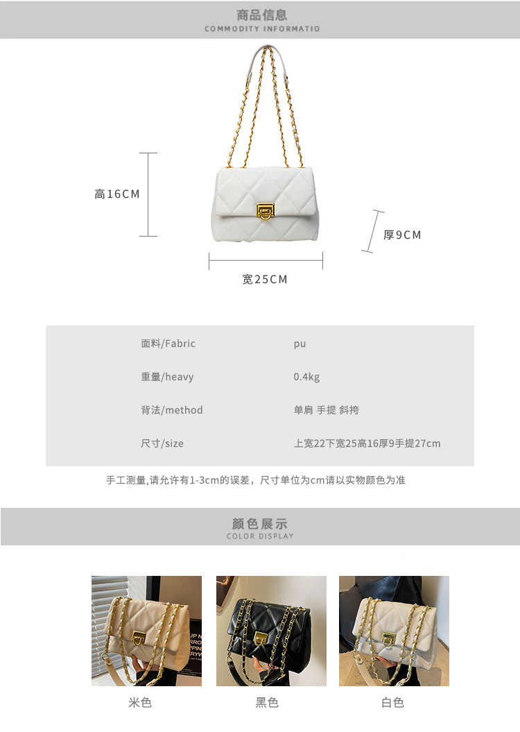 Bolso de cadena de diamond para mujeres 2024 nuevo estilo de moda universal simple bolso cuadrado de alta calidad sensación de tendencia bolso de hombro simple