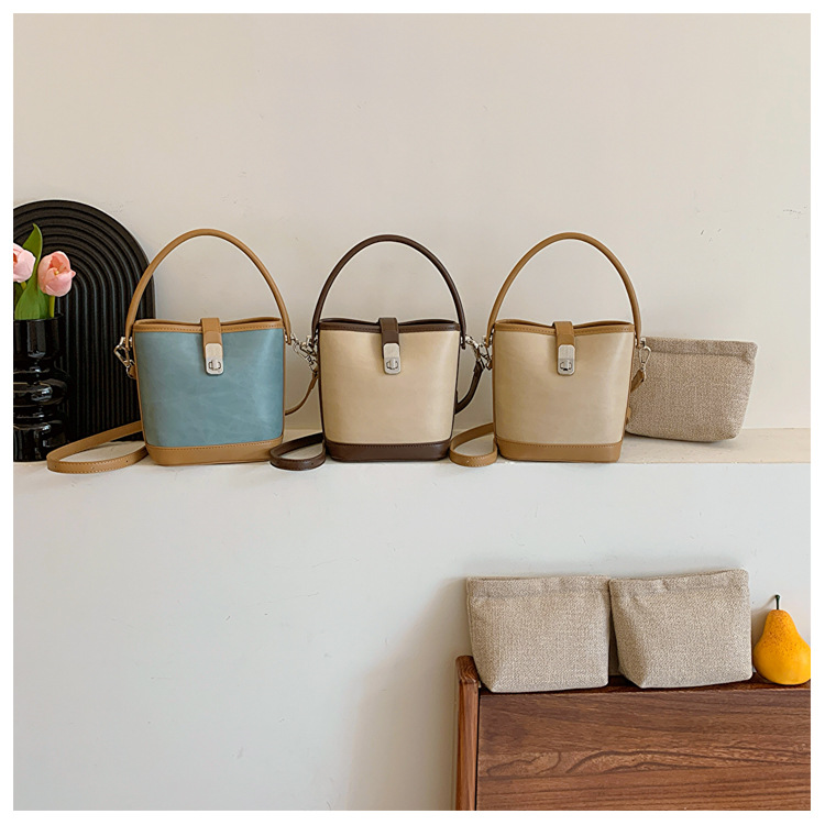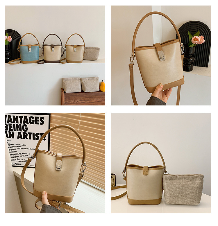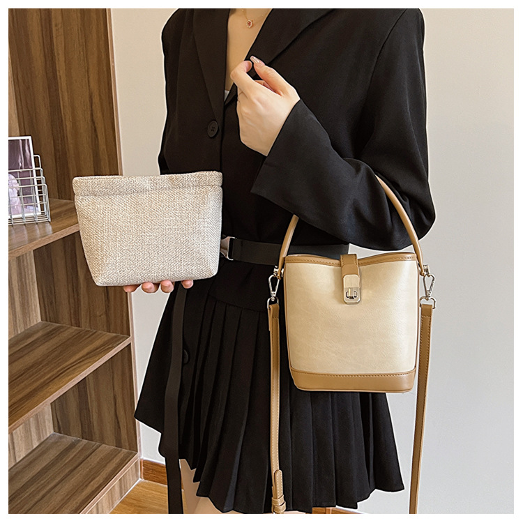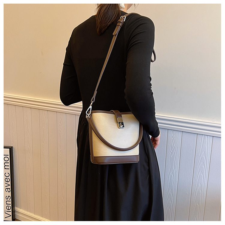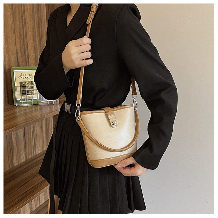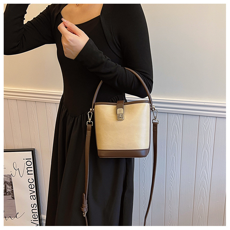 Transfronterizos otoño invierno hija bolsa retro versátil bolso de cubo portátil 2025 nuevo estilo de alta calidad sensación de hombro mochila moda