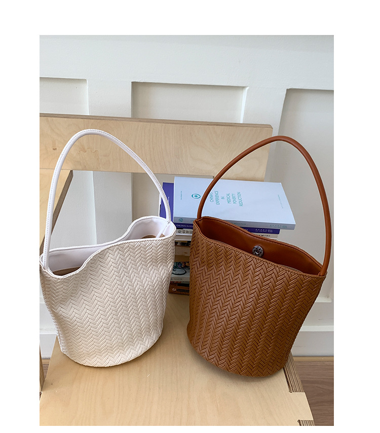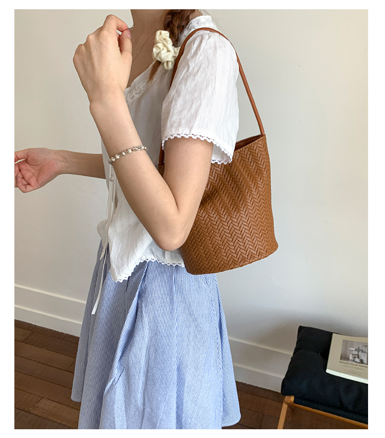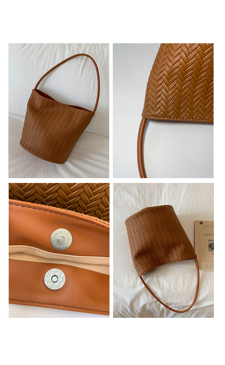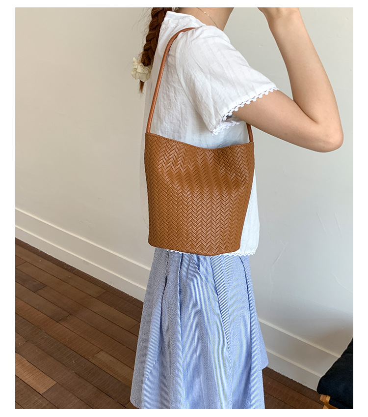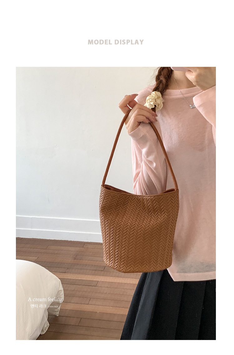 Bolsa de brazo trenzada retro para mujeres 2025, nueva moda bolso de cubo, bolso de hombro universal, bolso de alta capacidad